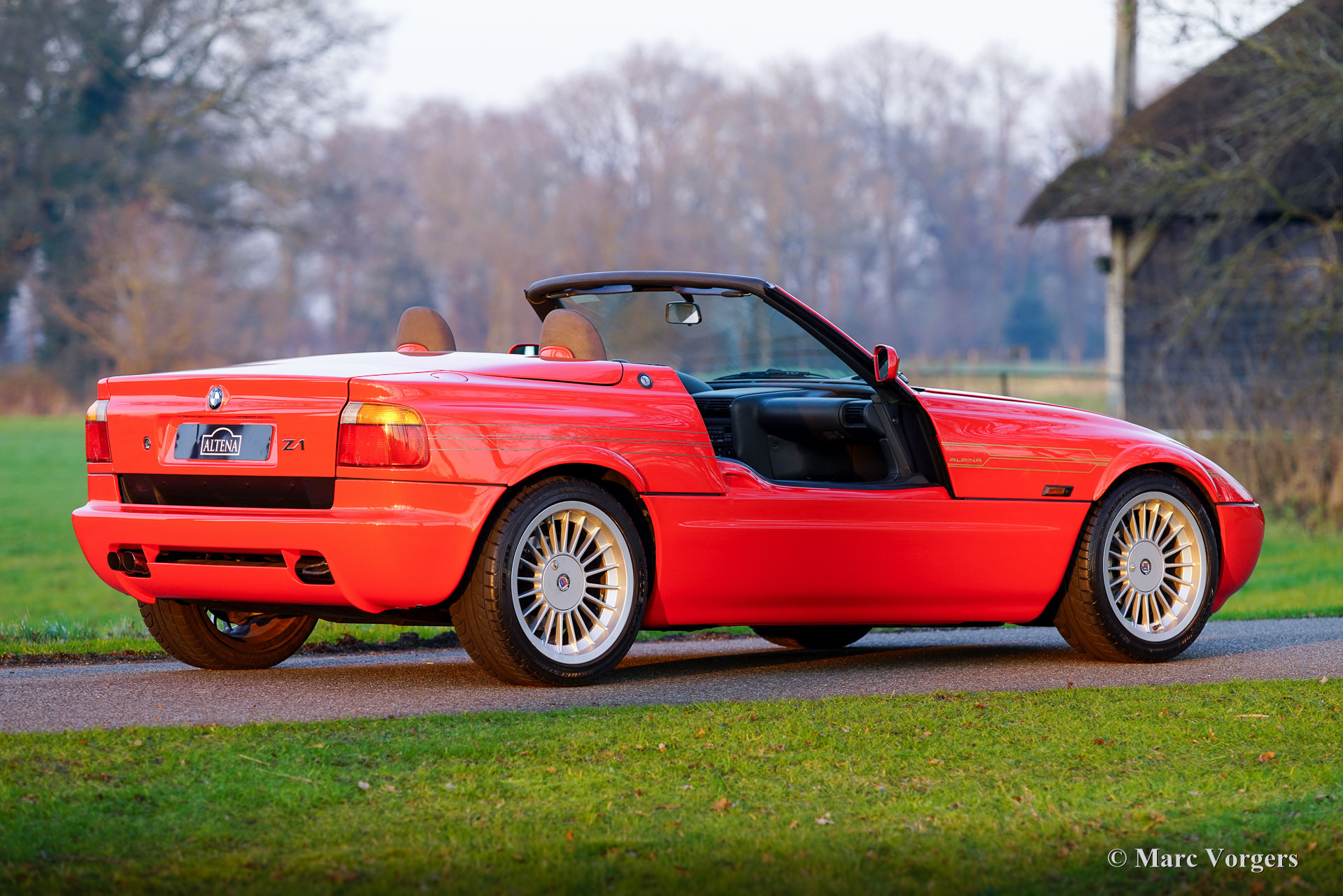 BMW Z1 Alpina Roadster Limited Edition, 1991. Colours: Exterior finished in red (BMW Toprot) combined with a dark grey interior and grey leather seats. Black mohair hood. This fabulous BMW Z1 Alpina Roadster is a special limited edition of which only 66 cars were built. The car shows all the original details. The limited-edition roadster features a powerful 2.7-liter inline-six engine, delivering impressive acceleration, agile handling, and a top speed of 231 km/h.
