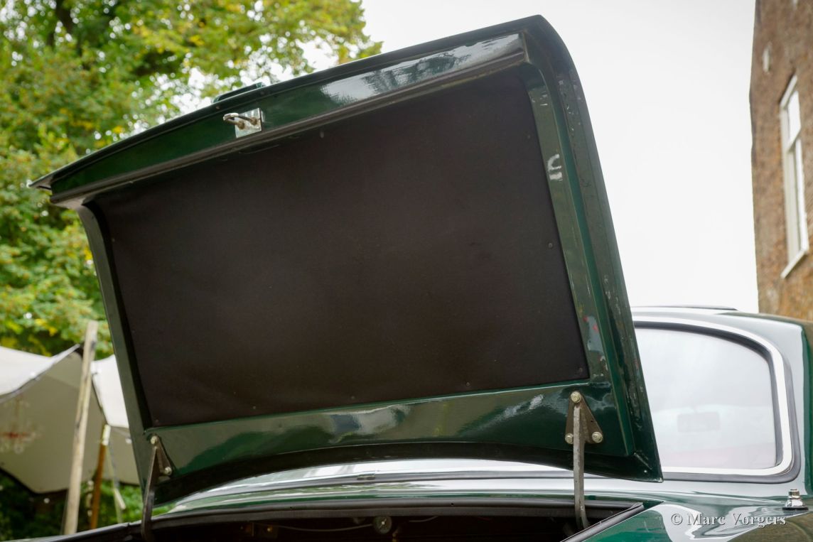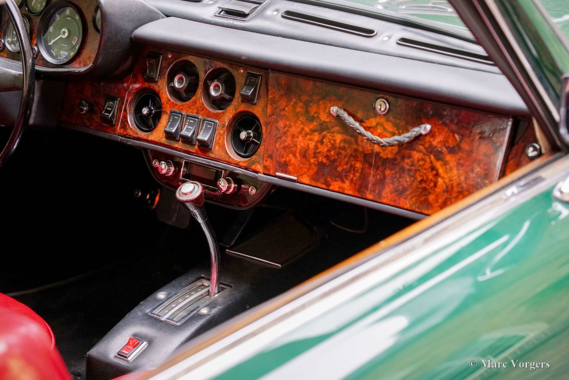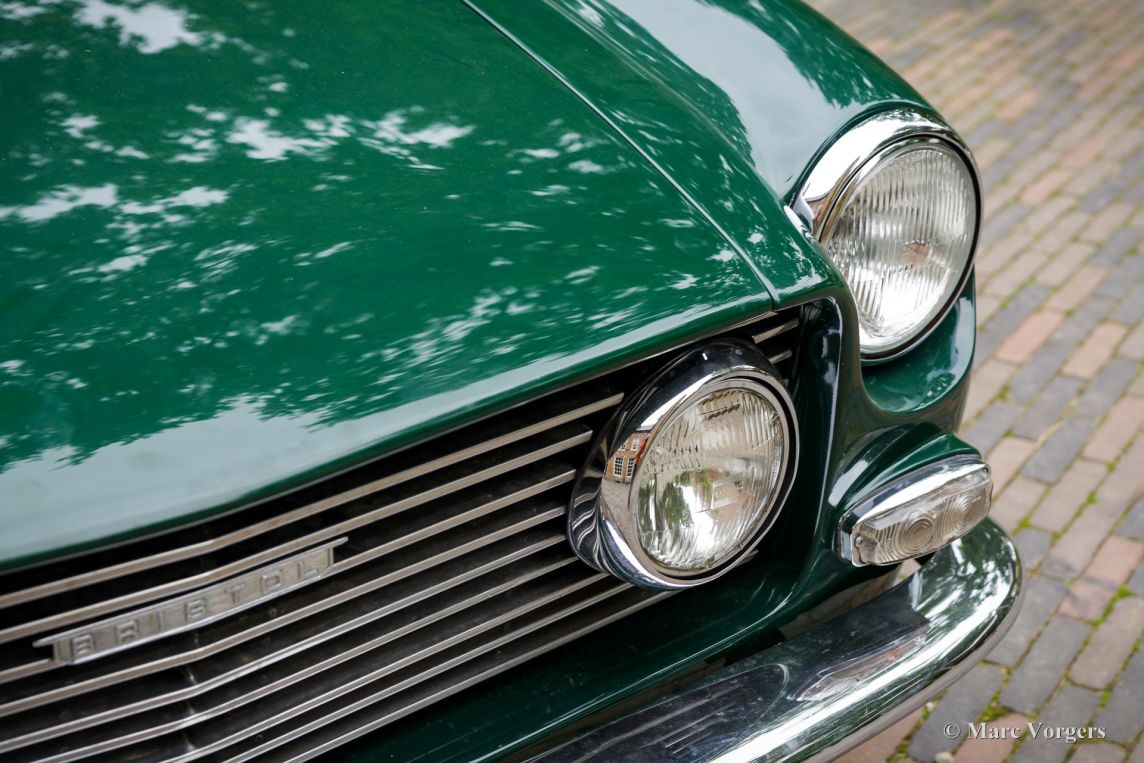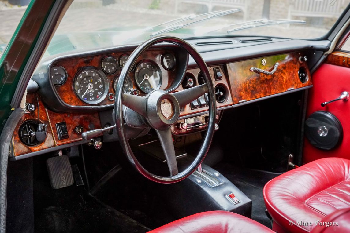 Body colour Dark British Racing Green combined with a red leather interior trimmed with red wool carpet. This super rare Bristol 411 was purchased by the current owner in the UK in 2022. Then the automobile was restored and overhauled where necessary, converted to LHD steering, and brought up to date by Bridge Classic Cars & Restorations in Woodbridge UK. The works were carried out in the period from March until October 2022. The conversion from RHD to LHD steering included removal of the engine, new wiring, new mounting brackets for the steering, a new steering rack, new power steering (PAS) pump, a complete LHD makeover of the dashboard, pedal box, bulkhead, carpets, etcetera. Parts of the chassis, battery compartment and floor were repaired/ restored and newly painted/coated. The engine was fully serviced, the brakes were overhauled, the cooling system and hoses renewed, and European headlamps fitted. The total amount invested was 30.000 pounds (€35.000). On 16 May 2023 this exclusive Bristol 411 was registered in the Netherlands. Being an aeroplane company Bristol started producing cars just after the second world war. The first model the 400 was presented in 1946. Bristol sold only to a very select clientele. In fact, exclusivity was always Bristol’s hallmark: they never produced cars in large numbers, preferring craftsmanship and individuality over volume. The Bristol 411 was produced between 1969 and 1976, and only 287 examples were built across its five series. That extremely limited production run is part of what makes the 411 so desirable today. The car was hand-built in a limited production, luxurious, and fitted with big Chrysler V8 power. This example features the Chrysler B-series 6.3-litre V8 with a power output of 340 hp and a maximum torquer of 576 Nm! The power is transmitted to the rear wheels via a Chrysler Torqueflite 3-speed automatic gearbox giving an acceleration from 0-60 in only 7 seconds and a top speed of 230 km/h! This limited production classic super car is in a very good condition and the car drives very well. This Bristol 411 can be enjoyed on marque/classic car club days and outings, weekend trips, and as a unique piece of British Motoring Heritage in a car collection. This vehicle is available to view and test drive by prior appointment only.