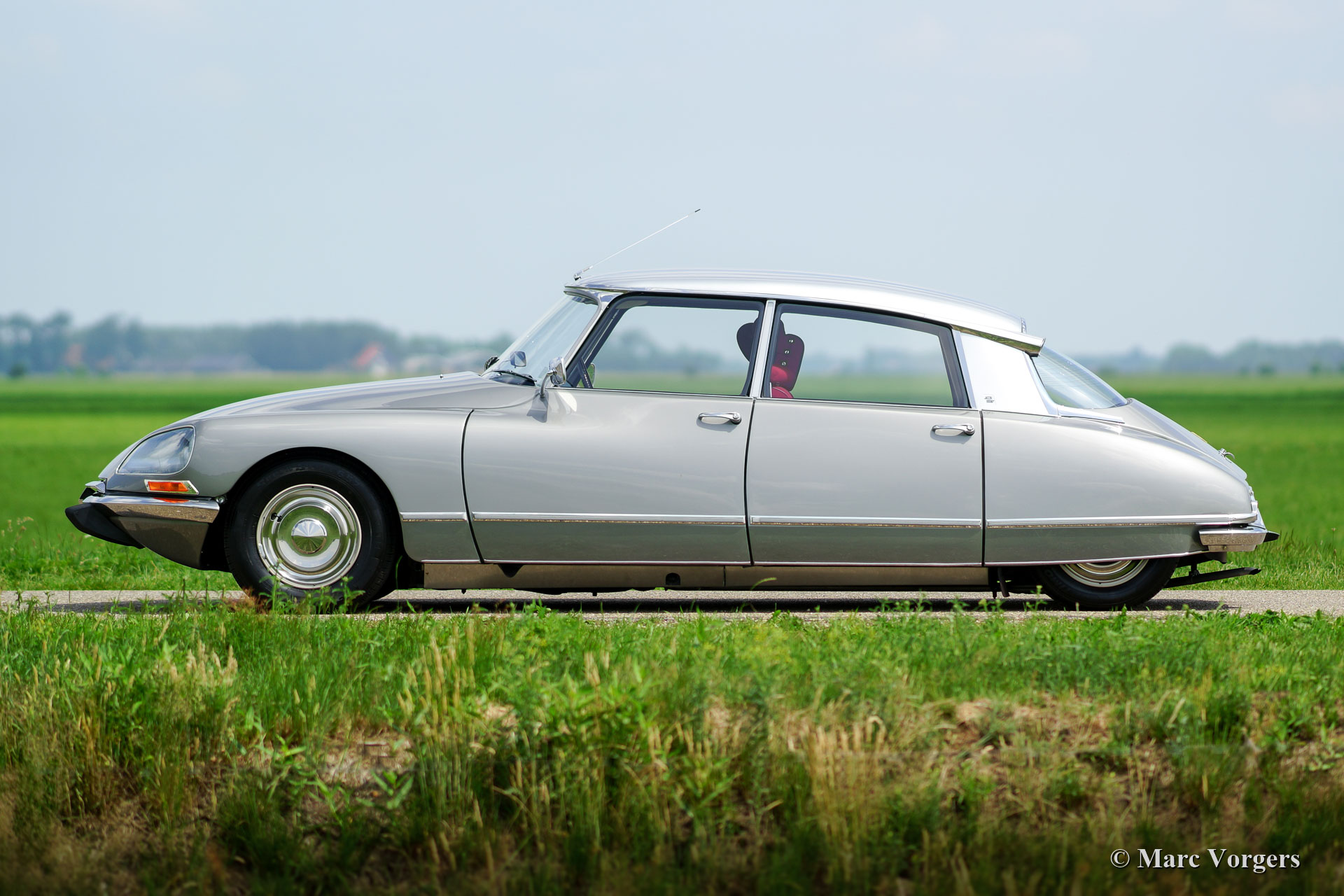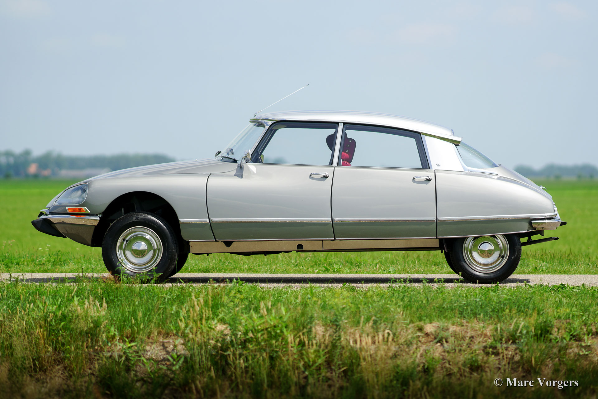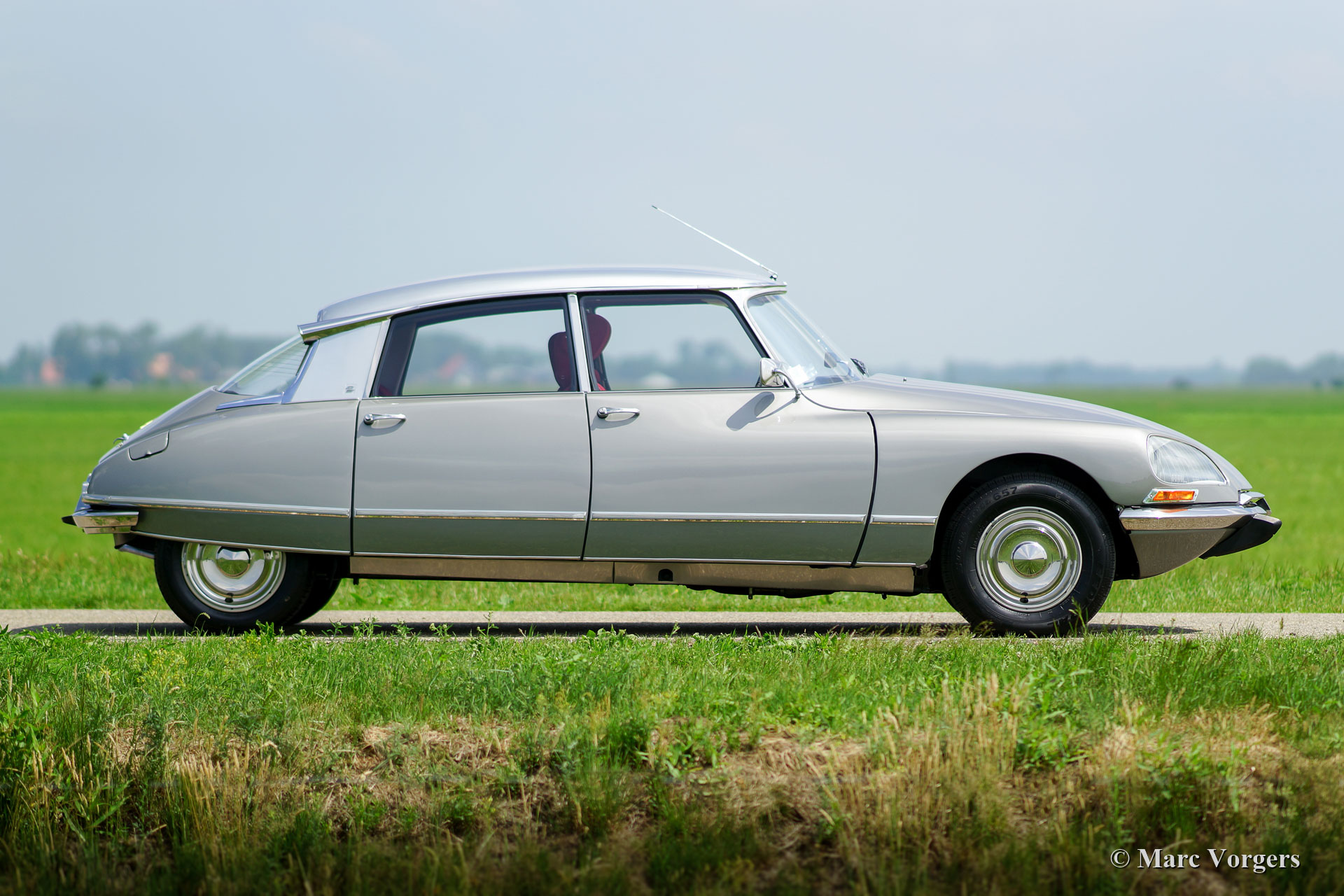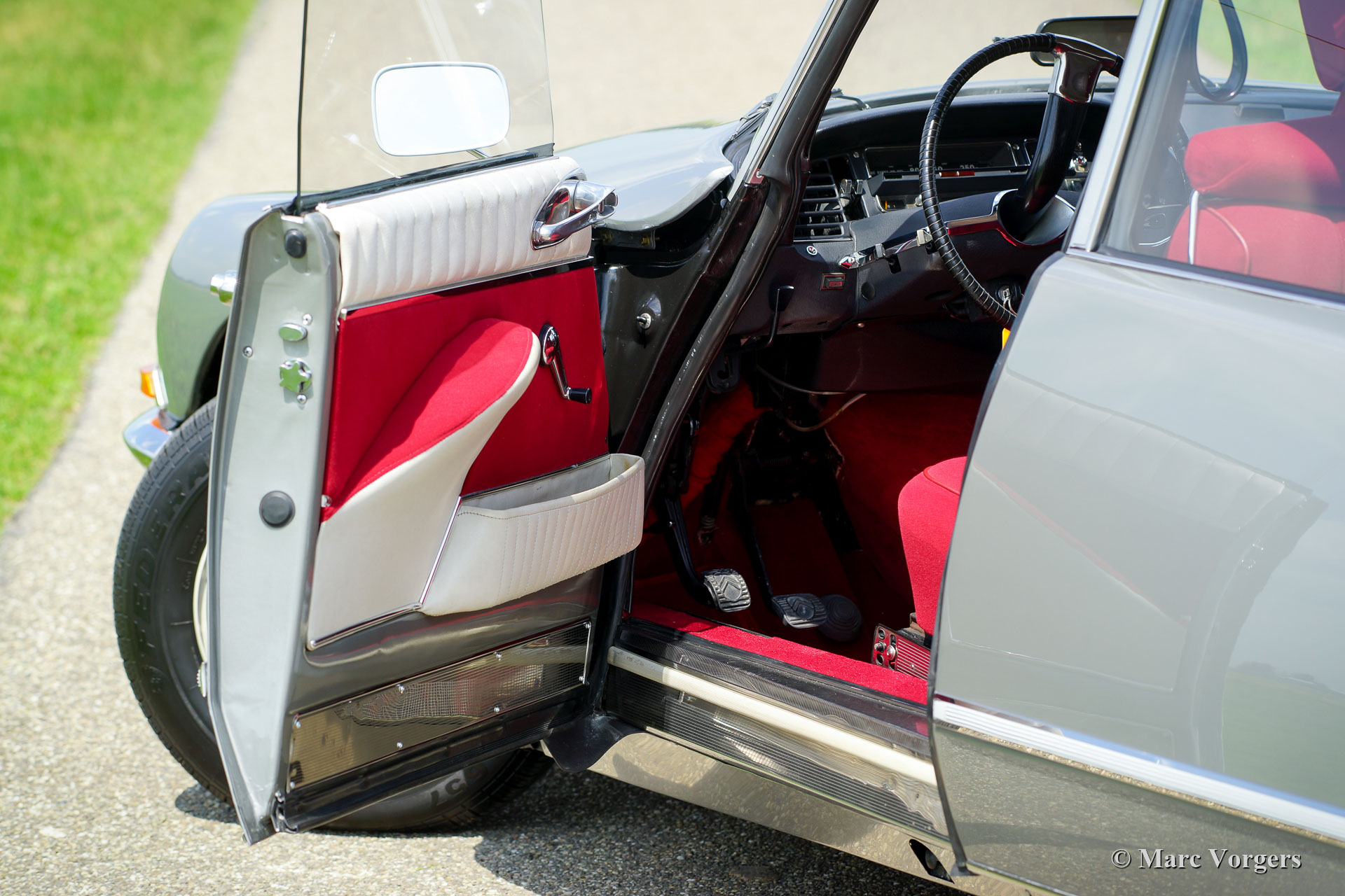 Citroën DS 21 M Pallas, year 1969. Colour ‘Gris Palladium’ with a silver metallic roof top. Red cloth interior with white door-caps and trim. This fabulous Citroën DS 21 Pallas is one of the most sought-after DS-models, the car features the new ‘shark’ front combnined with the old style interior and dashboard. This DS 21 Pallas is a ‘M-Mechanique’ model fitted with a five speed manually operated gearbox. This magnificent Citroën DS 21 M Pallas is in superb TOP condition, concours! The automobile was fully restored by a French DS specialist, the restoration was carried out with an eye for perfection, all the original details are present. A comprehensive restoration file is available. The bodywork shows a perfect panel fit, glass like paintwork, superb chrome trim and the interior is in pristine condition! Also, the underside of the car is beautifully detailed. The car features a period radio. This Citroën DS 21 Pallas is a rare find in top condition and the car drives perfectly; literally like a ‘flying carpet’! The car is currently registered in France. All documents are present for worldwide export. This is your chance to purchase a perfect 1969 Citroën DS 21 M Pallas!