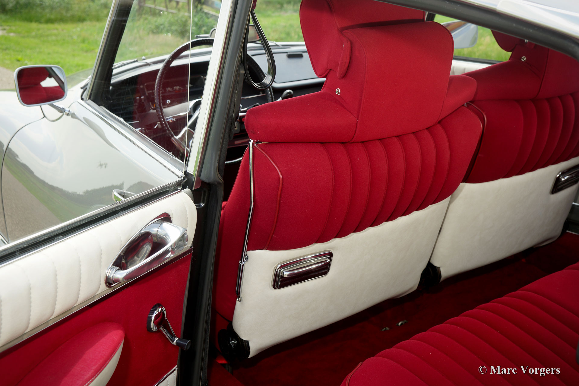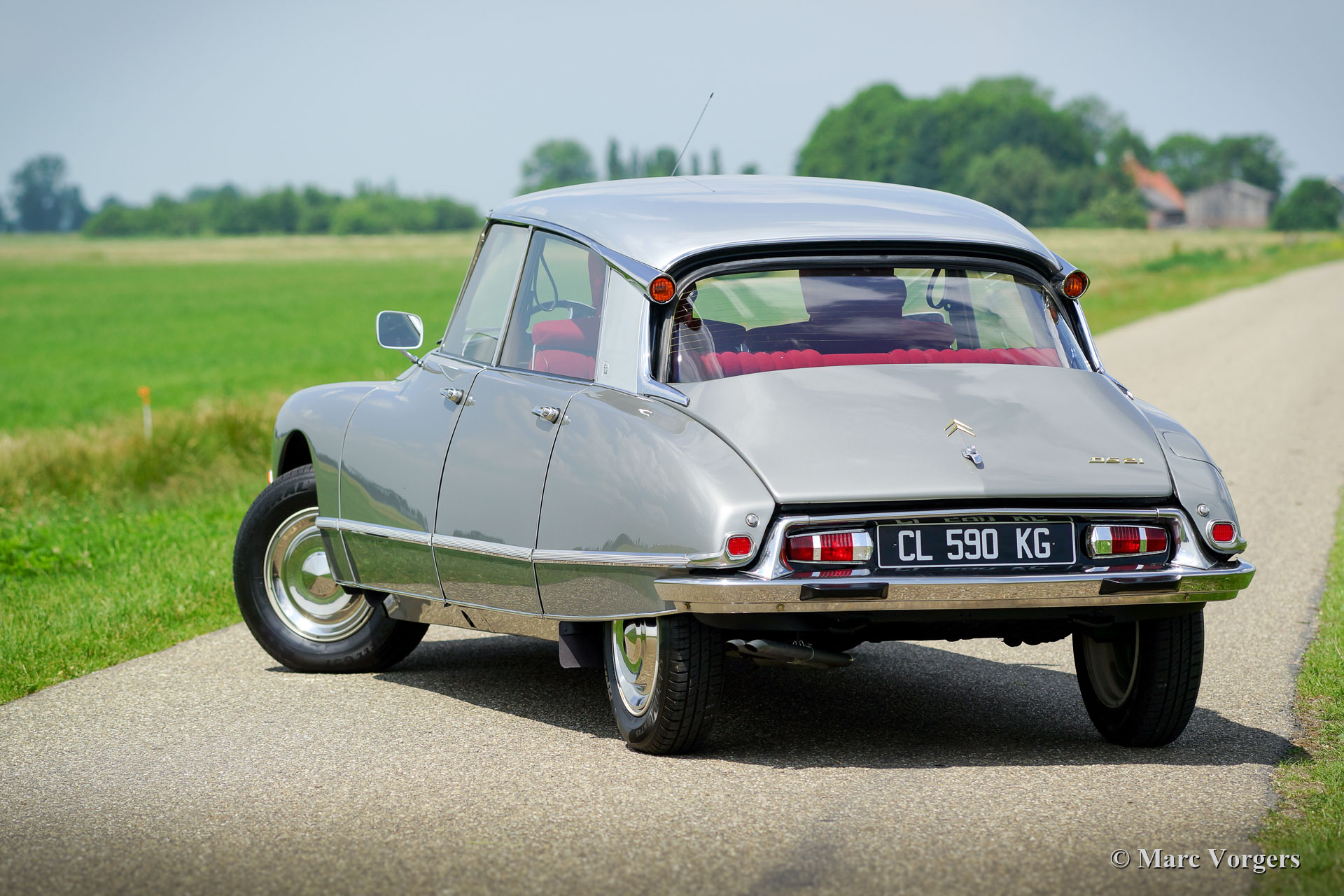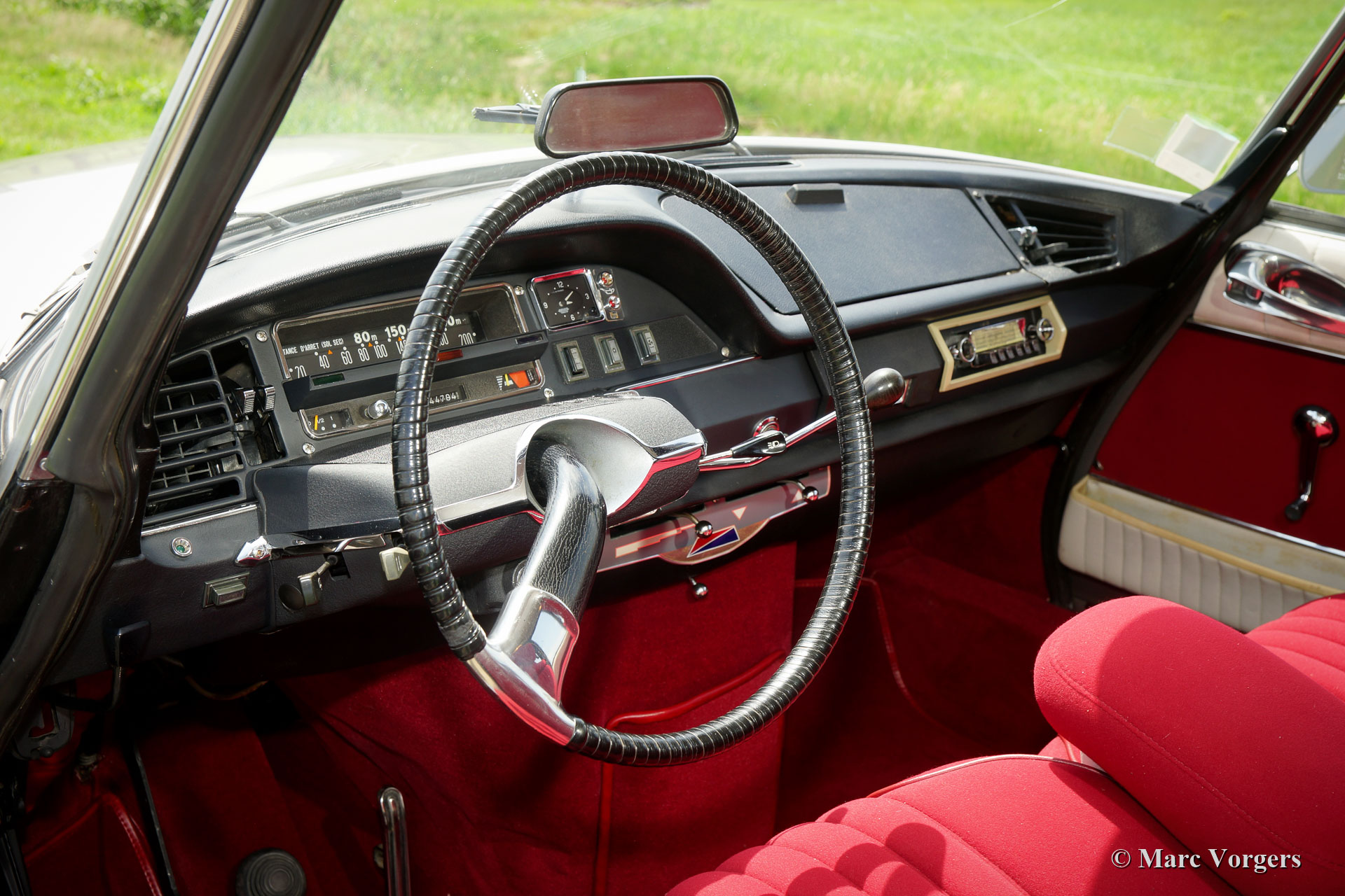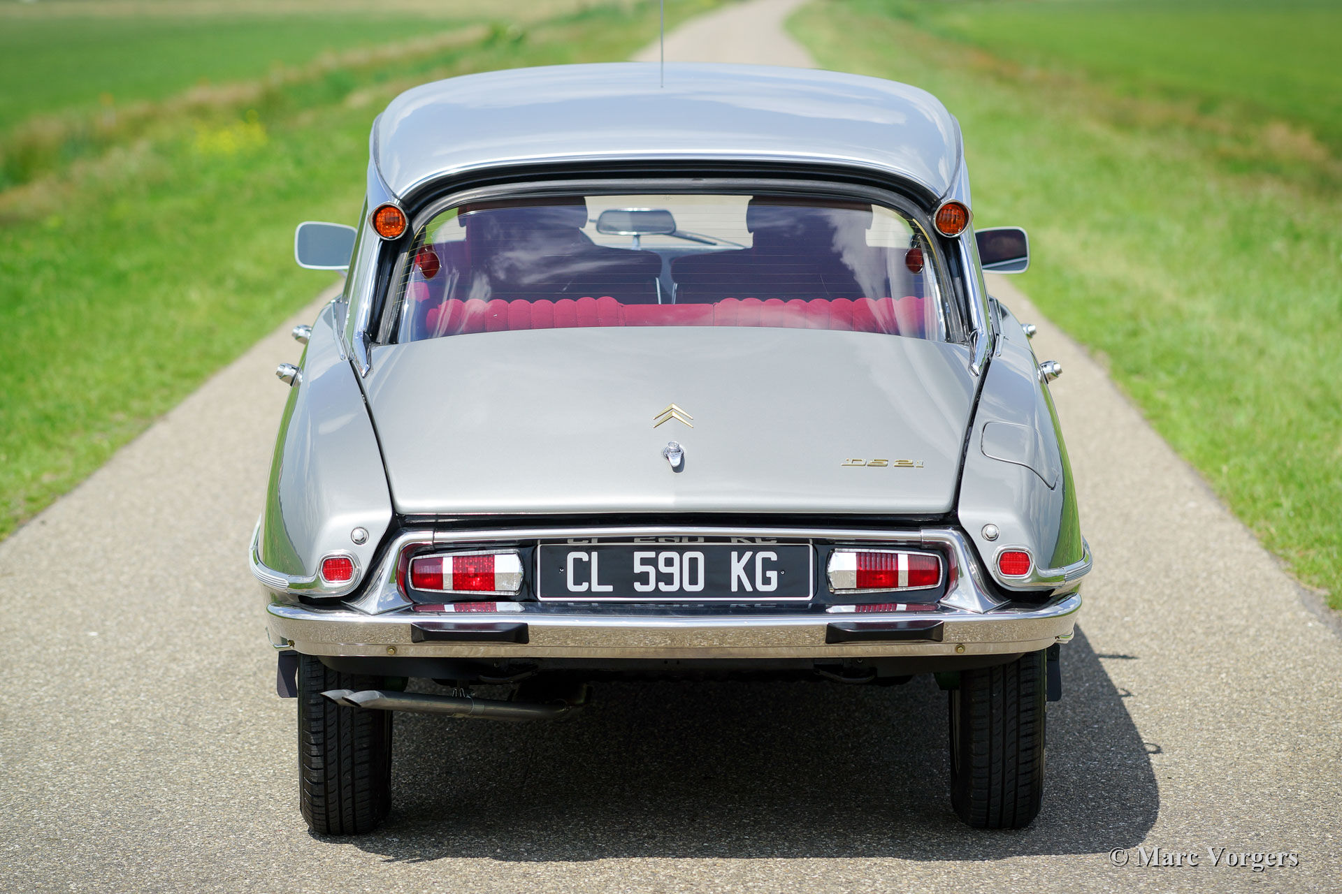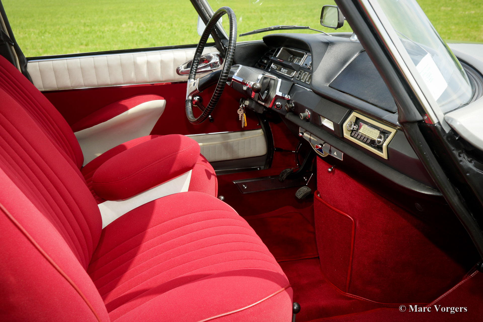 Citroën DS 21 M Pallas, year 1969. Colour ‘Gris Palladium’ with a silver metallic roof top. Red cloth interior with white door-caps and trim. This fabulous Citroën DS 21 Pallas is one of the most sought-after DS-models, the car features the new ‘shark’ front combnined with the old style interior and dashboard. This DS 21 Pallas is a ‘M-Mechanique’ model fitted with a five speed manually operated gearbox. This magnificent Citroën DS 21 M Pallas is in superb TOP condition, concours! The automobile was fully restored by a French DS specialist, the restoration was carried out with an eye for perfection, all the original details are present. A comprehensive restoration file is available. The bodywork shows a perfect panel fit, glass like paintwork, superb chrome trim and the interior is in pristine condition! Also, the underside of the car is beautifully detailed. The car features a period radio. This Citroën DS 21 Pallas is a rare find in top condition and the car drives perfectly; literally like a ‘flying carpet’! The car is currently registered in France. All documents are present for worldwide export. This is your chance to purchase a perfect 1969 Citroën DS 21 M Pallas!