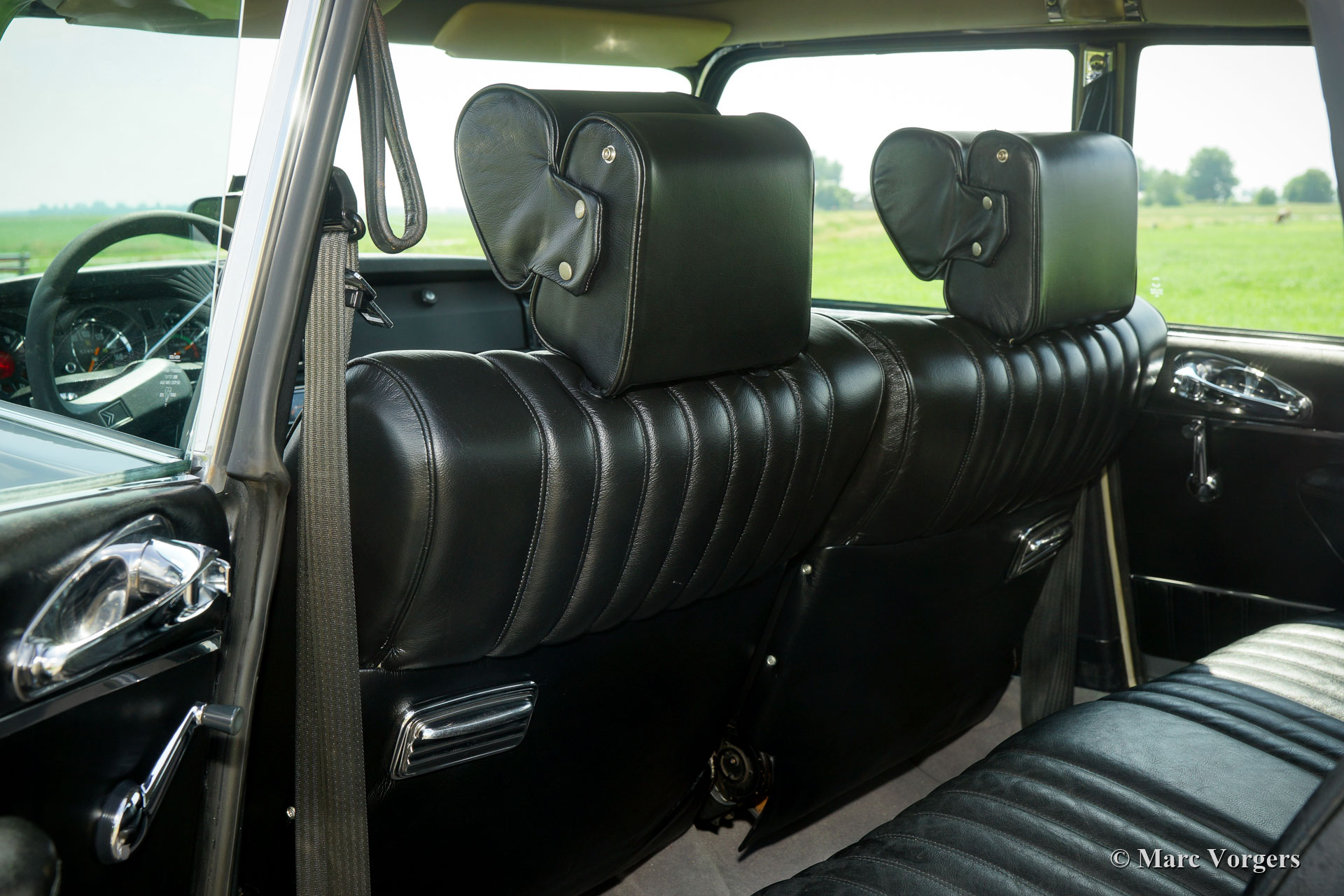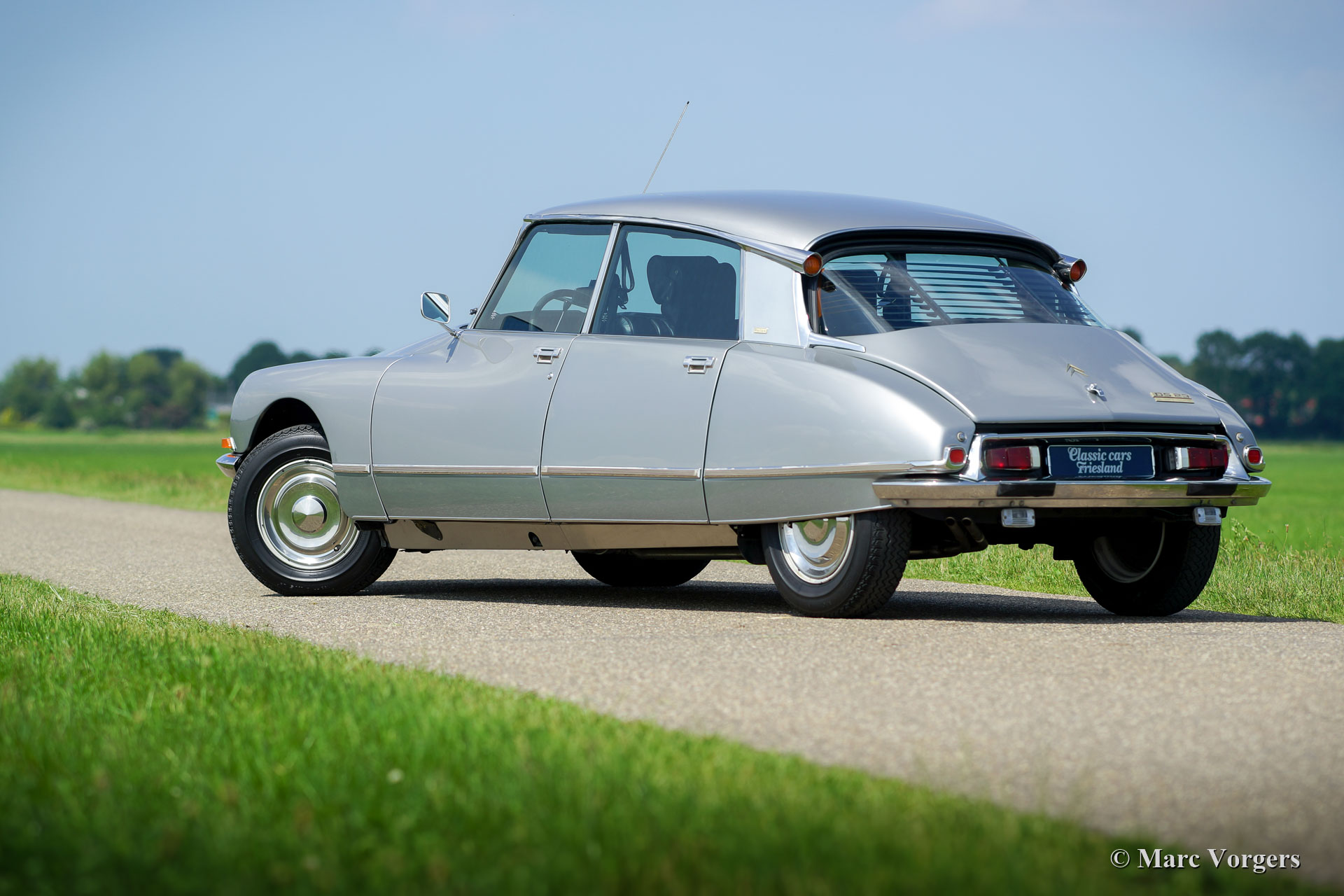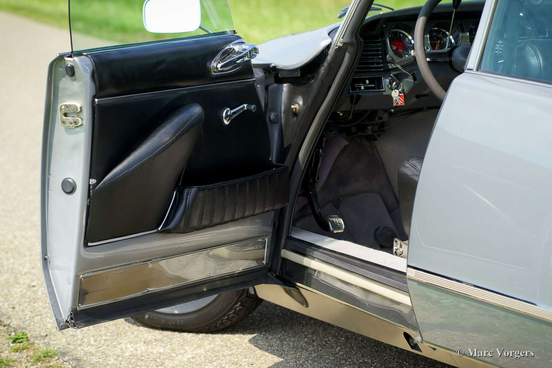 Citroën DS 23 H Pallas ‘Injection Electronique’, year 1973. Kleur Gris Noir (AC 095) combined with a black leather interior. This magnificent Citroën DS 23 H Pallas ‘injection Electronique’ is the top model in the Citroën DS model-line; a DS Pallas featuring the most powerful engine with fuel-injection. This final model features the impressive ‘shark-nose’ with swivelling long-range lamps, the more modern dashboard and the new style door handles. The ‘H’ designation stands for ‘Hydraulique’; the suspension, brakes AND the gearbox are hydraulically operated. The ‘H’ gearbox is a semi-automatic 4-speed unit, you can select gears without having to operate a clutch. The automobile was extensively restored in recent years and in the year 2016 the engine was overhauled. This fine DS 23 Pallas is in sa superb top condition! The car is fitted with all the Pallas luxury goodies like head-rests, arm-rests, special carpeting, super comfortable leather seats, green tinted glass and an aftermarket Gradulux sun shade inside the rear windscreen. The car drives perfectly and ultra-comfortable. The 140 bhp engine can propel the DS 23 Pallas to a top-speed of 188 km/h. This is a hard-to-find DS 23 H Pallas ‘Injection Electronique’ in superb top condition!