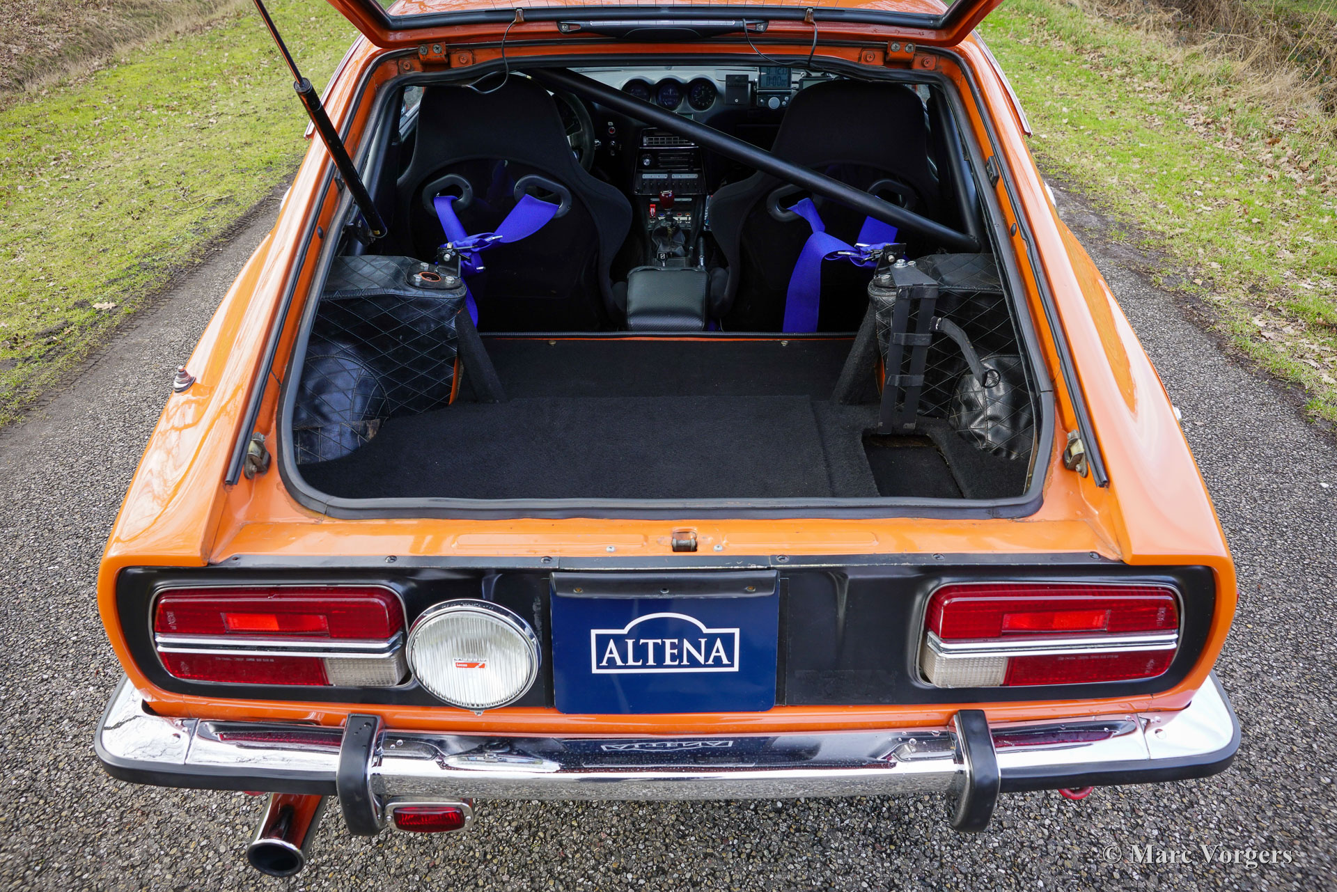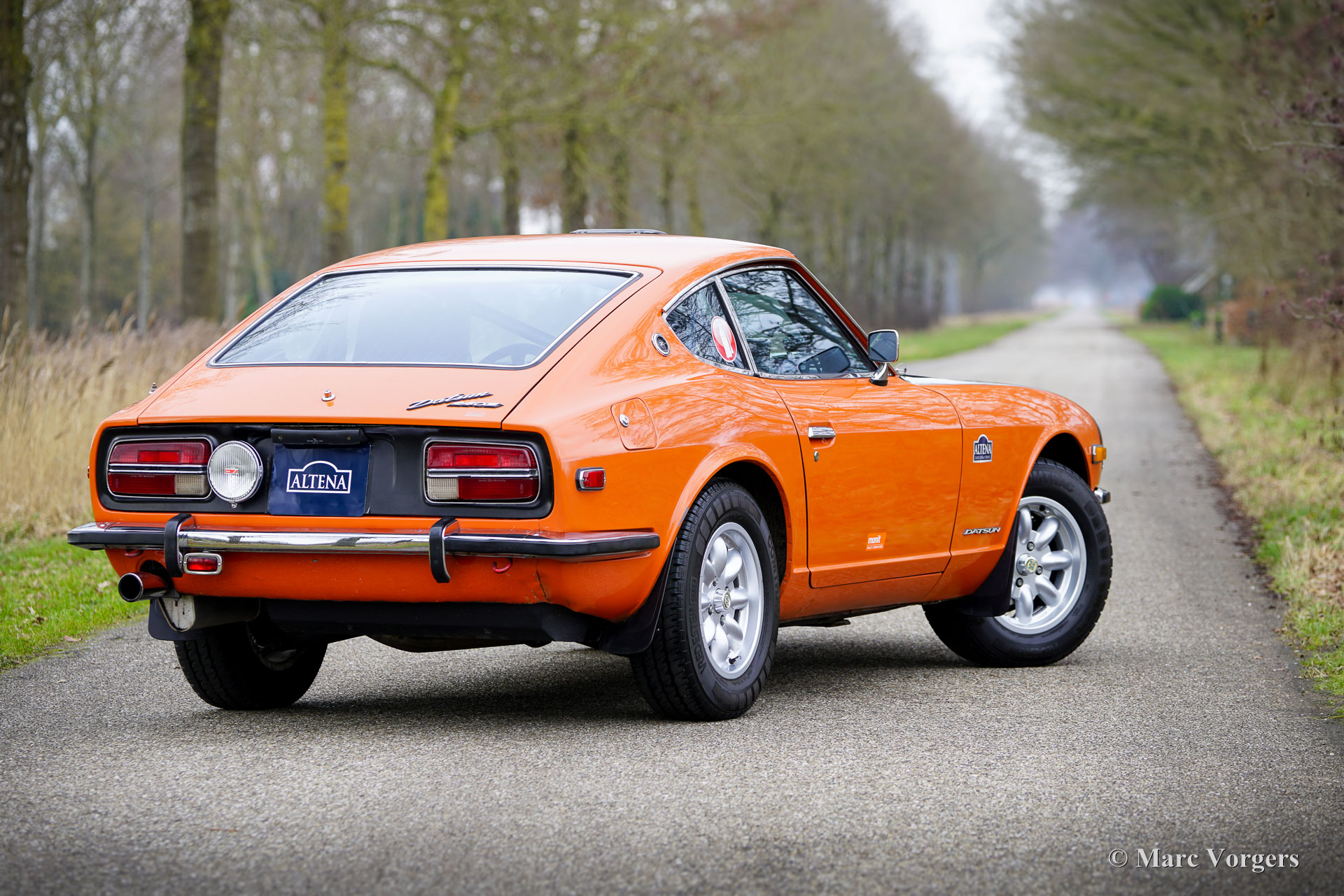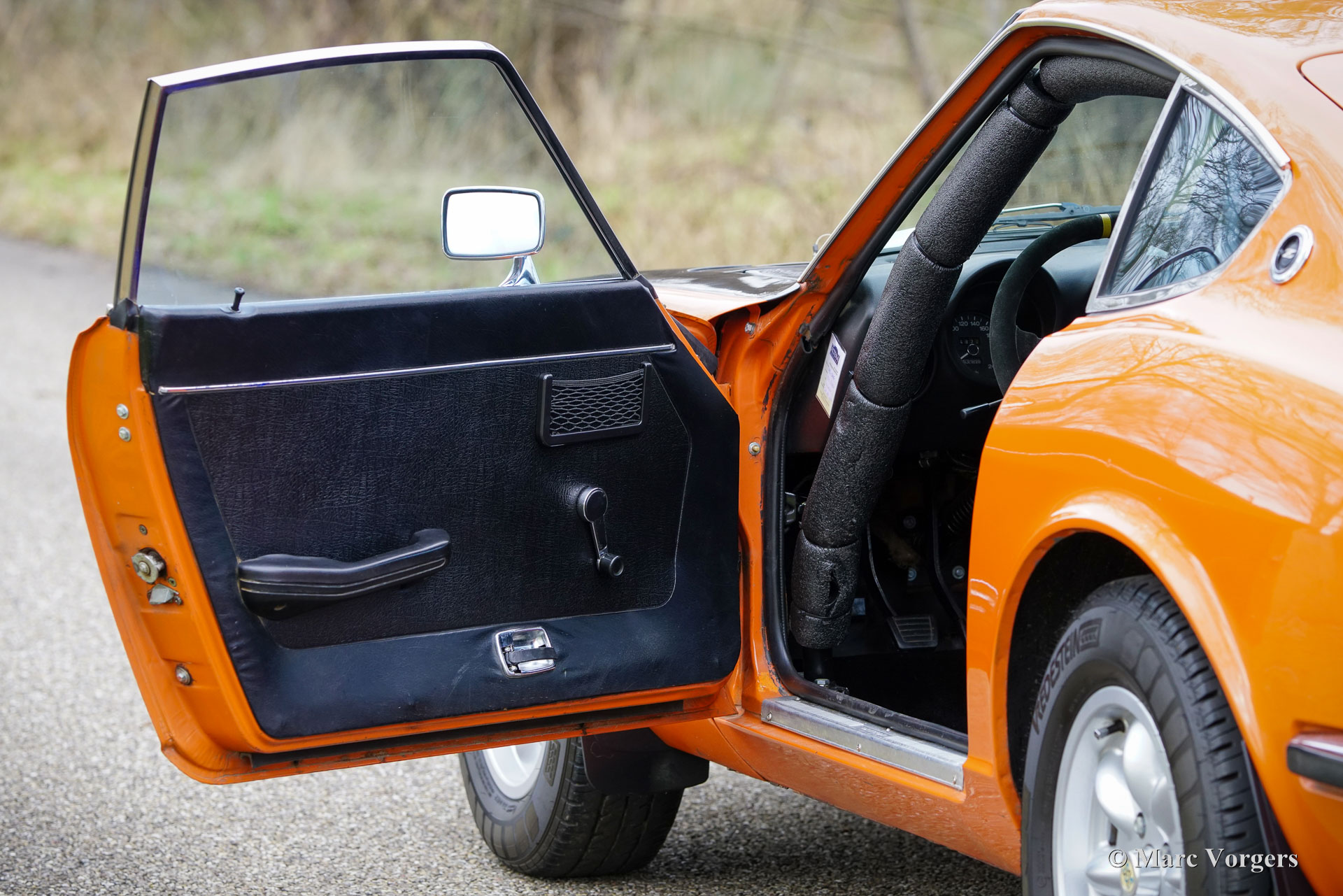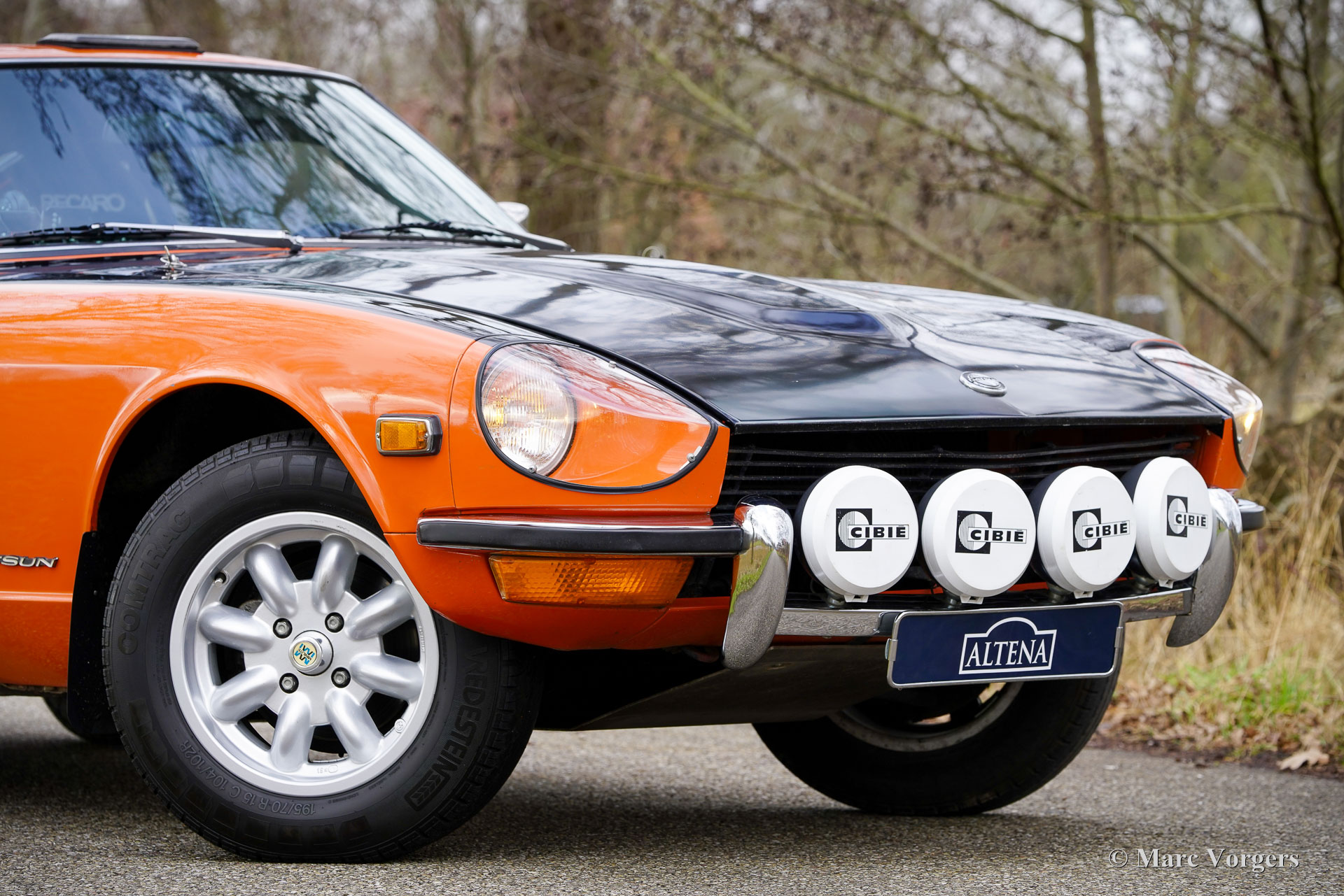 Datsun 240Z, year 1971. Chassis number HLS30-2108X, engine number L28 01335X. Exterior finished in orange with a black bonnet combined with a black faux-leather interior. This fantastic Datsun 240Z was sold new in the USA. The car was imported into the Netherlands in 2008. In 2009 the owner commissioned Altena Classic Service for the extensive restoration, overhaul and rally preparation of the 240Z. Everything was overhauled and/or renewed. The car was perfected in detail for rally driving with a raised suspension, a special wiring harness, Koni shock absorbers and springs all around, a 5-speed gearbox, a large aluminium fuel tank, a professional roll bar, Recaro seats, 4-point Sparco safety harnesses, additional spotlights and cornering lights at the front and other special rally accessories. A photo report and invoices of the restoration and rally preparation are present. Now, sixteen years after the car was completed, the Datsun 240Z is still in a very good condition! The car has been meticulously professionally serviced and maintained and the car drives and sounds perfect! The driving experience is exhilarating, and it must be a true pleasure to participate in historic rally events with this Datsun 240Z! This is a perfect rally car, which nowadays is very expensive to build to this condition and specifications. A highly sought-after car among historic rally drivers. The car comes complete with a FIVA ID card and can be exported to any country worldwide. This beautiful Datsun 240Z is ready for any adventure in the hands of a new owner!