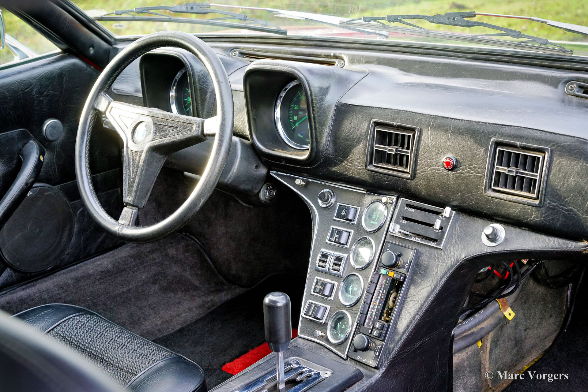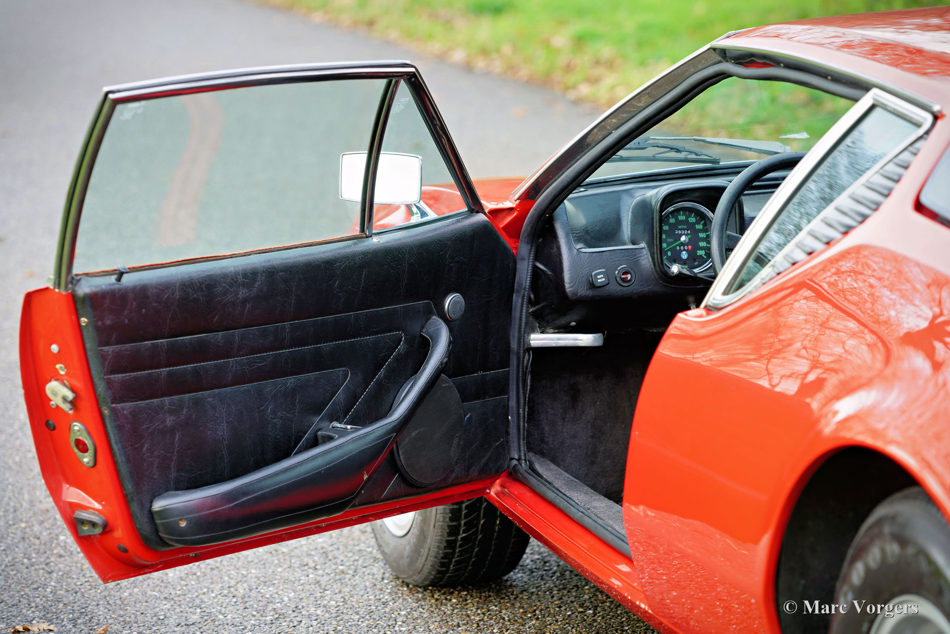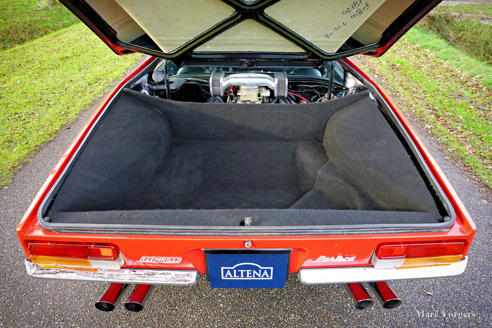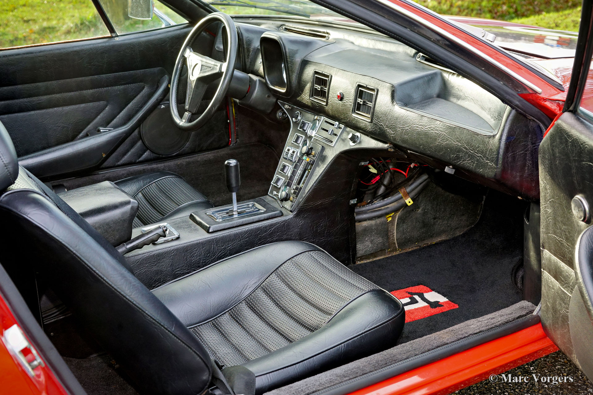 De Tomaso Pantera, year (March) 1972. Colour red combined with a black leatherette interior and black carpet. This De Tomaso Pantera is currently equipped with a carbon engine hood and front bonnet, the original parts are present. This impressive De Tomaso Pantera was shipped from California in the USA to Germany in the year 2015. In Germany much attention was given to bring the car mechanically up to date. Several parts were renewed, invoices are present. The 351 Ford Cleveland V8 engine is fitted with an Edelbrock intake manifold, Holley carburettor, and alloy Edelbrock rocker covers. This De Tomaso Pantera is very spectacular to drive, and the V8 exhaust note is wonderful! This De Tomaso Pantera was never restored, and the car still comes with the origin al American ‘title’. The car can be imported and registered in any country worldwide. This Pantera is in a good condition with a very nice fully original interior! The bodywork and the paintwork show some imperfections here and there which can be corrected quite easily, the price reflects this. This De Tomaso Pantera comes with the original steering wheel and the original De Tomaso Campagnolo alloy wheels which are shod with Goodyear Eagle 15-inch tyres. The De Tomaso Pantera was built in Modena Italy and is an impressive Italian sports car featuring a centrally mounted Ford V8 engine. De Tomaso sold Panteras in the USA under agreement with Ford through the Lincoln and Mercury dealer network. The 1973 oil-crisis ended the agreement, and De Tomaso took over all the Pantera shares. The combination of Italian design (Ghia, Tom Tjaarda), great road holding capabilities, and American V8 muscle (330 bhp) proved to be a successful recipe. Until 1992, a total of 6128 Panteras were built. This very original example is one of the sought-after cars from the first Ford years! This De Tomaso is a rare collector item and an impressive driver car for the enthusiast!
