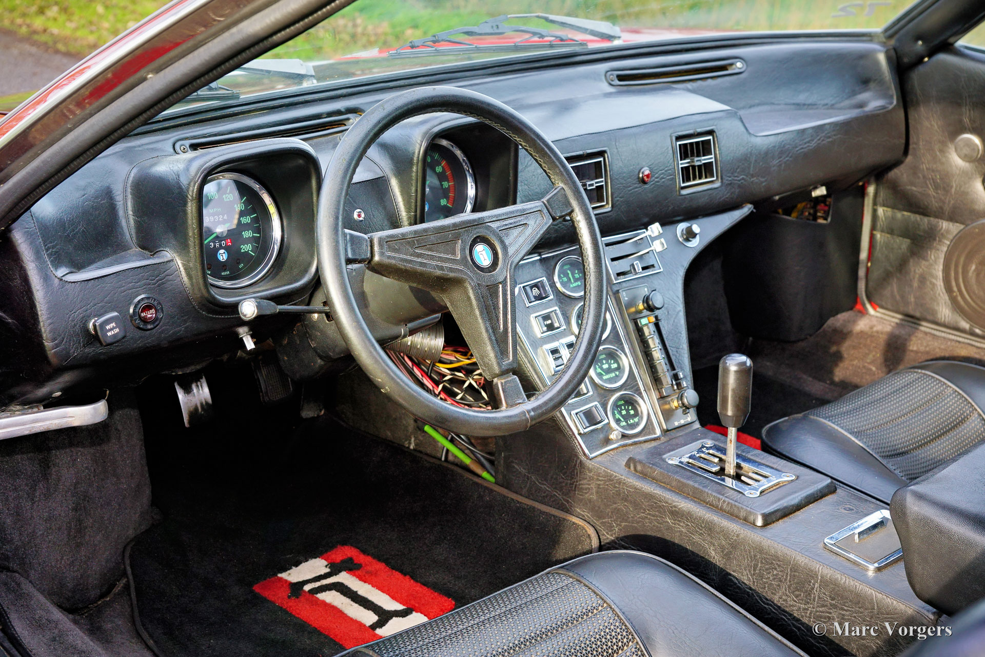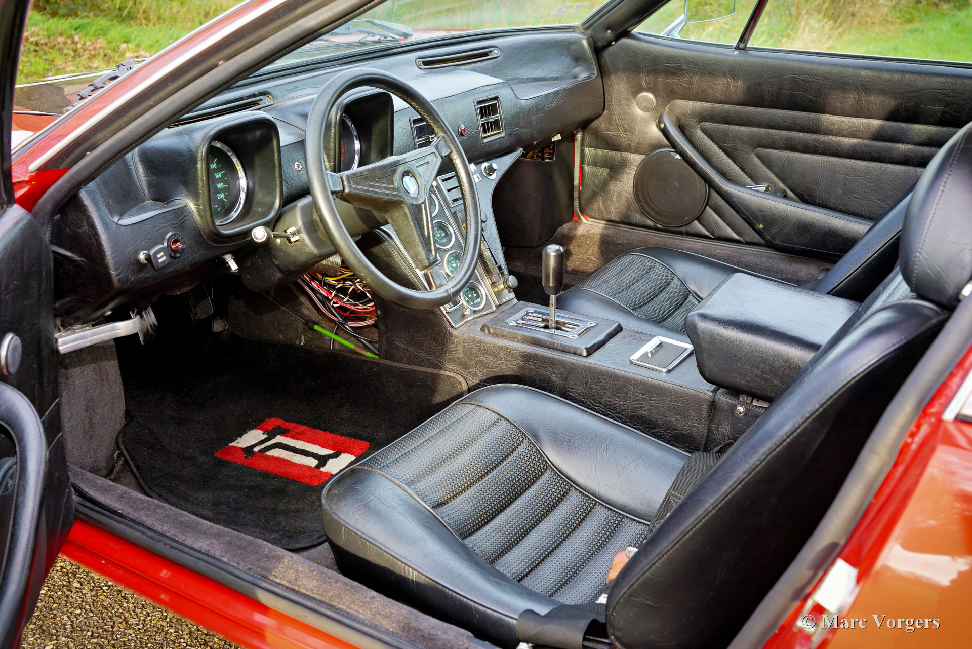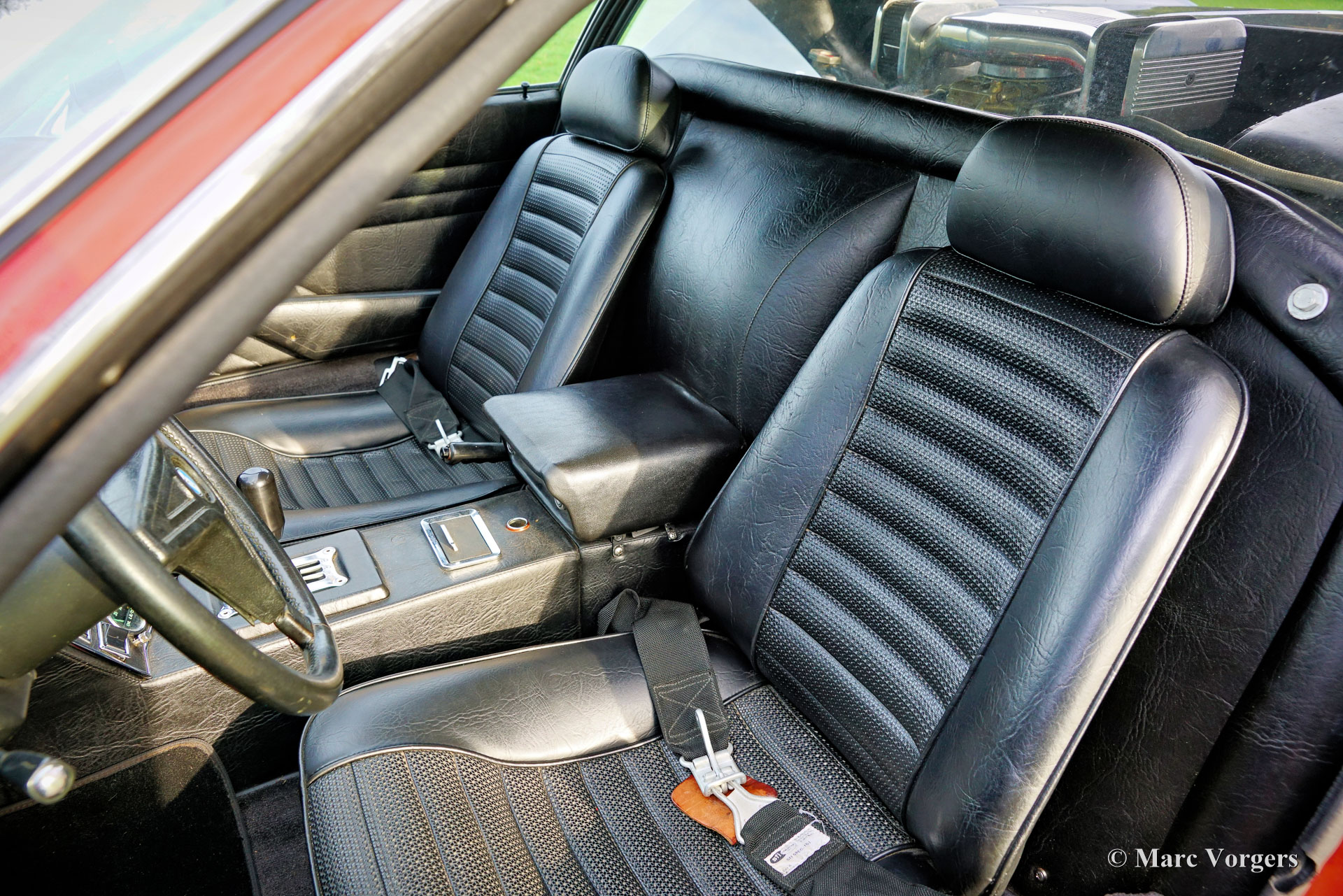 De Tomaso Pantera, year (March) 1972. Colour red combined with a black leatherette interior and black carpet. This De Tomaso Pantera is currently equipped with a carbon engine hood and front bonnet, the original parts are present. This impressive De Tomaso Pantera was shipped from California in the USA to Germany in the year 2015. In Germany much attention was given to bring the car mechanically up to date. Several parts were renewed, invoices are present. The 351 Ford Cleveland V8 engine is fitted with an Edelbrock intake manifold, Holley carburettor, and alloy Edelbrock rocker covers. This De Tomaso Pantera is very spectacular to drive, and the V8 exhaust note is wonderful! This De Tomaso Pantera was never restored, and the car still comes with the origin al American ‘title’. The car can be imported and registered in any country worldwide. This Pantera is in a good condition with a very nice fully original interior! The bodywork and the paintwork show some imperfections here and there which can be corrected quite easily, the price reflects this. This De Tomaso Pantera comes with the original steering wheel and the original De Tomaso Campagnolo alloy wheels which are shod with Goodyear Eagle 15-inch tyres. The De Tomaso Pantera was built in Modena Italy and is an impressive Italian sports car featuring a centrally mounted Ford V8 engine. De Tomaso sold Panteras in the USA under agreement with Ford through the Lincoln and Mercury dealer network. The 1973 oil-crisis ended the agreement, and De Tomaso took over all the Pantera shares. The combination of Italian design (Ghia, Tom Tjaarda), great road holding capabilities, and American V8 muscle (330 bhp) proved to be a successful recipe. Until 1992, a total of 6128 Panteras were built. This very original example is one of the sought-after cars from the first Ford years! This De Tomaso is a rare collector item and an impressive driver car for the enthusiast!