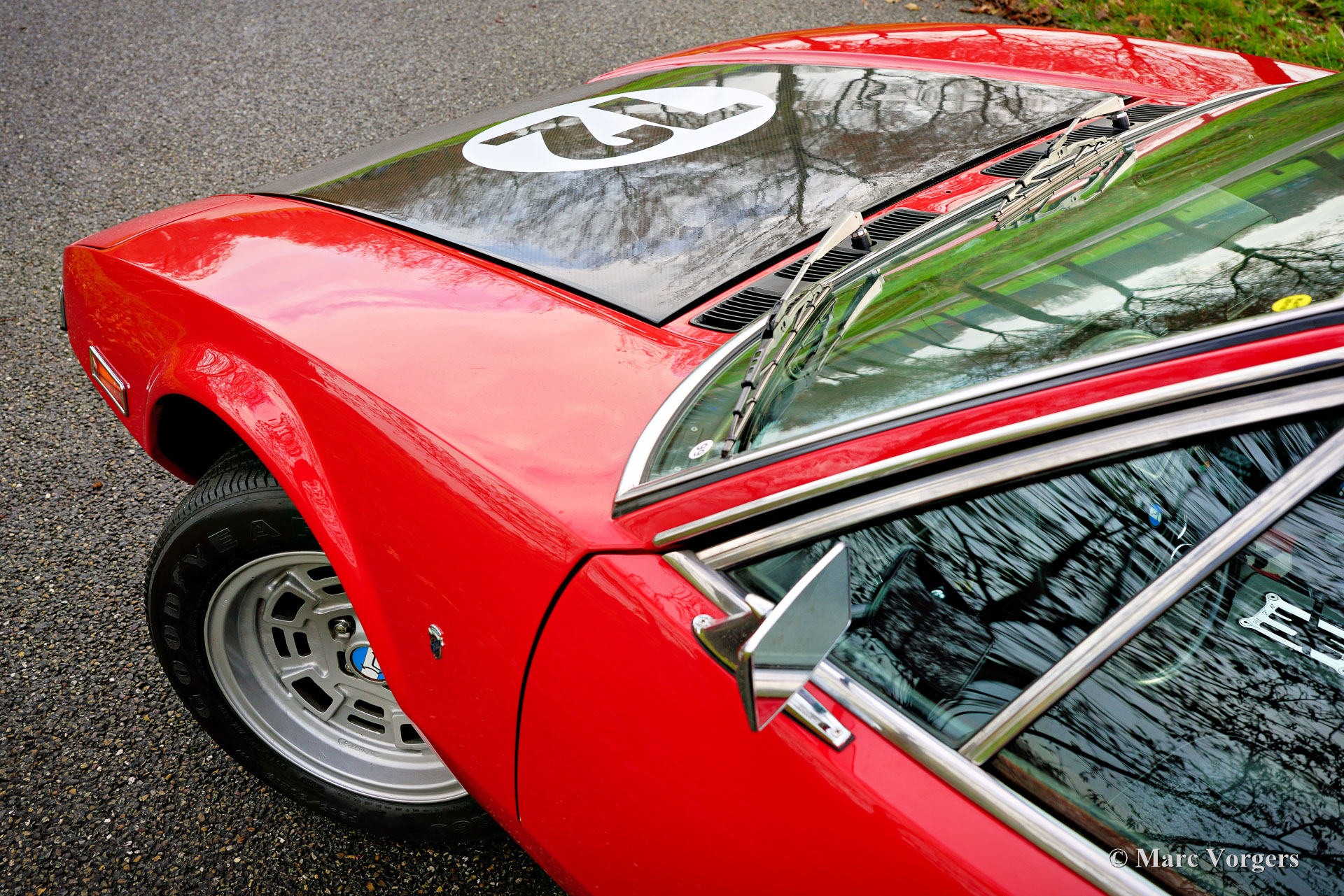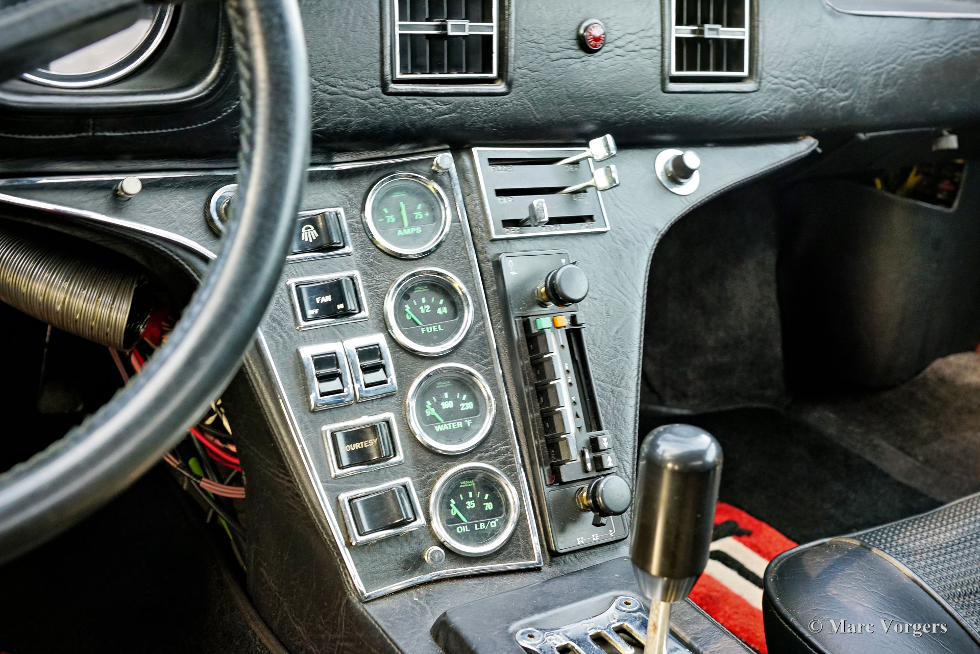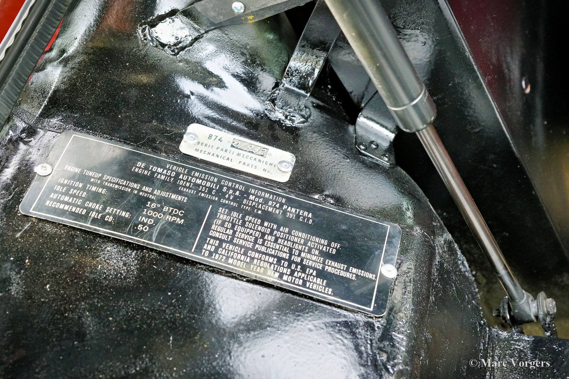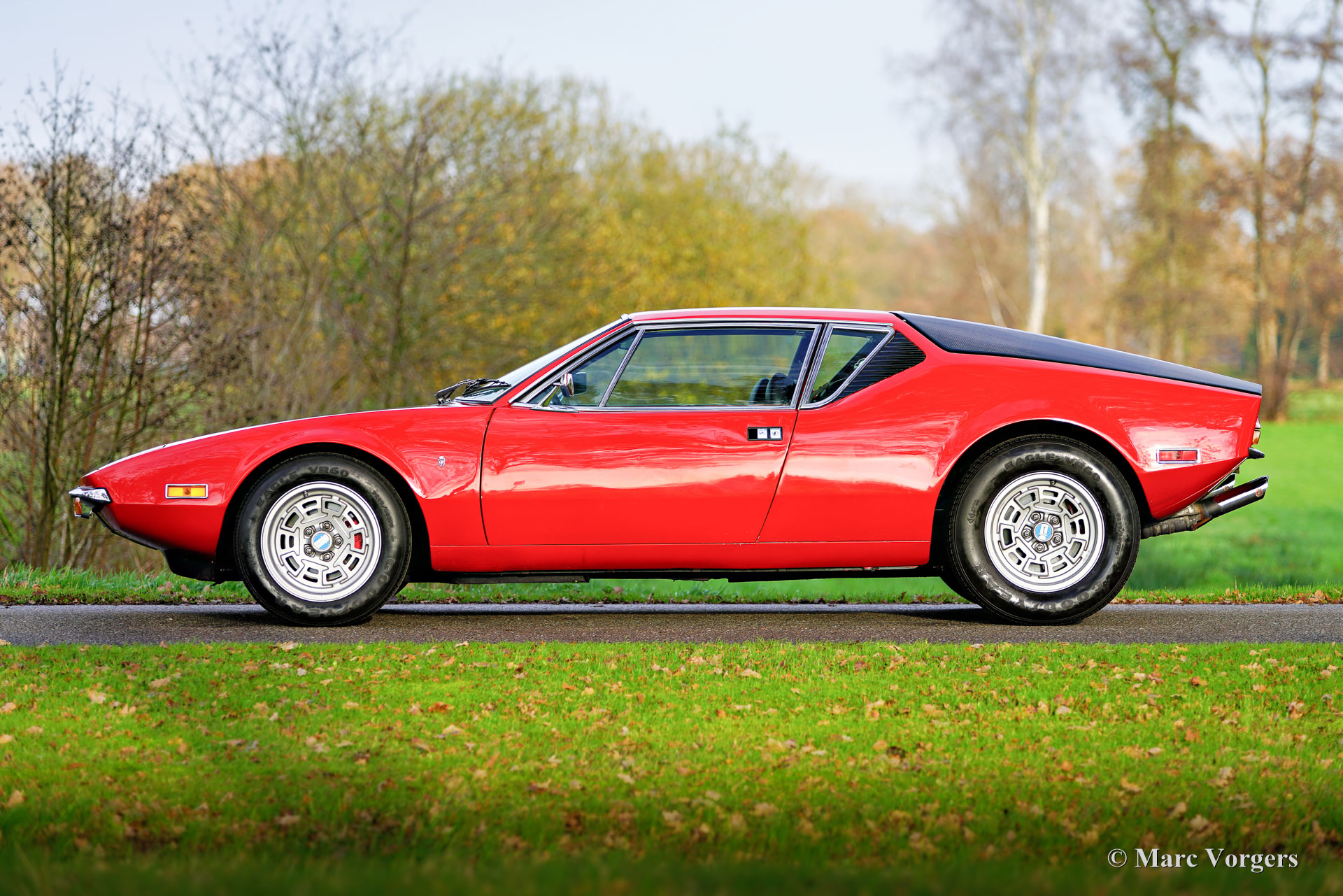 De Tomaso Pantera, year (March) 1972. Colour red combined with a black leatherette interior and black carpet. This De Tomaso Pantera is currently equipped with a carbon engine hood and front bonnet, the original parts are present. This impressive De Tomaso Pantera was shipped from California in the USA to Germany in the year 2015. In Germany much attention was given to bring the car mechanically up to date. Several parts were renewed, invoices are present. The 351 Ford Cleveland V8 engine is fitted with an Edelbrock intake manifold, Holley carburettor, and alloy Edelbrock rocker covers. This De Tomaso Pantera is very spectacular to drive, and the V8 exhaust note is wonderful! This De Tomaso Pantera was never restored, and the car still comes with the origin al American ‘title’. The car can be imported and registered in any country worldwide. This Pantera is in a good condition with a very nice fully original interior! The bodywork and the paintwork show some imperfections here and there which can be corrected quite easily, the price reflects this. This De Tomaso Pantera comes with the original steering wheel and the original De Tomaso Campagnolo alloy wheels which are shod with Goodyear Eagle 15-inch tyres. The De Tomaso Pantera was built in Modena Italy and is an impressive Italian sports car featuring a centrally mounted Ford V8 engine. De Tomaso sold Panteras in the USA under agreement with Ford through the Lincoln and Mercury dealer network. The 1973 oil-crisis ended the agreement, and De Tomaso took over all the Pantera shares. The combination of Italian design (Ghia, Tom Tjaarda), great road holding capabilities, and American V8 muscle (330 bhp) proved to be a successful recipe. Until 1992, a total of 6128 Panteras were built. This very original example is one of the sought-after cars from the first Ford years! This De Tomaso is a rare collector item and an impressive driver car for the enthusiast!