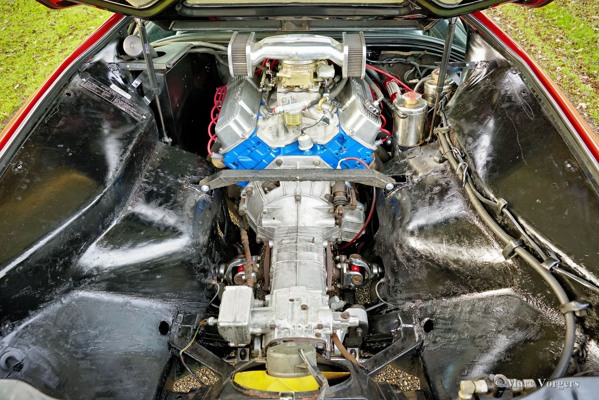 De Tomaso used Ford engines from start. The Vallelunga was equipped with a four cylinder Ford Cortina engine, the later models were fitted with very powerfull Cleveland V8 engines coming from Ford U.S.A. (The engine was also used in the Ford Mustang Mach I musclecar).