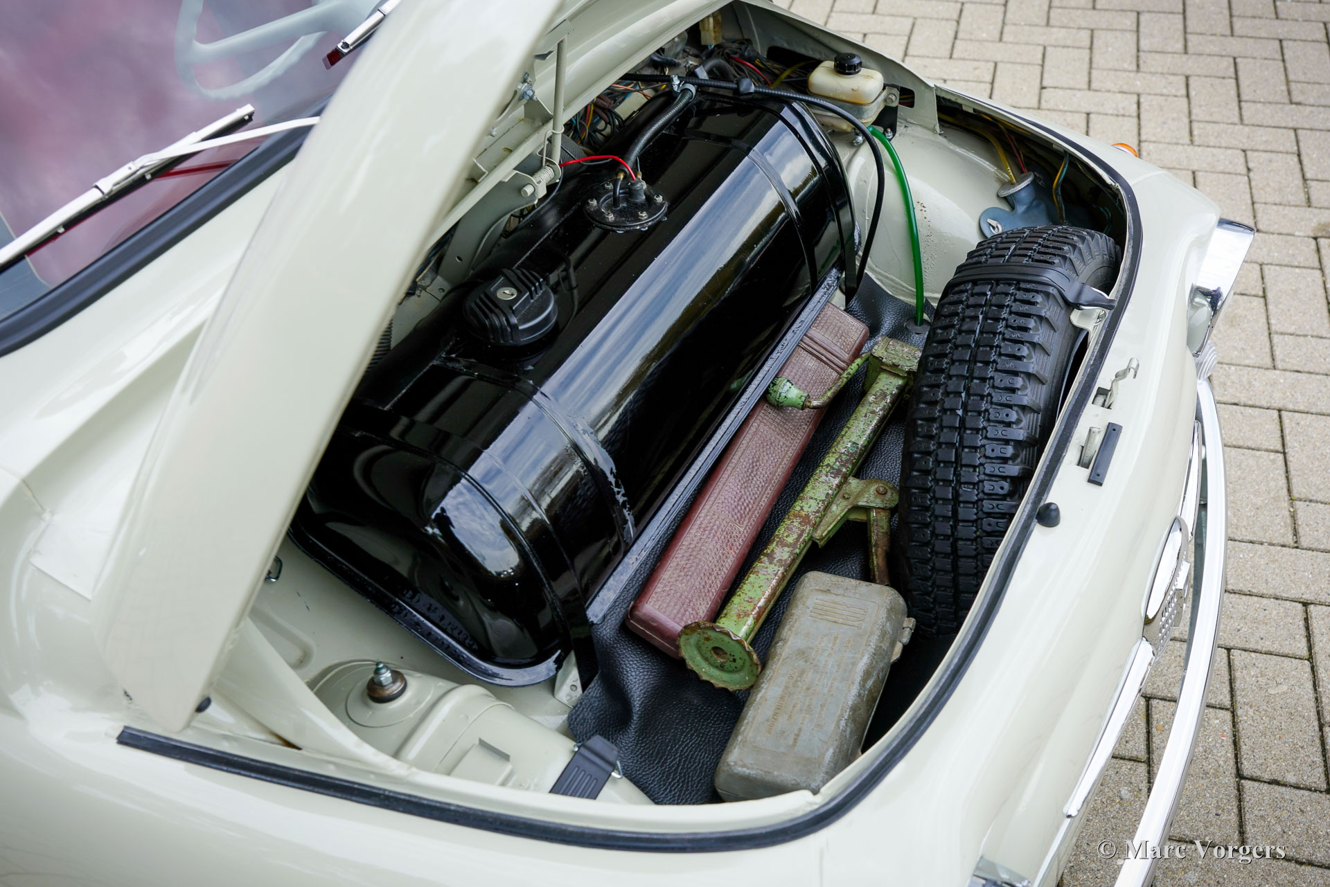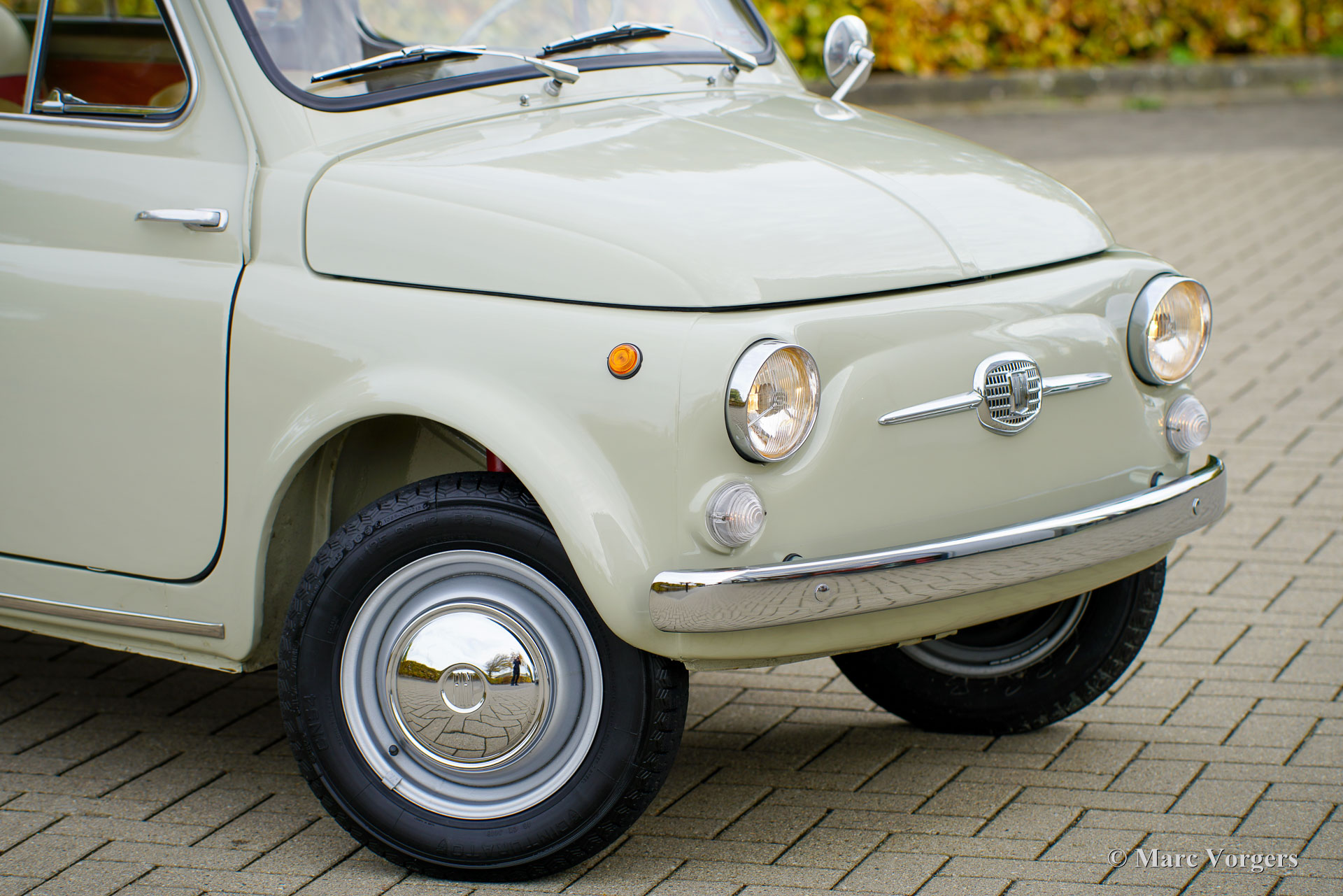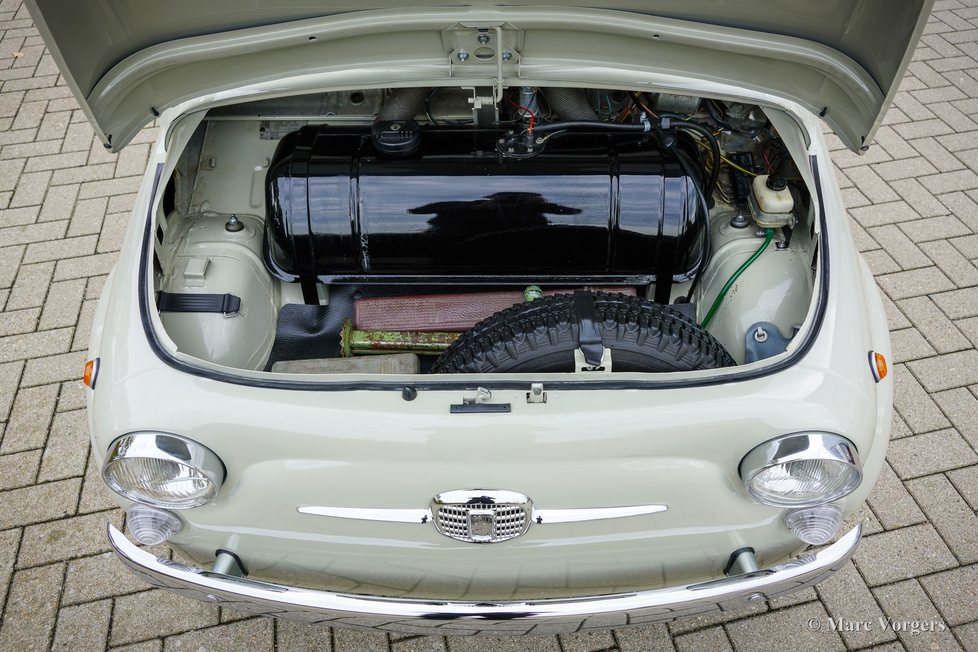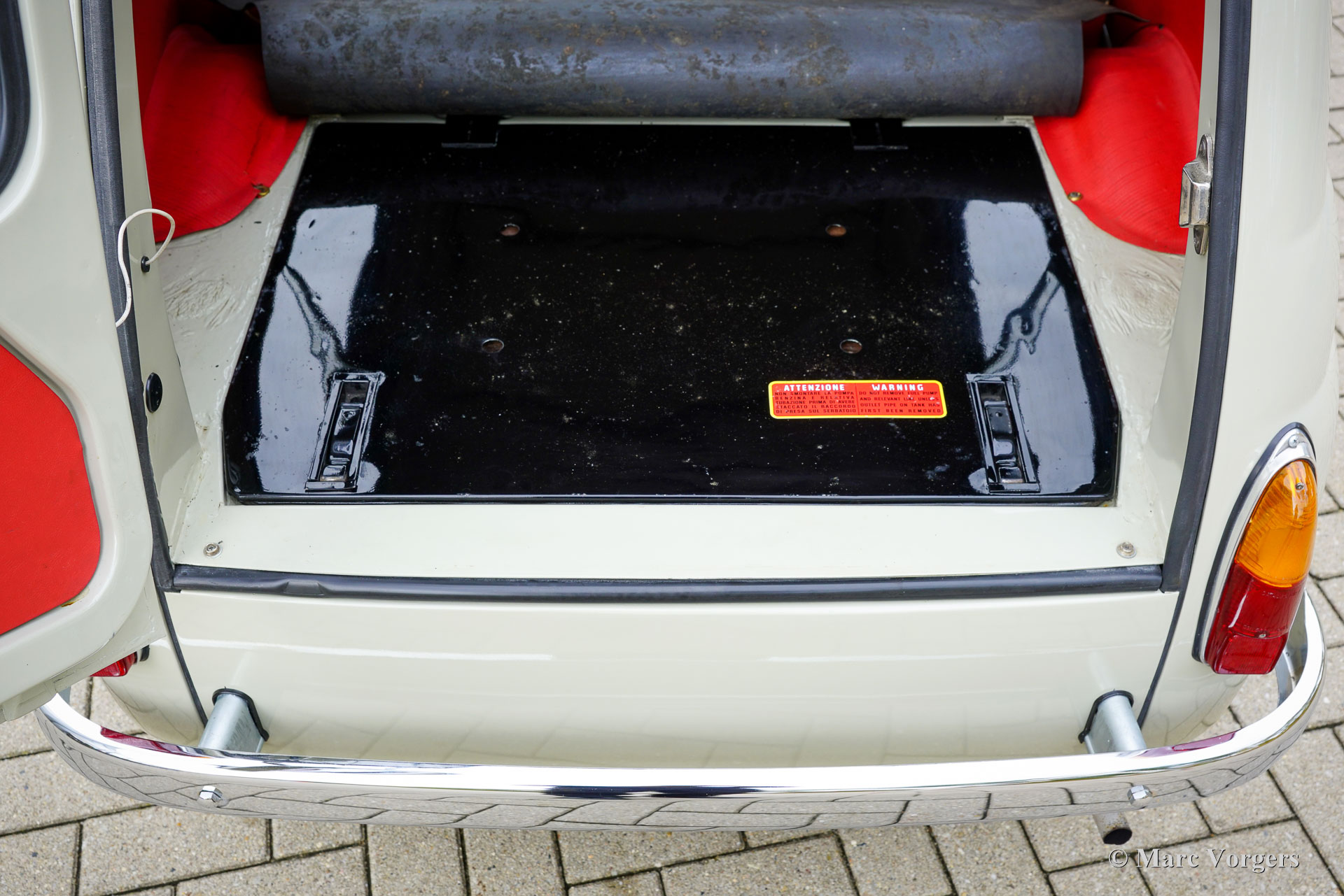 Fiat 120 Nuova 500 Giardiniera, year 1965. Chassis (VIN) number Fiat120*144869*, engine number 120000*243877*. Body colour warm grey (beige) combined with a red/cream faux leather (vinyl) interior trimmed with black rubber carpet. This delightful Fiat 120 Nuova 500 Giardiniera was sold new in the south of Italy where it stayed until recently. After an extensive service in Italy, including a brake service, the car was sold to the Netherlands. This Fiat Nuova 500 Giardiniera is in an excellent condition! The odometer shows 82.796 kilometres. The bodywork looks brand new and was beautifully restored/ repainted in the past; the interior is in a wonderful and excellent condition. The engine compartment looks as if the car has left the factory just two years ago. This stunning Fiat 500 Giardiniera shows all the original details and the car drives and handles as it should. The driving experience is a time travel to sweeter times were modesty and kindness were virtues. Visiting local villages driving this lovely dream machine you will be showered with compliments, thumbs up and there will be no shortage of conversations. If you do not like that, stay away from this cutie! This Fiat 120 Nuova 500 Giardiniera is a great collector’s item. Some would like to put it on show in their spacious house as a statement piece of Italian design, others would like to cherish and cuddle it in their barn or garage. Either way, it comes with the promise of joy!