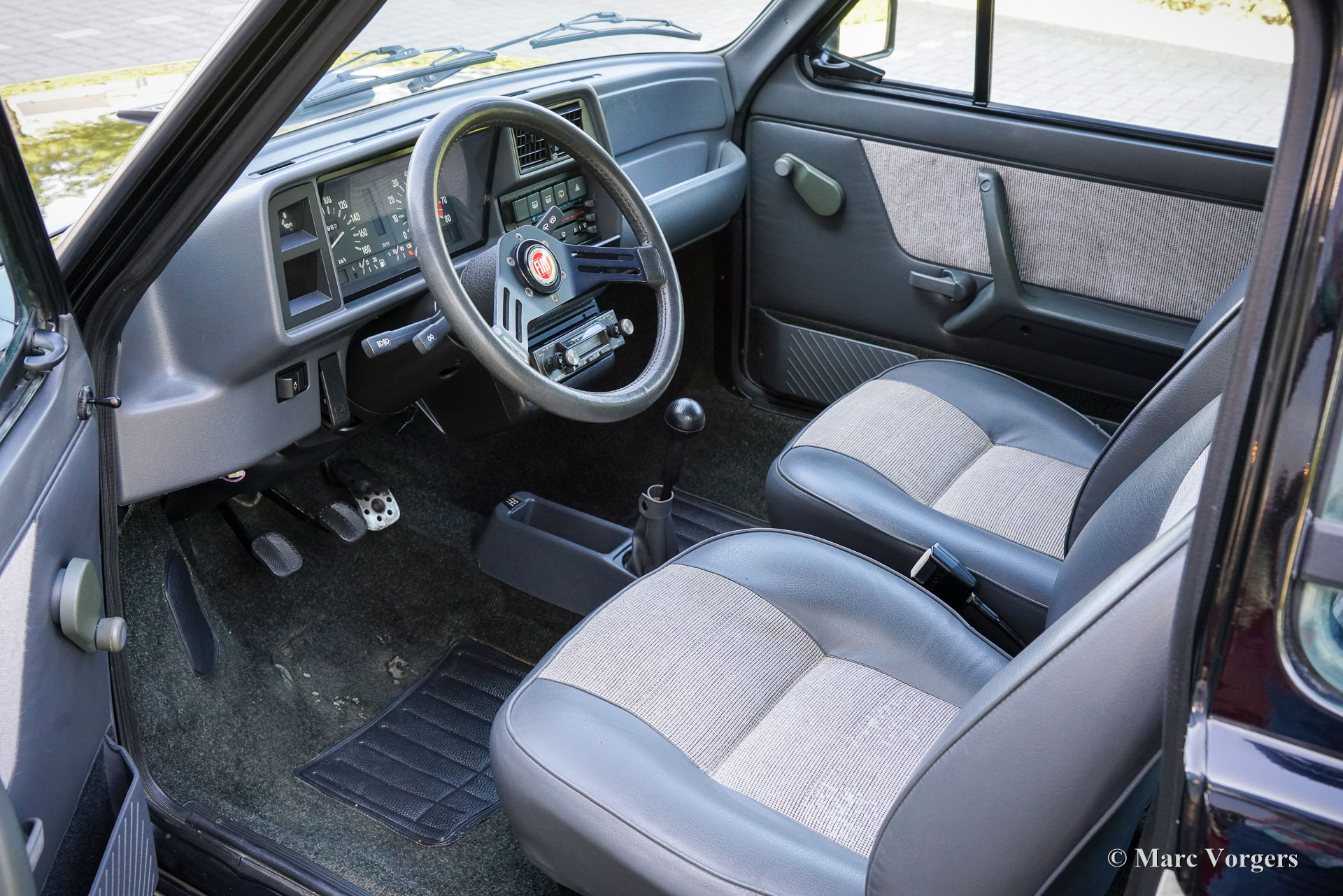 Fiat 127 Sport 75HP, year 1983. Colour black (Nero) combined with a grey interior. Two tone grey vinyl seats with cloth facings in the centres and dark grey carpet. This magnificent Fiat 127 Sport was sold new to Switzerland, the second owner was an Italian collector in Cervesina (PV). The Fiat still has its Italian registration CT738176 and the odometer currently reads 52.967 kilometres. This fantastic Fiat 127 Sport comes from the 3rd Fiat 127 series and features the powerful 75 HP 1300 cc engine with a twin choke Weber carburettor. The 127 Sport 75 HP is the top model of the 127 series. The car is in a stunning original condition showing all the original details! A true time capsule! The driving experience is wonderful, and the car still feels like it has just left the Fiat factory. This Fiat 127 Sport 75 HP is is delightful car to own and in this fantastic original condition a true collector’s piece!