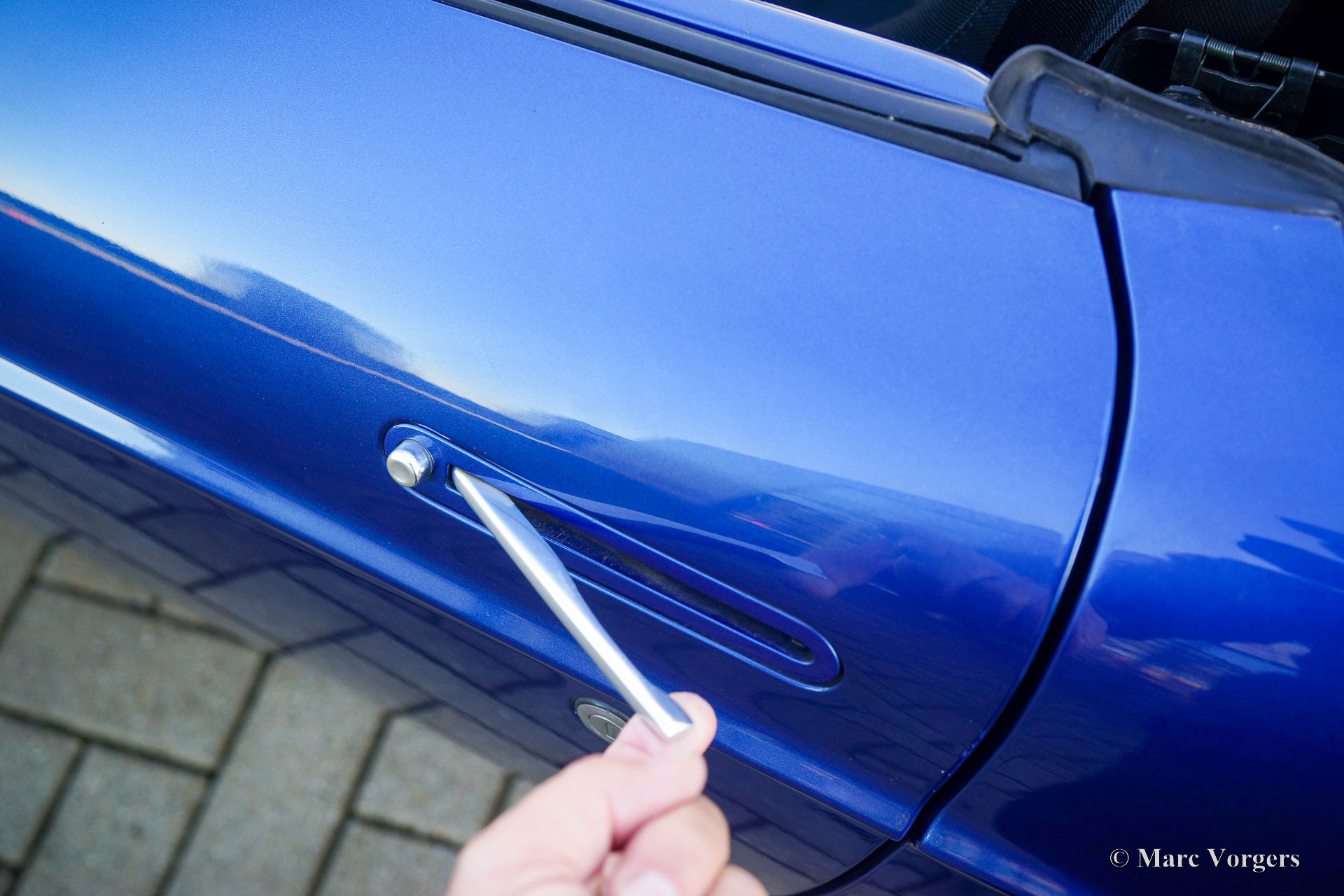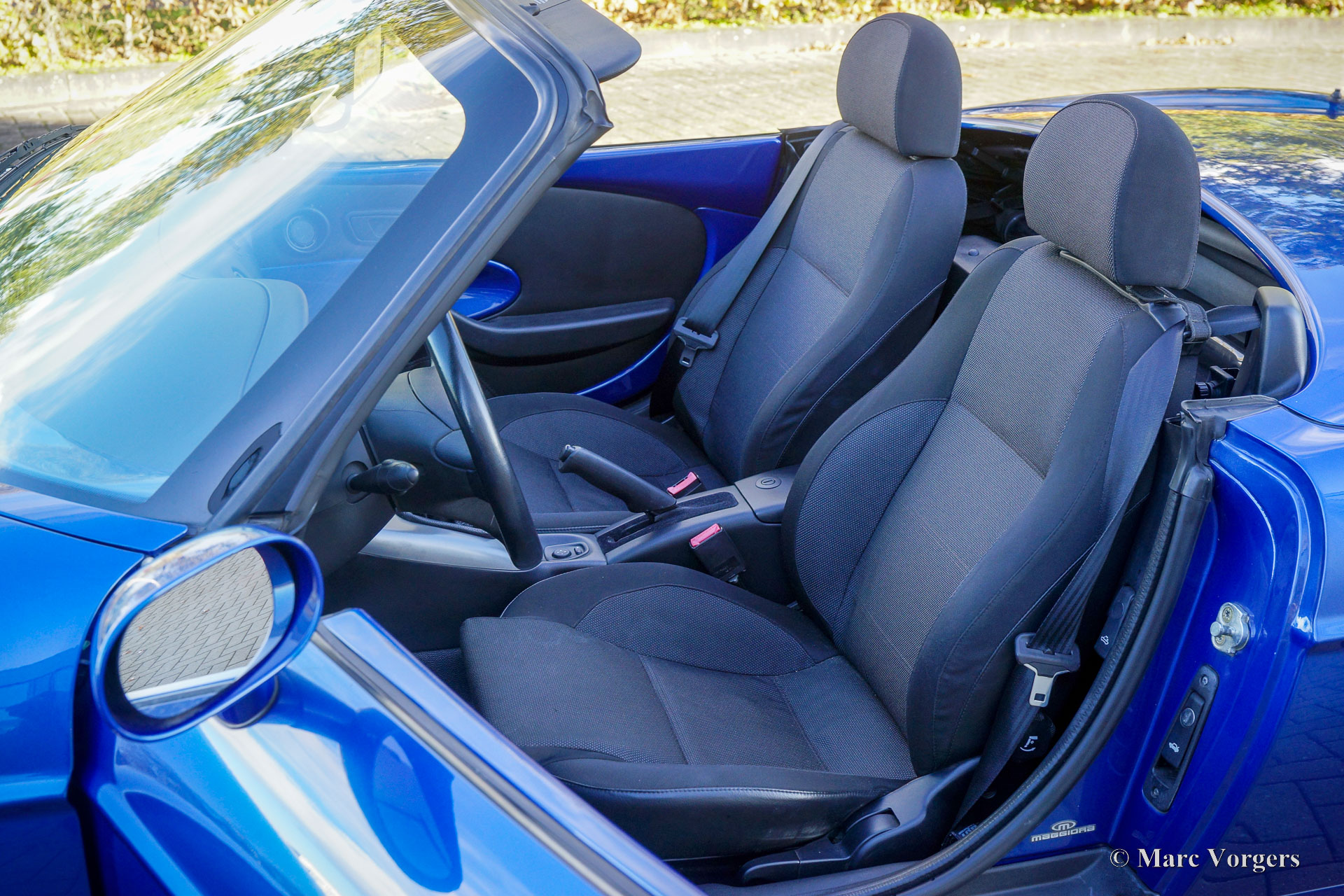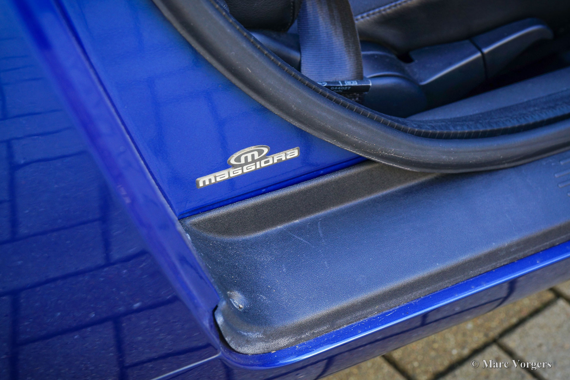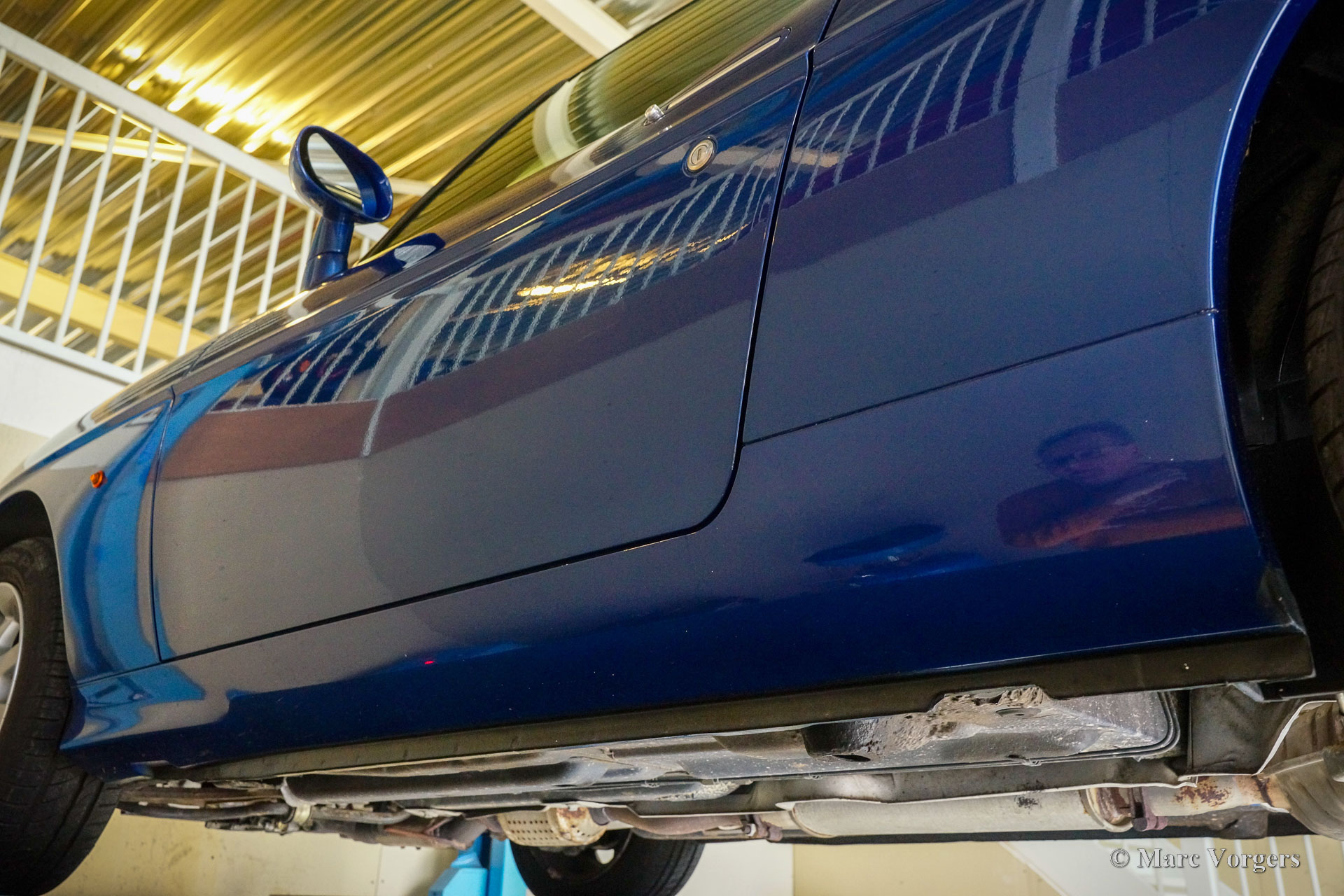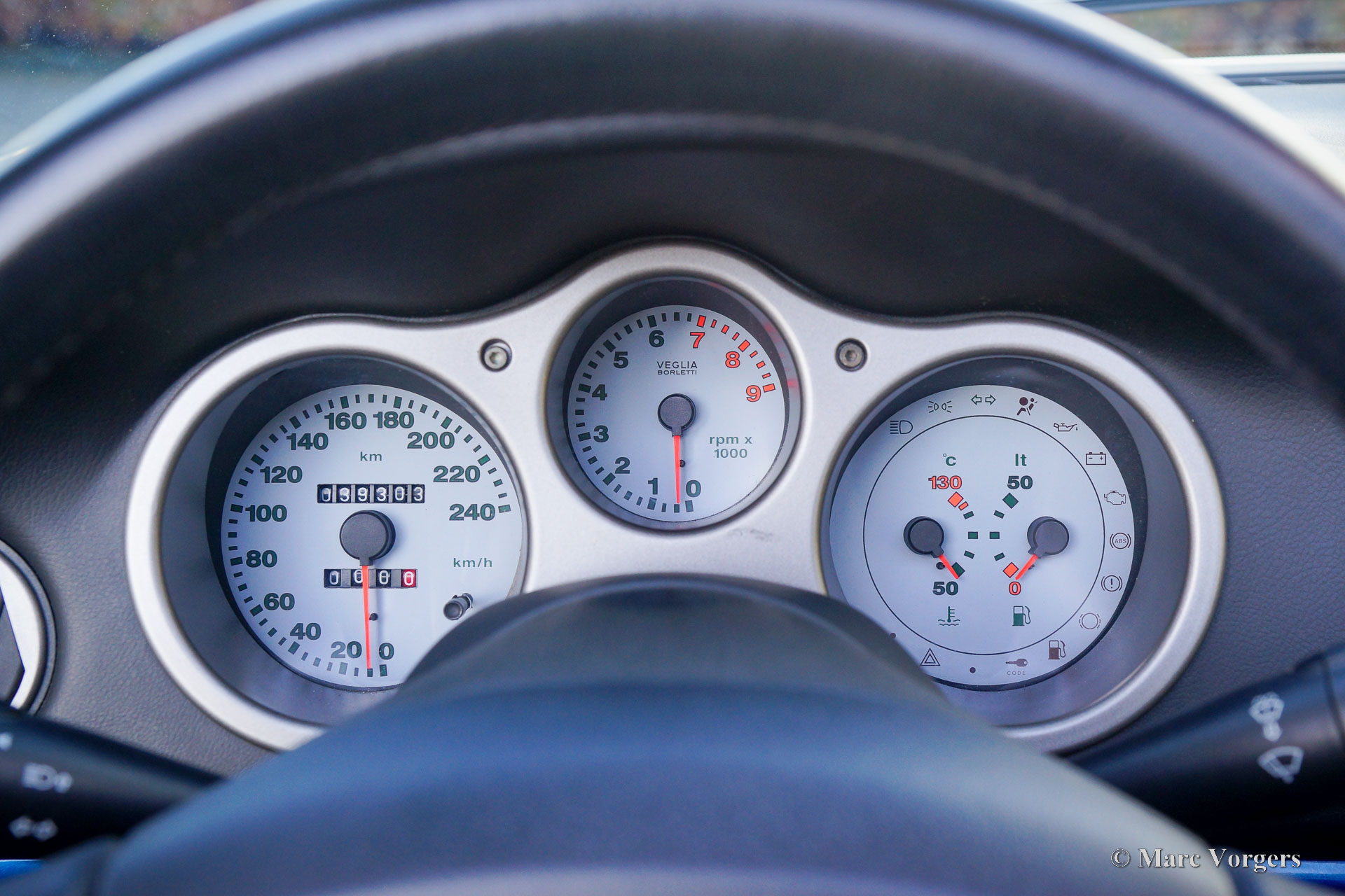 Fiat Barchetta 1.8 16V, year 2001. Colour blue metallic combined with a grey interior. Black soft top and hard top in body colour. The Fiat Barchetta (which means small boat in Italian) was presented in 1995 and built until 2005. For the 2001 model year the Barchetta was given tiny updates like the brake light on the boot lid. This fantastic Fiat Barchetta was sold new in the Netherlands, the car was cherished by one careful owner from new! This Barchetta is in an excellent original condition showing only the slightest signs of previous use. The odometer currently shows 39.304 km. The Dutch registration number is 77-GZ-BB, the car comes with a correct NAP. This fine Fiat Barchetta comes with desirable extra’s like the hard top with heated window, a ‘wind stop’, chrome baggage rack, and chrome roll bars which can be mounted behind the seats. This is a very desirable example in excellent condition!