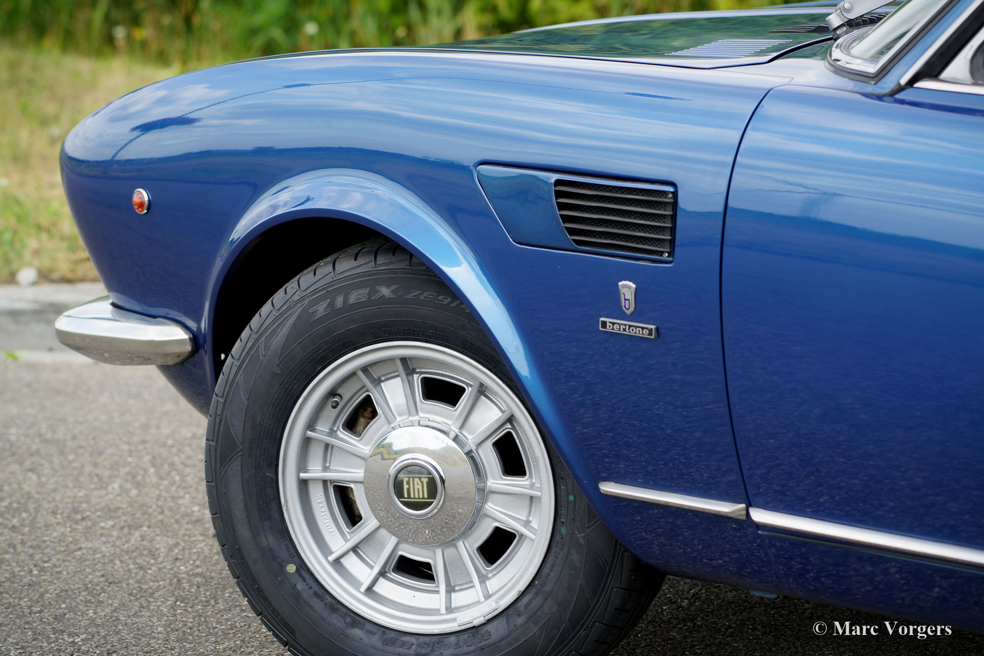 Fiat Dino 2000 coupé, year 1967. Colour Azurro Mexico Blue metallic with a black leather interior and black carpet. This gorgeous Fiat Dino 2000 coupé is car number 128 of 3600 examples built from 1967 until 1969. The automobile has undergone an extensive body restoration (photo report present) and the leather interior and carpet have been renewed. Mechanically the car is largely original. An engine compression test chart with healthy results is present. This Fiat Dino is in very good to excellent condition and the car drives and handles perfectly. The 2-litre Ferrari (Dino) V6 engine delivers 165 bhp and the unit sounds magnificent! The 5-speed manually operated gearbox shifts perfectly. The Dino coupe was designed by Bertone; a beautifully shaped master-piece with gorgeous eye-catching details!