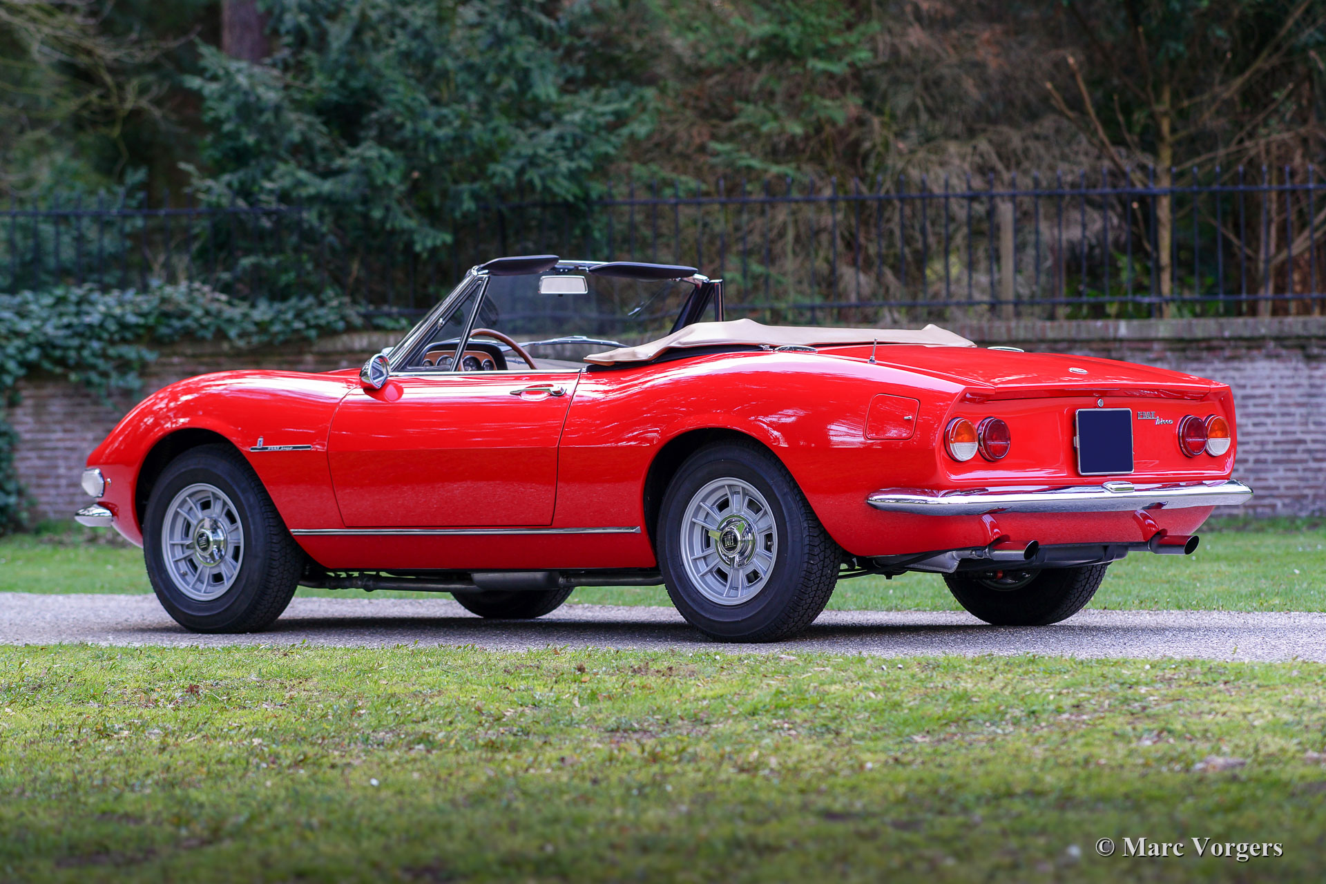 Fiat Dino 2000 Spider, year 1968. Colour red with a beige leather interior and beige carpet. This fantastic Fiat Dino Spider was sold in 2005 by Smiths-Veglia to the current owner. The car was enjoyed for years until the owner decided to carry out an extensive restoration of the car which was still in very good condition. The car was fully taken apart restored and rebuilt, the process is pictured in about 500 photographs which are compiled in a large photo-book (two copies) with descriptions. The perfect original interior was preserved and the correct Autovox radio was fitted. This mighty Fiat Dino Spider is in superb top condition; concours! Since completion of the restoration the car has driven only 400 kilometres. A top-class specimen!