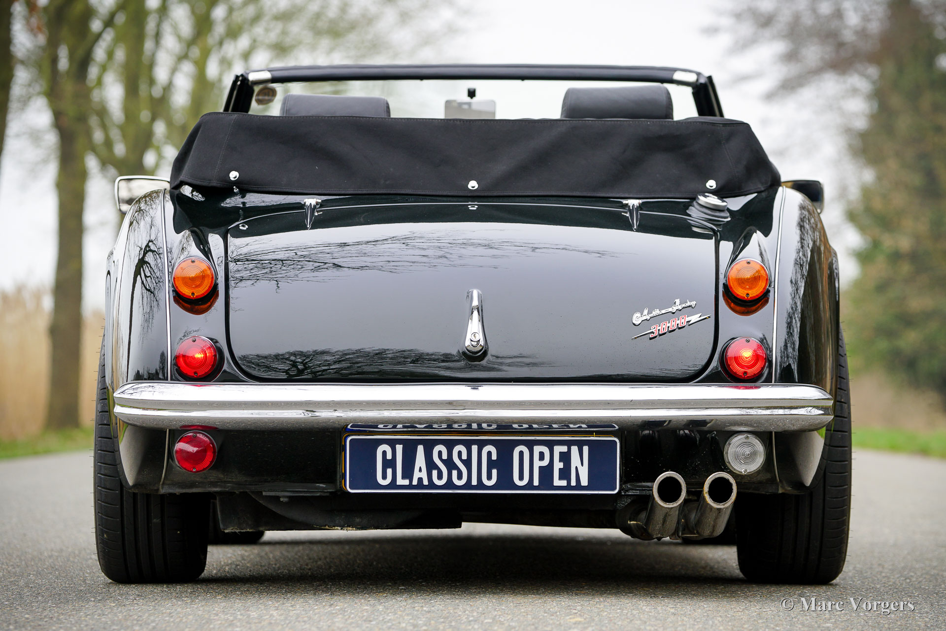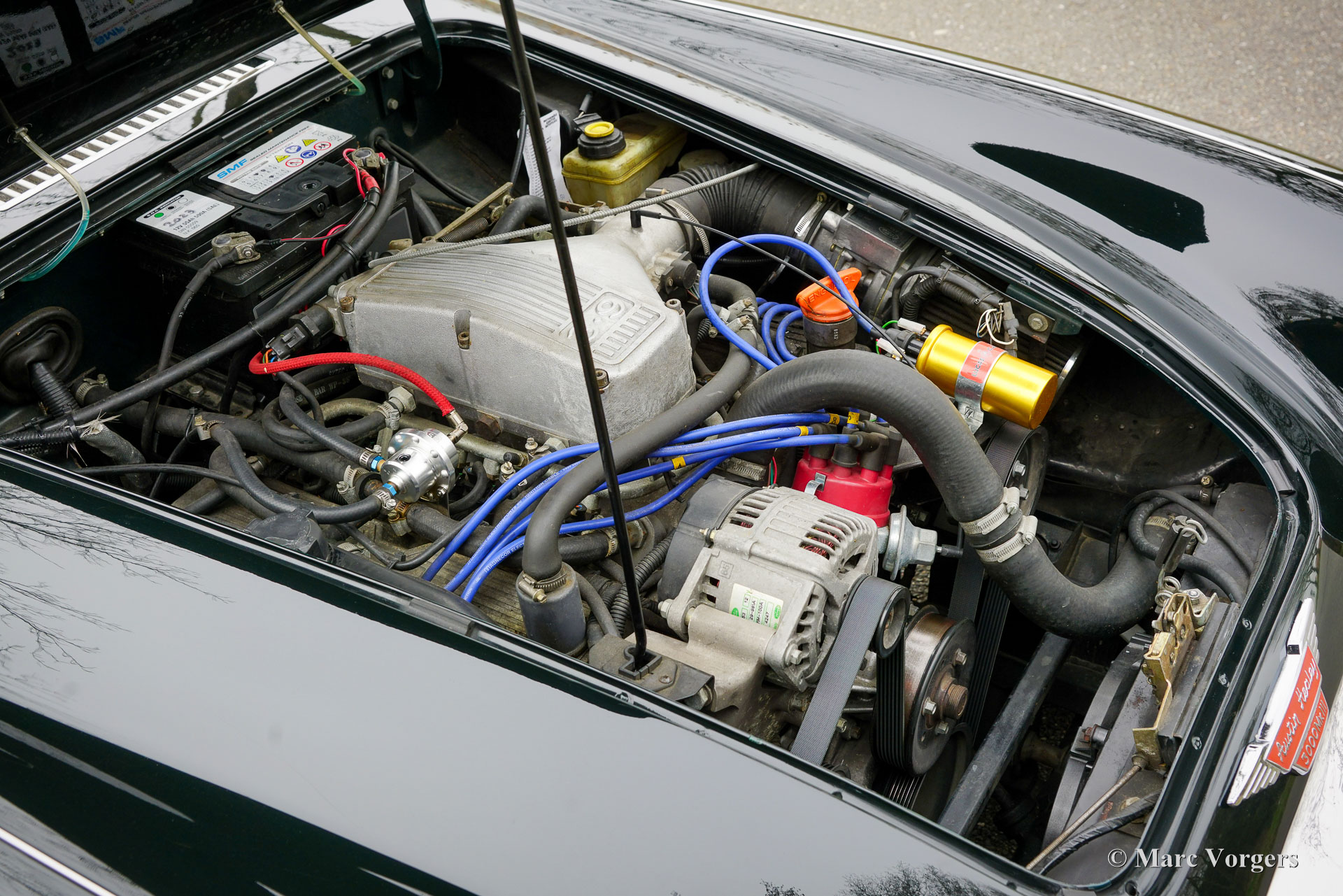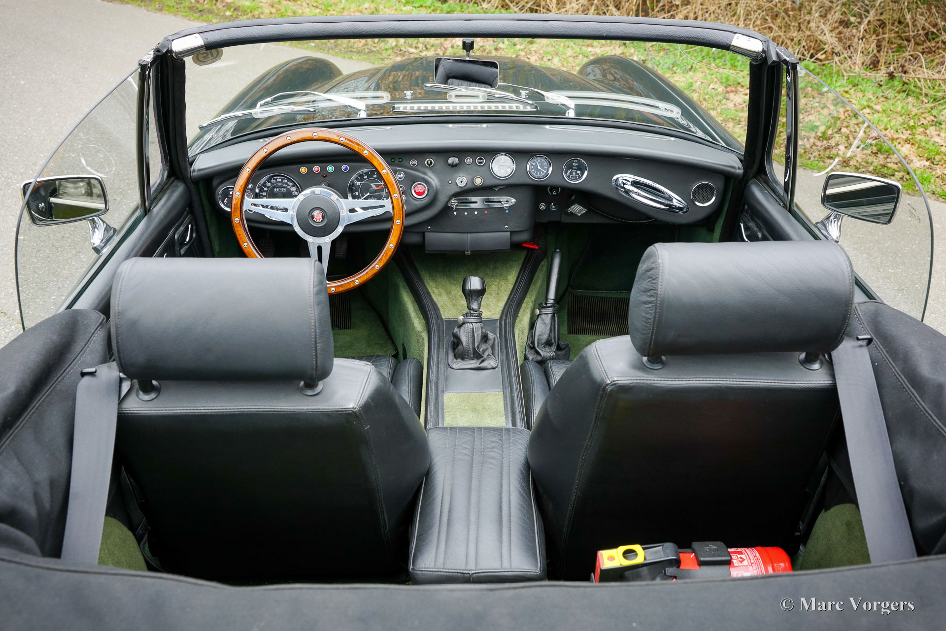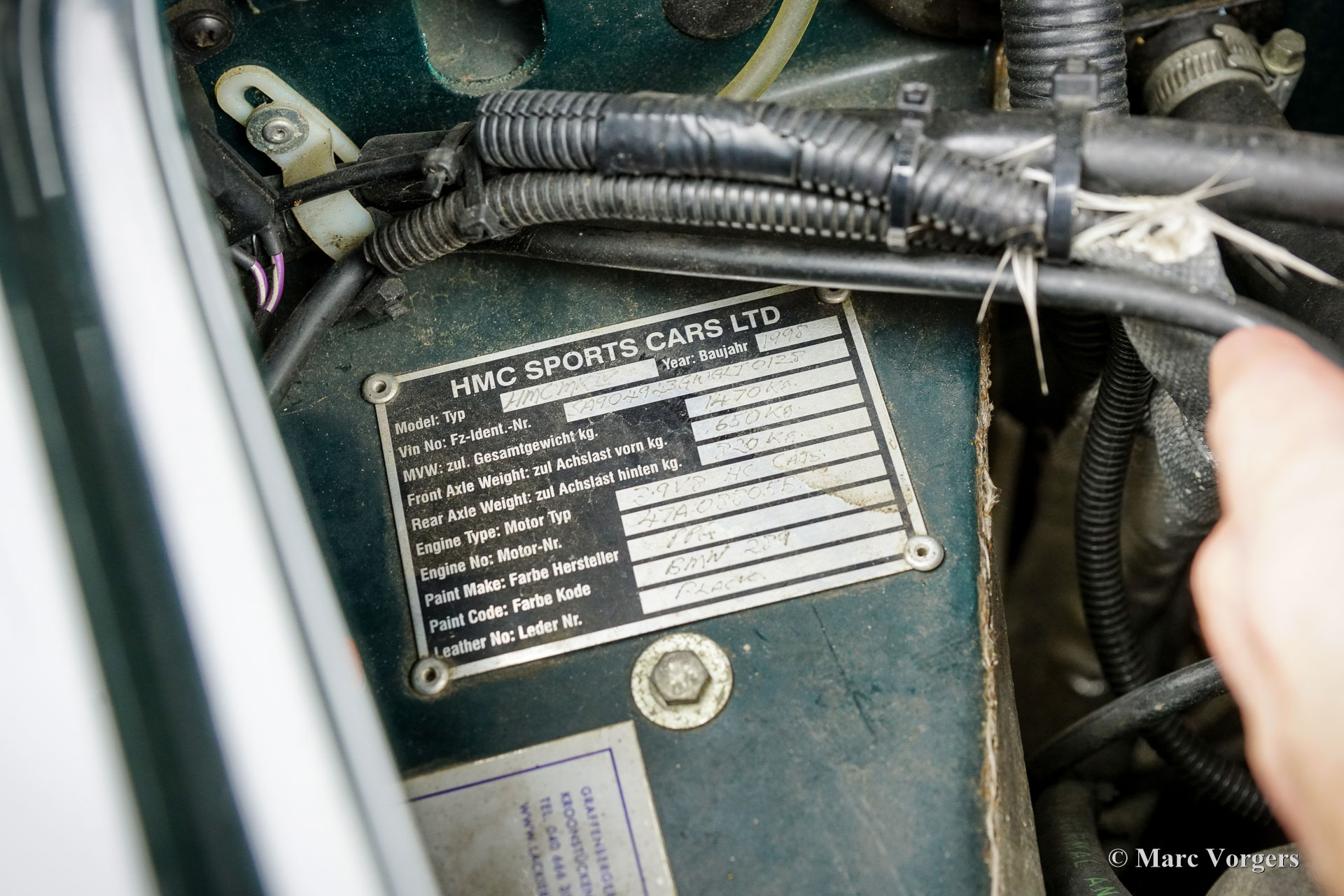 This gorgeous 1998 HMC Mark IV, production number 0128, chassis (VIN) number SA904943GWGLT0128 and engine number 47A08805B, comes from its first owner. The bodywork is finished in dark racing green (BMW 289), complemented by a black full‑leather interior and green carpeting. The first owner covered 58,750 unforgettable kilometres in this fantastic sports car from new. The driving experience is truly unique. Anyone familiar with the 1960s Austin‑Healey 3000 will be utterly astonished: the HMC Mark IV is a genuine modern reincarnation of this classic icon. Once seated, one immediately notices the sporty luxury of the full‑leather interior, including the dashboard and door panels. The seats offer excellent support, and the driving position is a major improvement over the 1960s original. On start‑up there is no 3‑litre straight‑six howl, but instead the rumble of a 190 bhp 3.9‑litre V8 — the same legendary unit used in the Morgan +8 and the TVR S‑Series. With a weight of 1200 kilogrammes, the HMC Mark IV delivers impressive performance. The substantial 305 Nm of torque is especially noticeable when the ‘big hand’ pulls the car from 0–100 km/h in 6.1 seconds. With independent suspension all round and disc brakes on all four wheels, the car handles and stops exceptionally well. This wonderful example has been carefully garaged, serviced, and maintained, and shows only slight signs of previous use. It represents a rare opportunity to acquire an exclusive and highly impressive HMC Mark IV.