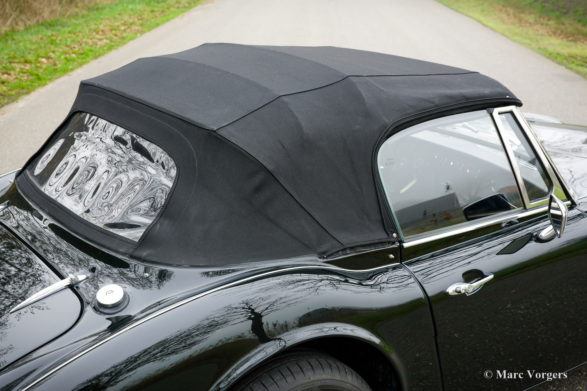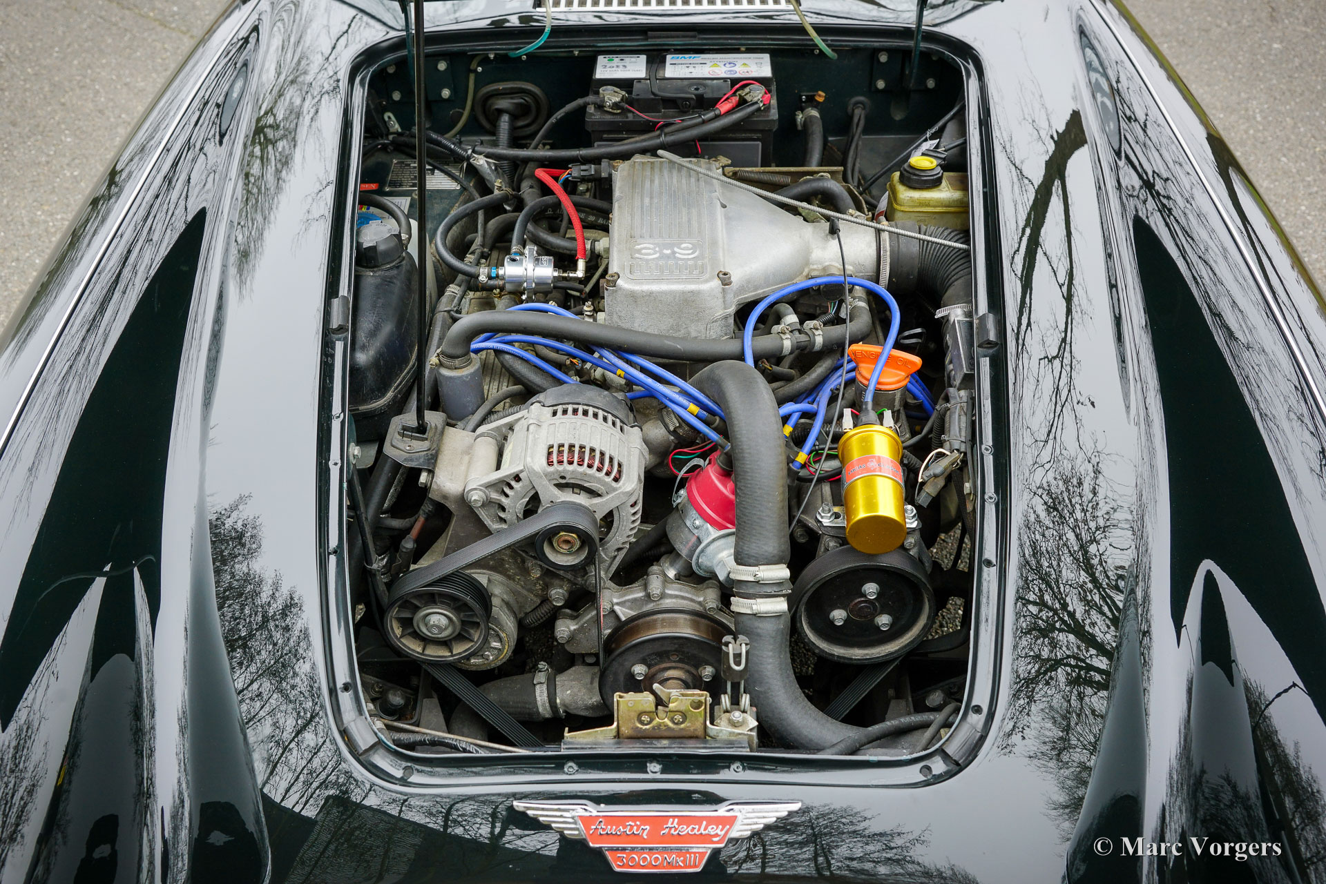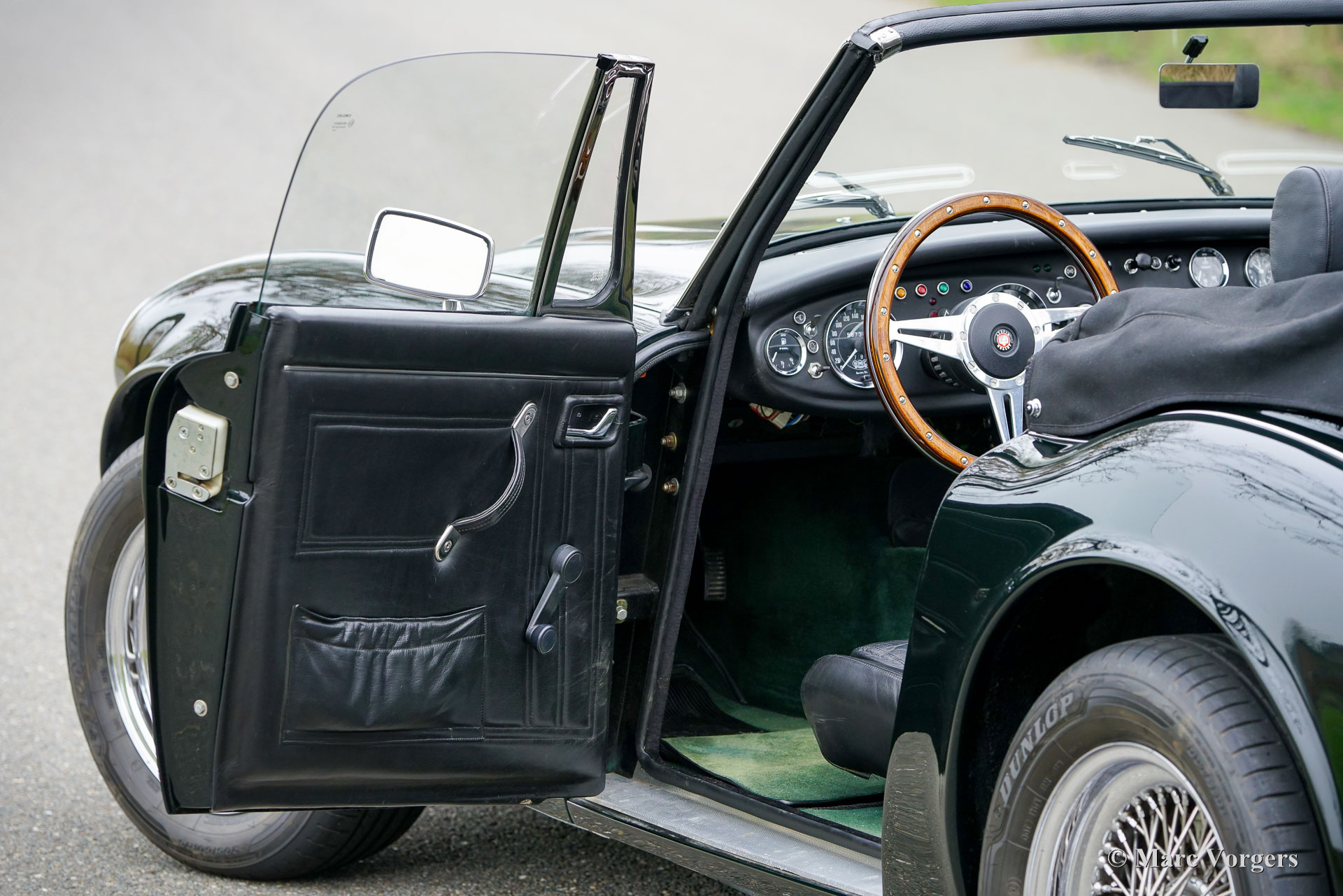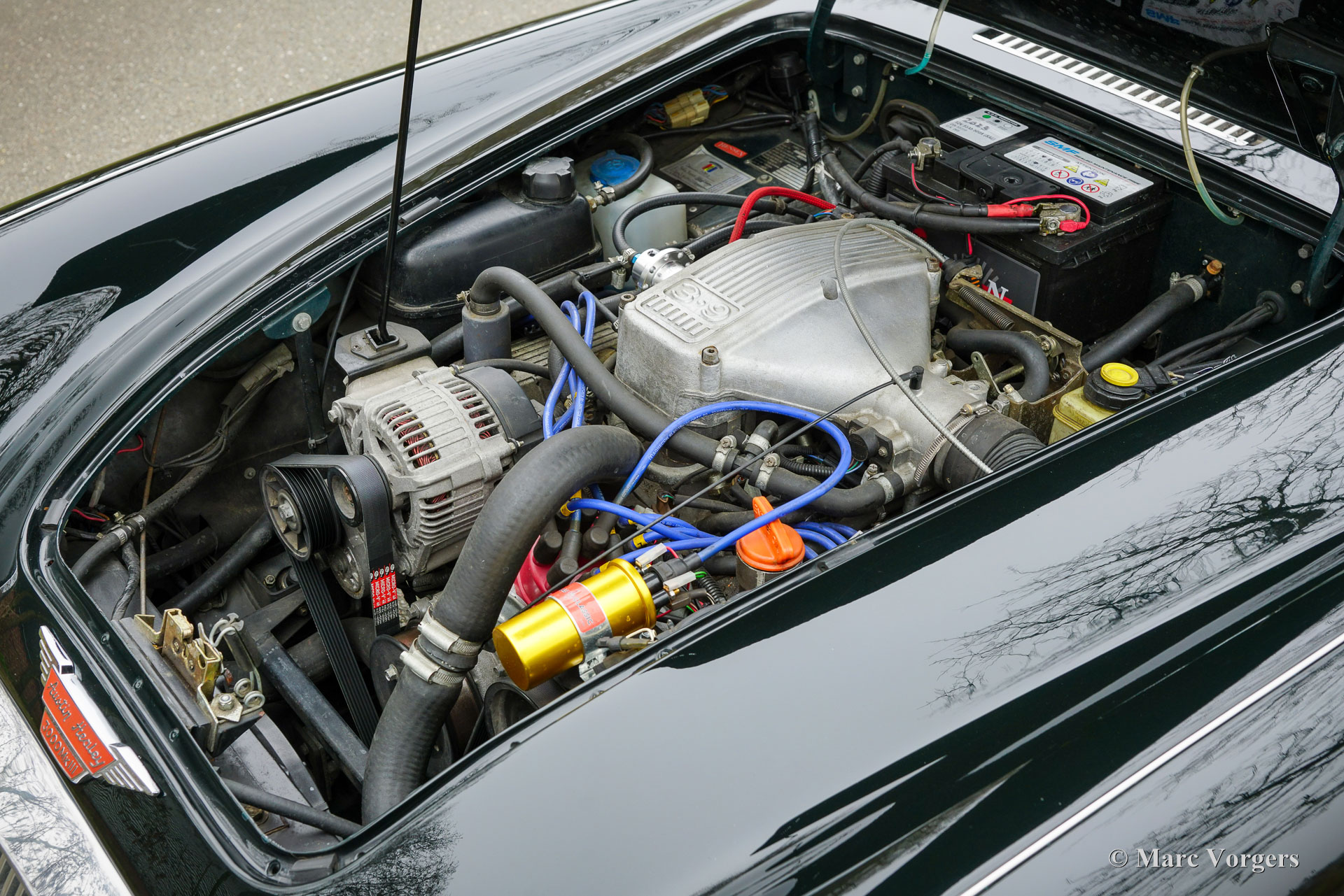 This gorgeous 1998 HMC Mark IV, production number 0128, chassis (VIN) number SA904943GWGLT0128 and engine number 47A08805B, comes from its first owner. The bodywork is finished in dark racing green (BMW 289), complemented by a black full‑leather interior and green carpeting. The first owner covered 58,750 unforgettable kilometres in this fantastic sports car from new. The driving experience is truly unique. Anyone familiar with the 1960s Austin‑Healey 3000 will be utterly astonished: the HMC Mark IV is a genuine modern reincarnation of this classic icon. Once seated, one immediately notices the sporty luxury of the full‑leather interior, including the dashboard and door panels. The seats offer excellent support, and the driving position is a major improvement over the 1960s original. On start‑up there is no 3‑litre straight‑six howl, but instead the rumble of a 190 bhp 3.9‑litre V8 — the same legendary unit used in the Morgan +8 and the TVR S‑Series. With a weight of 1200 kilogrammes, the HMC Mark IV delivers impressive performance. The substantial 305 Nm of torque is especially noticeable when the ‘big hand’ pulls the car from 0–100 km/h in 6.1 seconds. With independent suspension all round and disc brakes on all four wheels, the car handles and stops exceptionally well. This wonderful example has been carefully garaged, serviced, and maintained, and shows only slight signs of previous use. It represents a rare opportunity to acquire an exclusive and highly impressive HMC Mark IV.