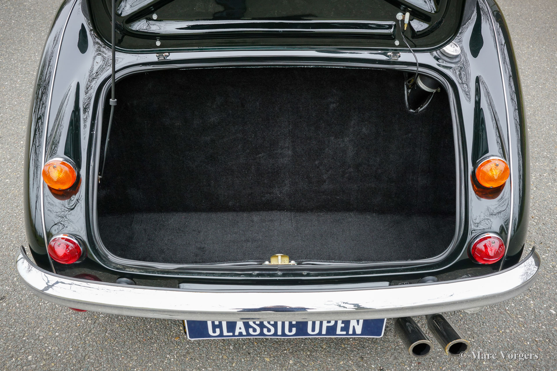 The HMC Mark IV is a hand‑built British roadster inspired by the classic Austin‑Healey 3000 Mk III (BJ8). It features a modern tubular chassis and contemporary drivetrain while retaining the unmistakable shape and character of the original Big Healey. Power comes from a robust Rover 3.9‑litre V8 engine, giving the car strong performance and a wonderfully charismatic soundtrack. The bodywork is crafted from glass‑fibre and Kevlar‑reinforced plastics, with ‘force‑cured’ composite outer panels that offer both lightness and durability. Impact‑absorbing structures are incorporated into the bumpers, door pillars, sills, and bulkhead. Inside, the Mark IV combines traditional craftsmanship with improved ergonomics and comfort. Only 170 examples were built to bespoke order, meaning every car is unique and exclusivity is guaranteed.