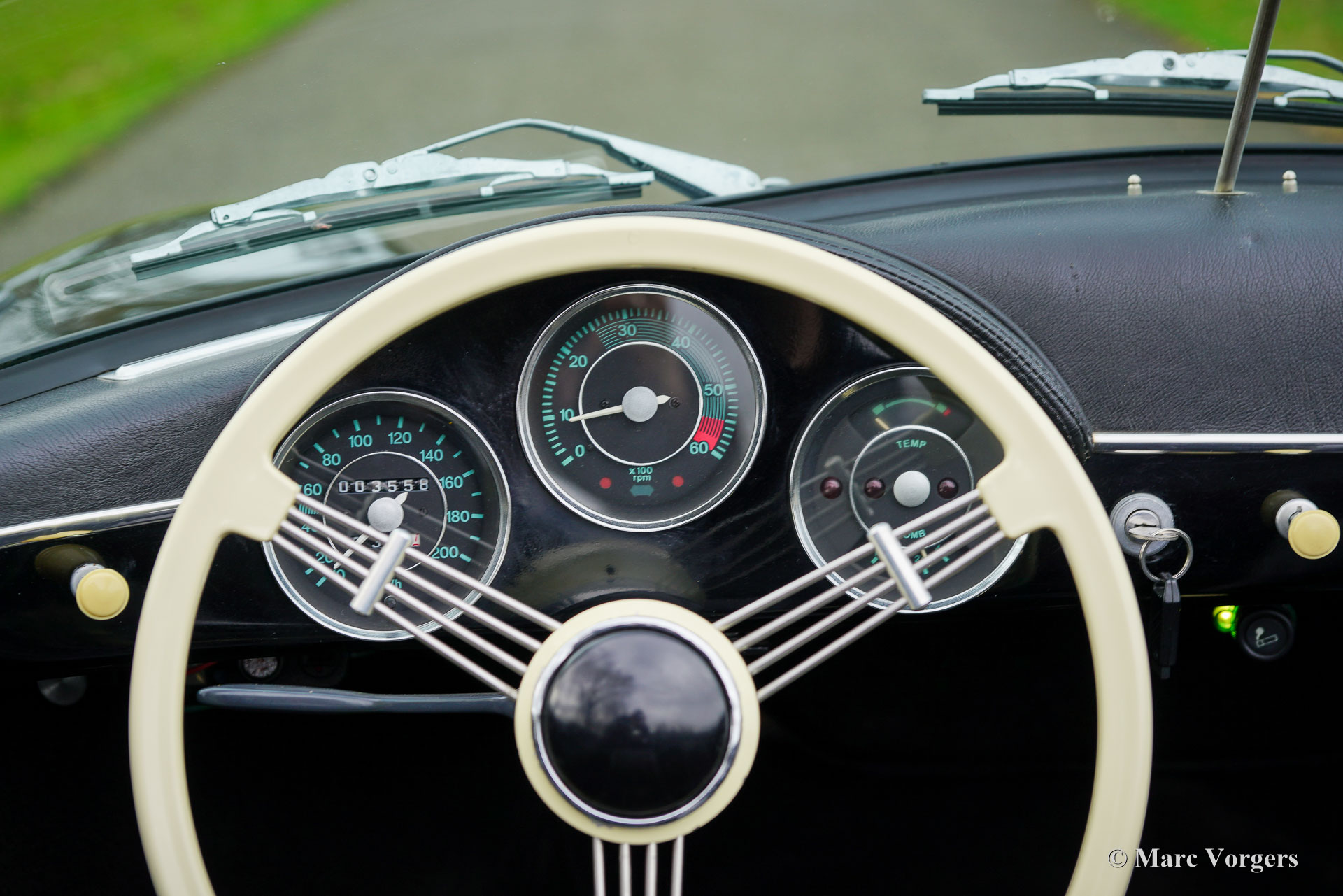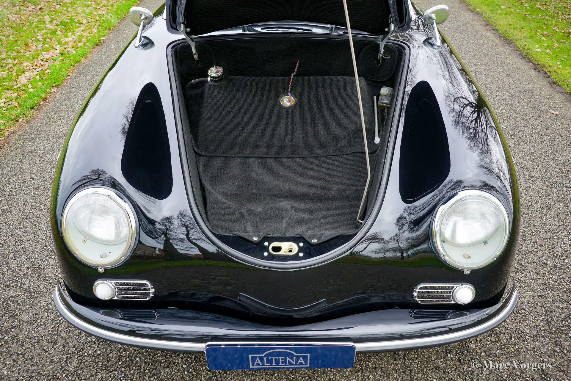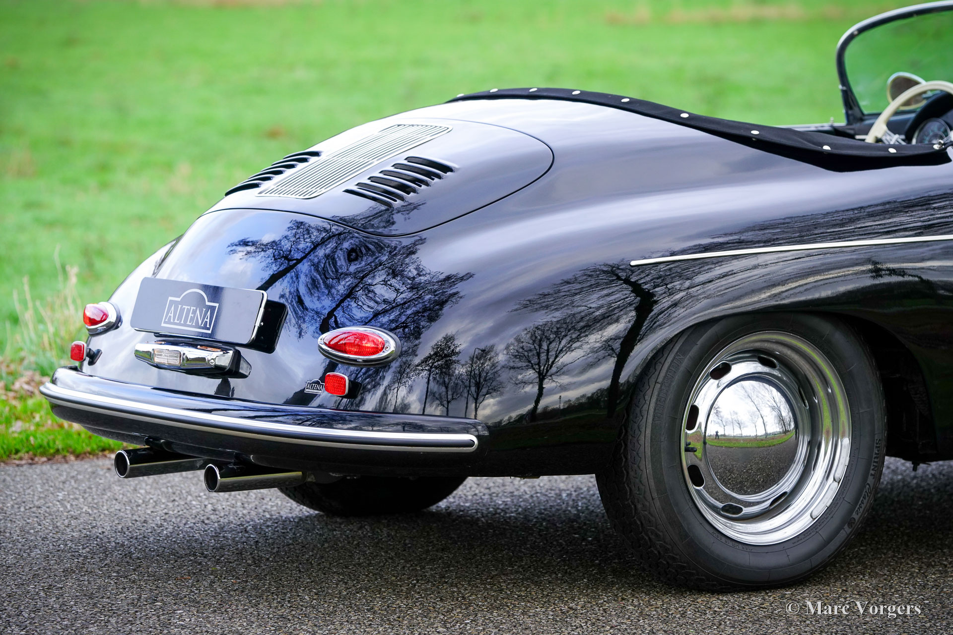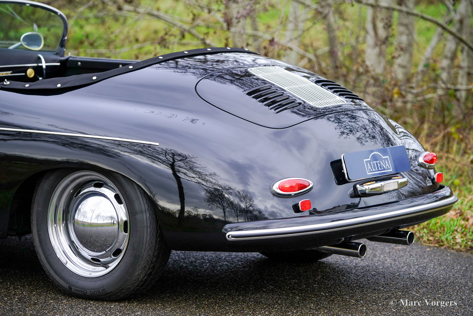 356 Speedster ‘recreation’, year 1965. Finished in ‘triple black’ with black bodywork, a black interior, and a black soft top this gorgeous 356 Speedster recreation looks stunning! This wonderful 356 Speedster recreation was built on a shortened 1965 VW Beetle chassis. The bodywork of this recreation was sculpted to exactly match the original 356 A Speedster (with the curved windscreen) produced by Porsche between 1955 and 1959 and is made from GRP instead of metal. All the recreated exterior and interior details match the looks of the original. The dashboard, the gauges, the steering wheel, the shift sick, door handles, logos and badges (removed in the photos) front- and rear lamps, wheels and wheel covers all match the original. The plush floor mats are a later addition, but they add a comfy touch to this spartan sport car! The air-cooled VW four-cylinder boxer engine delivers a spirited performance and produces an impressive soundtrack. This 356 Speedster replica is in a wonderful and very good condition; the car shows only slight signs of previous use. The car comes with black mohair weather equipment (soft-top, tonneau cover and side screens) and is road registered in the Netherlands. Only about 4144 (2910 A-models) original Porsche 356 Speedsters were built by Porsche, these cars are rare, very much sought after, and therefore very expensive. A good recreation is quite affordable and can be the ideal substitute for many to enjoy the beauty, style and very special driving experience of a 356 Speedster. This is a gorgeous example which can from the outside only be distinguished from an original by a specialist.