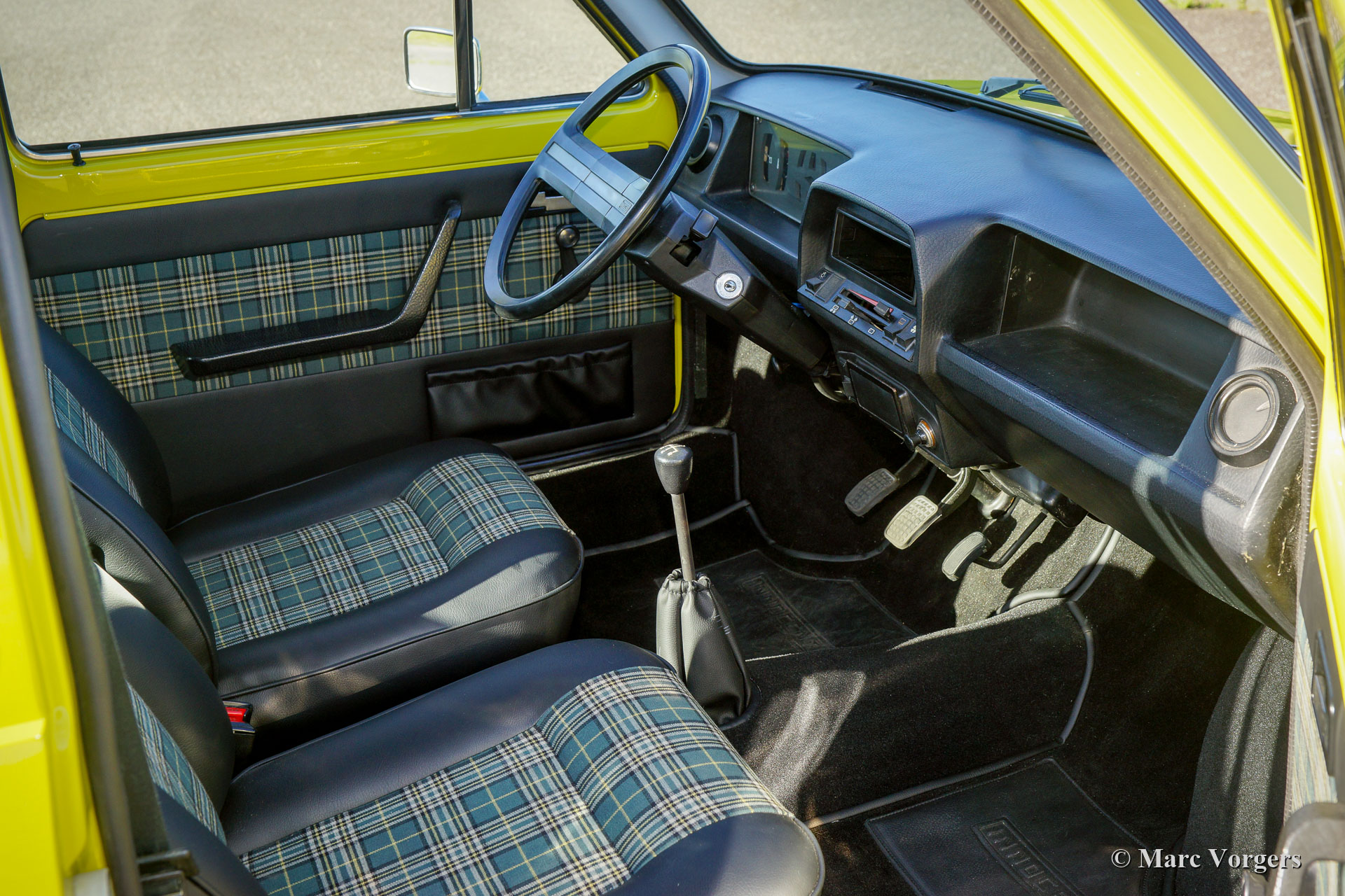 Innocenti 90L, year 1981. Colour yellow (special paint with a shade of olive green) combined with a black interior. The seat centres are trimmed with grey / green / yellow ‘tartan’ fabric which combines beautifully with the exterior paint. The Innocenti Mini was designed by Bertone and the car was introduced in 1974. Earlier Innocenti built an Italian version of the British ‘classic’ Mini. The new Bertone design used all the mechanical parts of the British Mini but the exterior and the interior were 100% modern and Italian! The earliest models showed very pure lines and wonderful slim chrome bumpers. This magnificently restored example was imported from Spain in the year 2017. In the Netherland the car extensively restored to perfection! The body was restored from the bare metal and given a top-class paint job. The interior was given all new upholstery, professionally made by hand. The exterior and the interior colours were chosen by the owner, a wonderful colour scheme! The mechanicals were fully overhauled, and the 998 cc four-cylinder engine was replaced by a 1275 Cooper engine! Many of the very rare plastic interior parts were renewed.