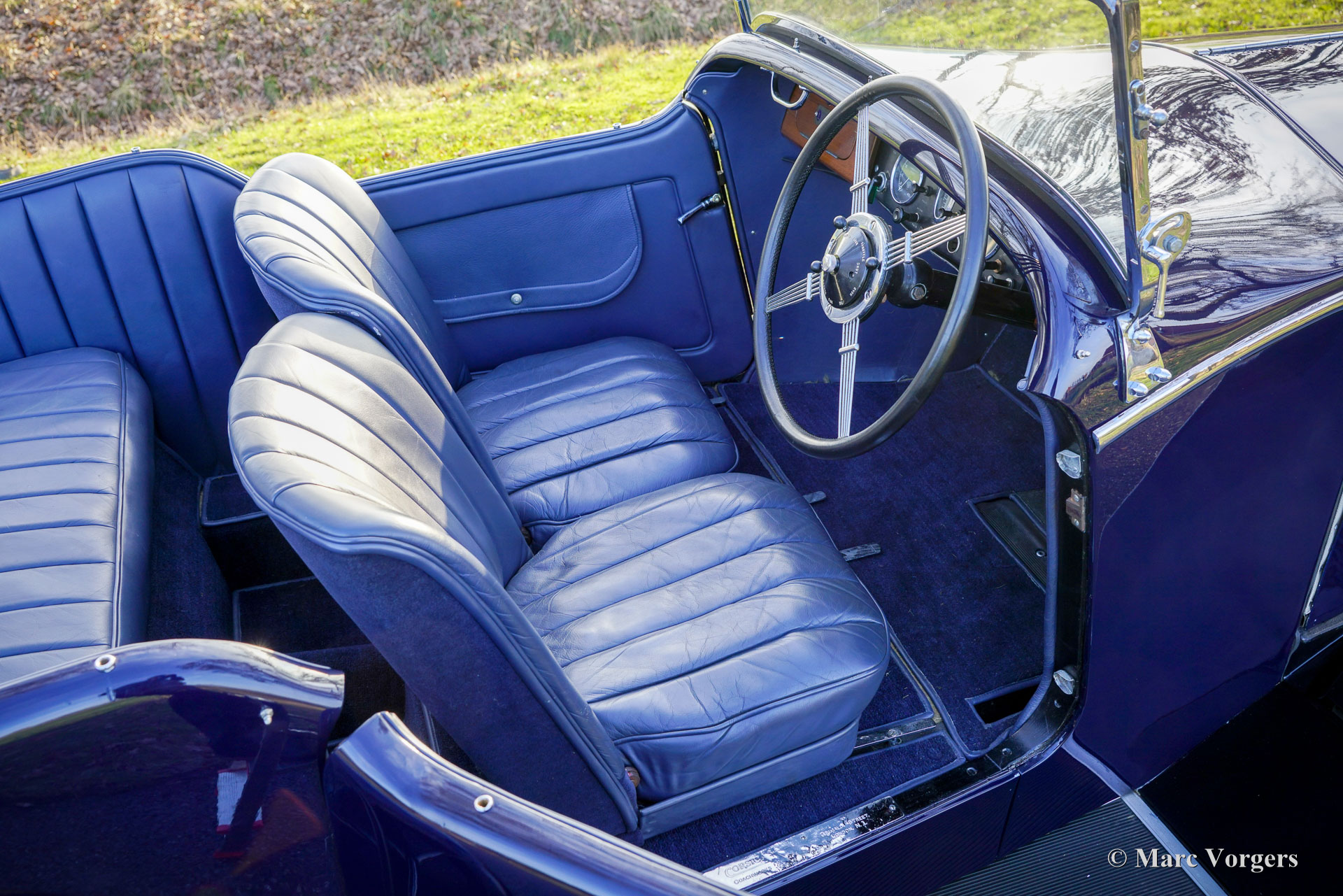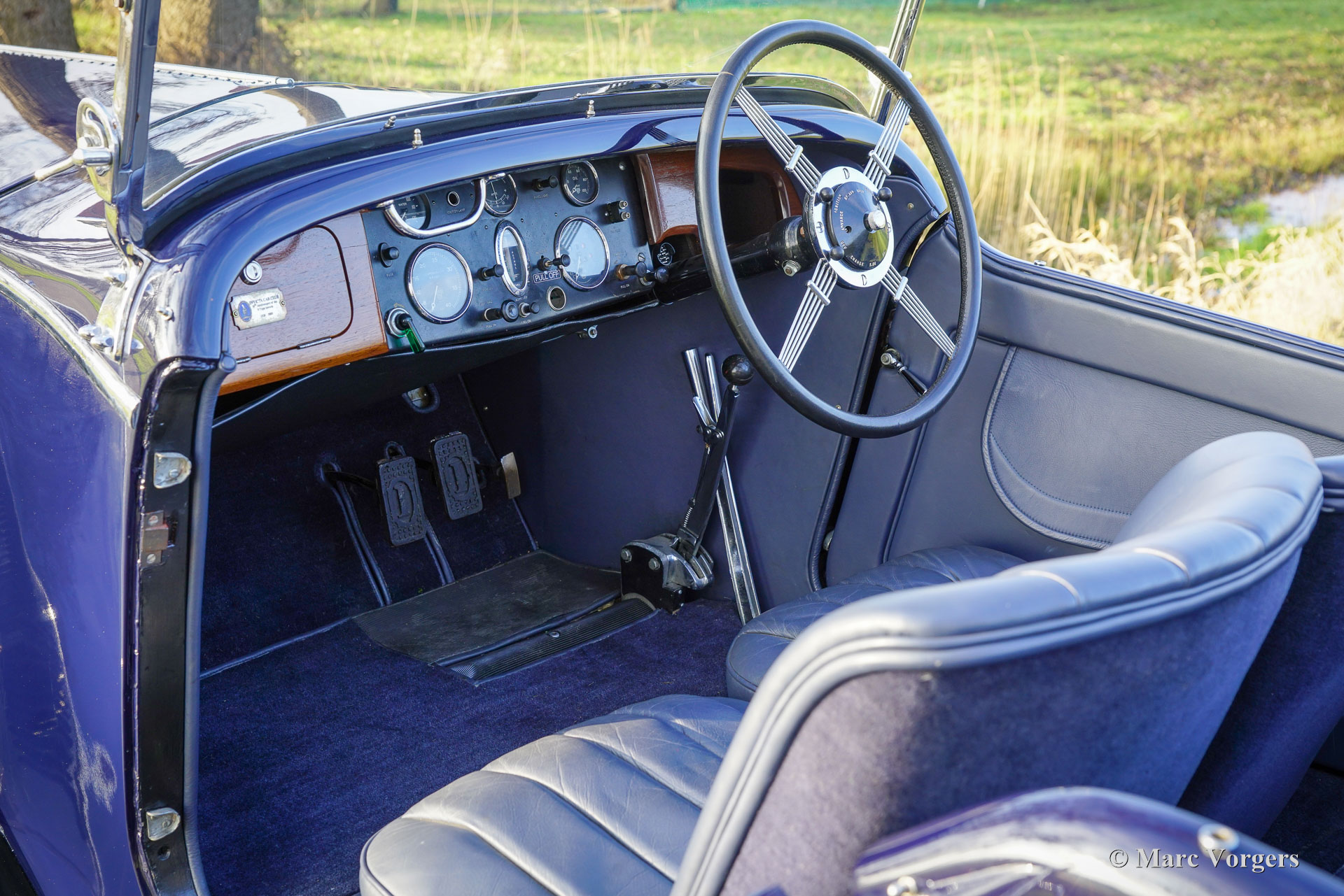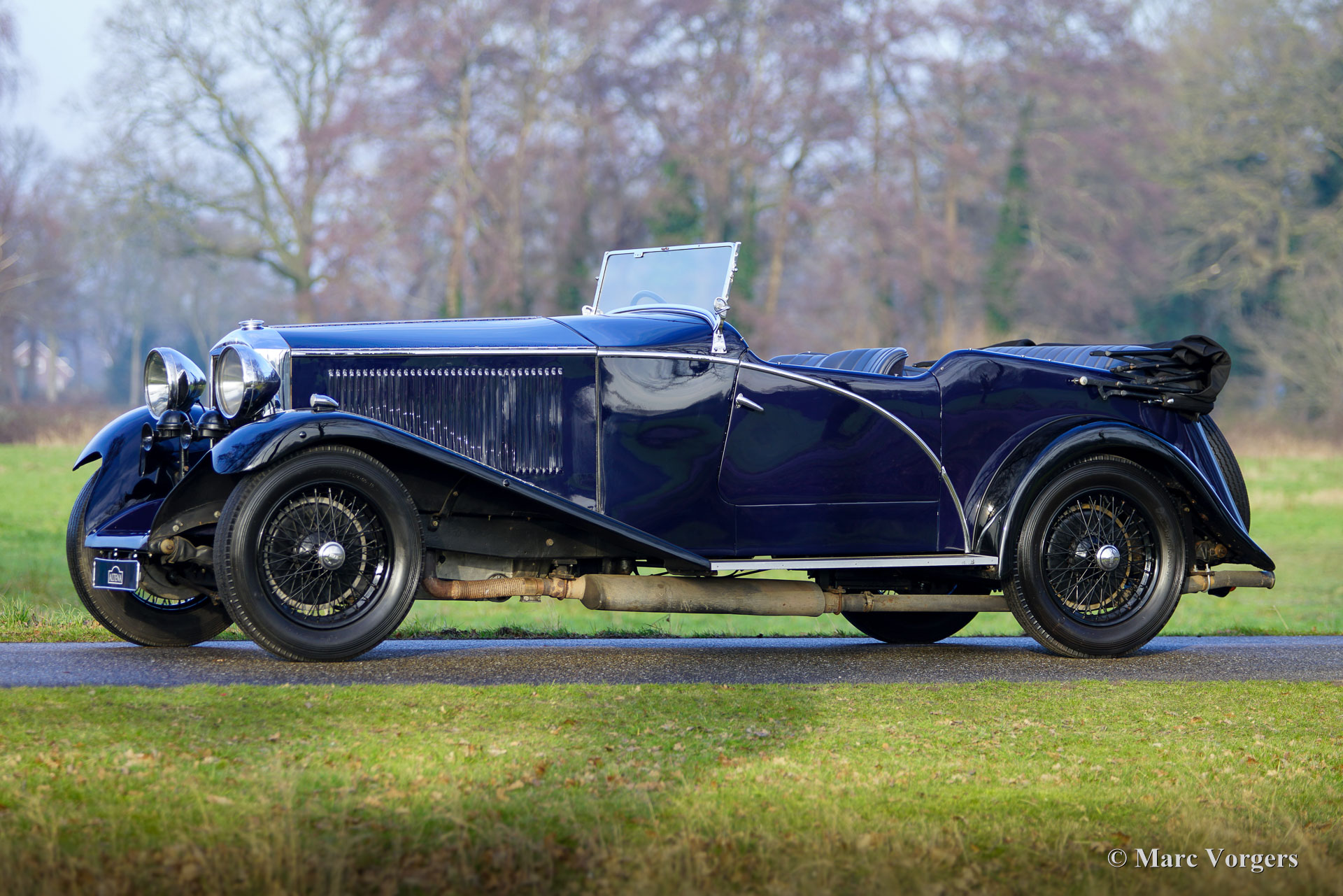 Invicta 4½‑Litre (series A), year 1931 (first registration 2 January 1931, year of built is 1930). Chassis (VIN) number A204, engine number 7918. Exterior colour Oxford blue combined with a black chassis and black wire wheels. Blue leather interior trimmed with blue carpet and a black mohair hood. In the 1920s Invicta gained a reputation for performance and handling. With the introduction of the 4½‑Litre model a legend was born. This very expensive top model was known as a fast-sporting model with exceptional acceleration. The Invicta 4½‑Litre was produced in very limited numbers, and surviving factory and club records indicate that approximately 50 cars were built in total. Production took place between 1930 and 1933, with the model offered in several specifications, including the Low Chassis and the later S‑Type. Bodies were supplied by a range of high‑quality coachbuilders such as Vanden Plas, Corsica, Lancefield and others, which contributes to some variation in reported figures. This extremely low output, combined with the model’s advanced engineering and competition pedigree, explains the Invicta 4½‑Litre’s reputation as one of the rarest and most desirable British sporting cars of the pre‑war period. The presented 4½‑Litre, chassis A204, still features its original four-seater open tourer bodywork by Corsica of London. The automobile was restored in the past and still retains its fantastic original details. Under the bonnet where the powerful 110 bhp Meadows straight six engine is housed, you will also find the original central lubrication system and an additional cooling fan. The four-speed gearbox is mated to a Tim Payne overdrive. The dashboard shows an array of wonder original gauges (including a very special petrol gauge) and one gauge of a later model. The interior was newly upholstered in the past and it looks very nice. This rare A-series Invicta 4½‑Litre comes from a collection. The automobile runs and drives very well, and it comes with an extensive history file. This Invicta 4½‑Litre Corsica Tourer has all the qualities you could wish for: performance, style, and rarity.