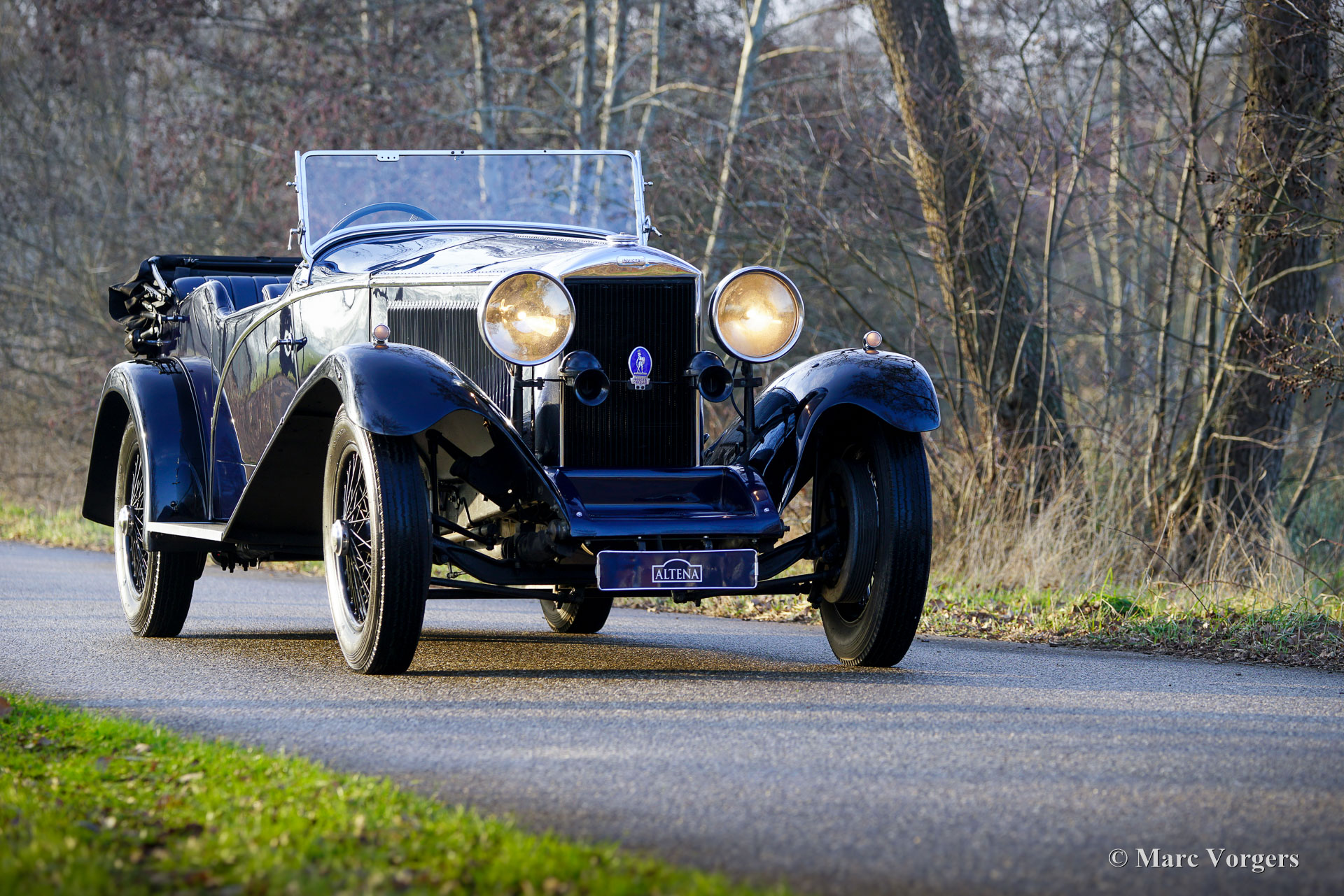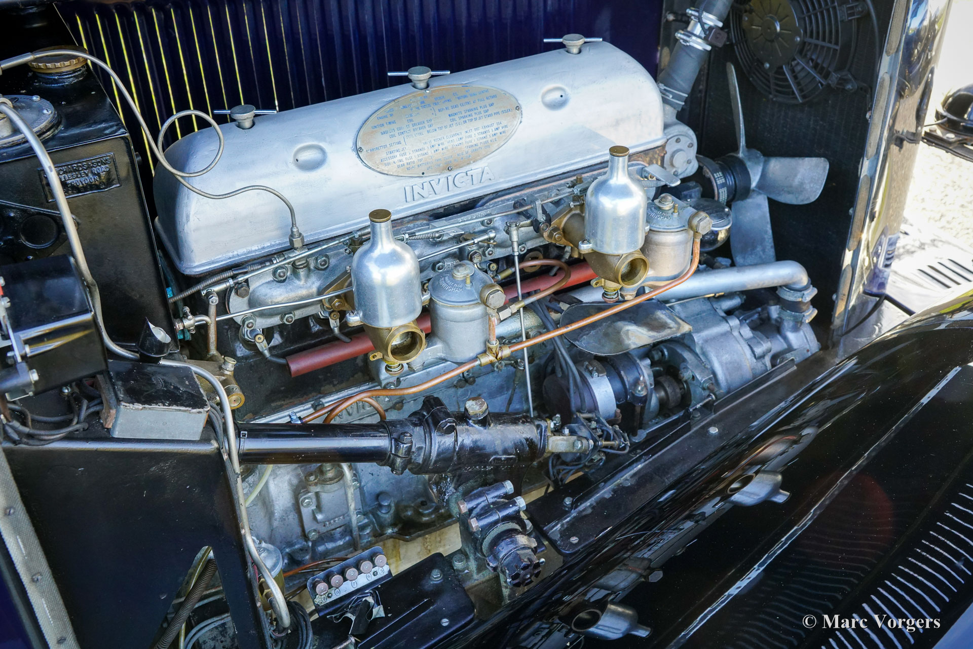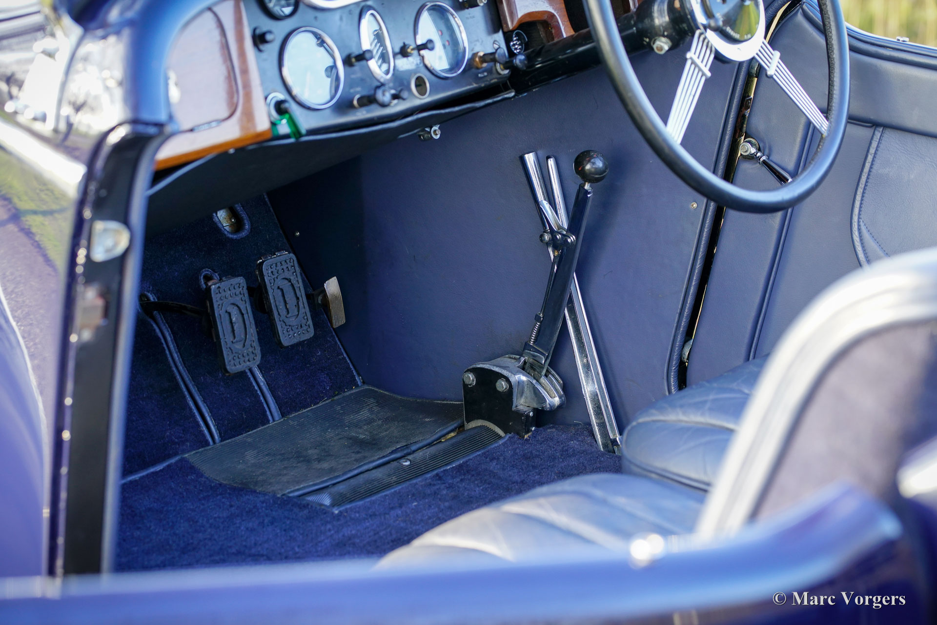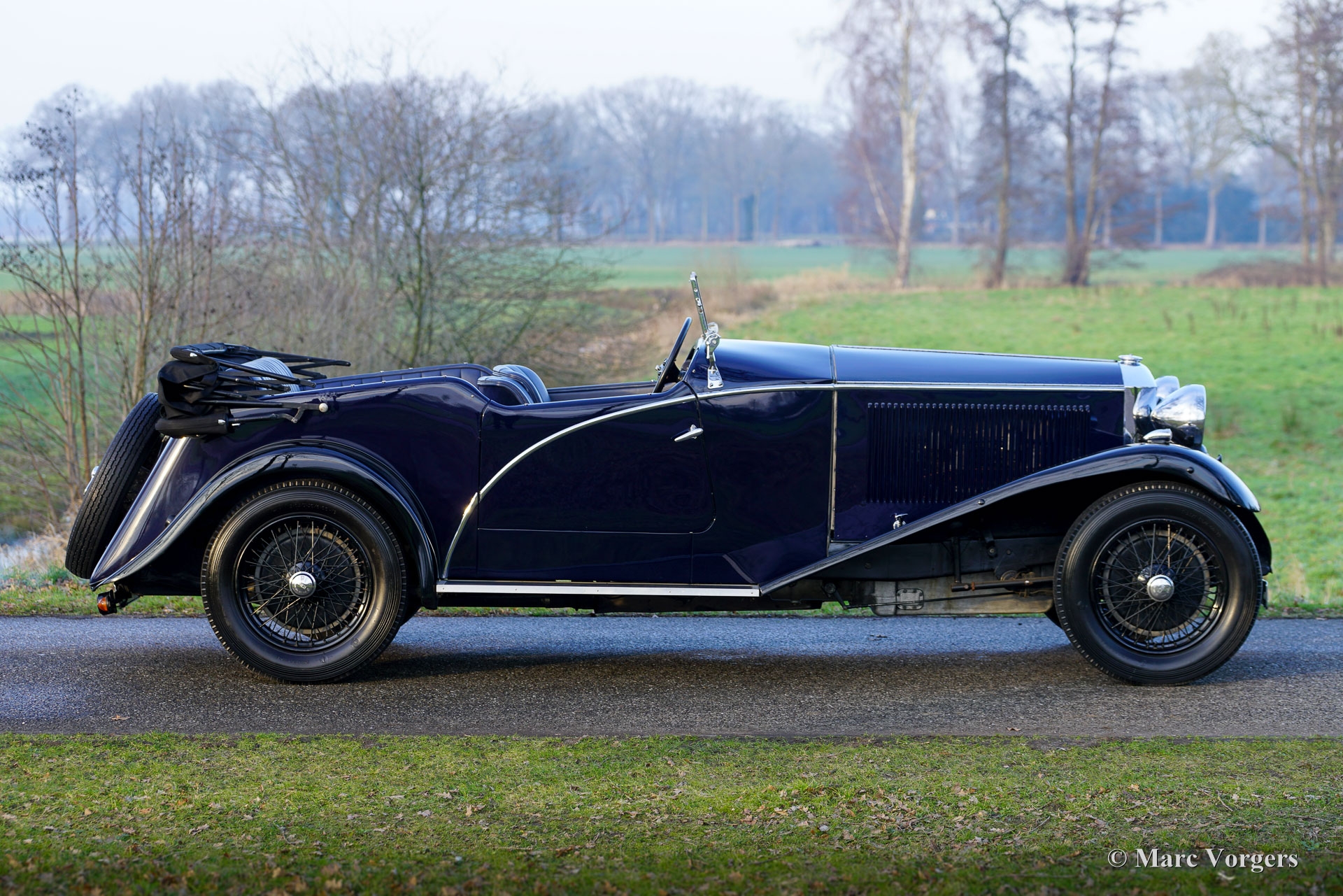 Invicta 4½‑Litre (series A), year 1931 (first registration 2 January 1931, year of built is 1930). Chassis (VIN) number A204, engine number 7918. Exterior colour Oxford blue combined with a black chassis and black wire wheels. Blue leather interior trimmed with blue carpet and a black mohair hood. In the 1920s Invicta gained a reputation for performance and handling. With the introduction of the 4½‑Litre model a legend was born. This very expensive top model was known as a fast-sporting model with exceptional acceleration. The Invicta 4½‑Litre was produced in very limited numbers, and surviving factory and club records indicate that approximately 50 cars were built in total. Production took place between 1930 and 1933, with the model offered in several specifications, including the Low Chassis and the later S‑Type. Bodies were supplied by a range of high‑quality coachbuilders such as Vanden Plas, Corsica, Lancefield and others, which contributes to some variation in reported figures. This extremely low output, combined with the model’s advanced engineering and competition pedigree, explains the Invicta 4½‑Litre’s reputation as one of the rarest and most desirable British sporting cars of the pre‑war period. The presented 4½‑Litre, chassis A204, still features its original four-seater open tourer bodywork by Corsica of London. The automobile was restored in the past and still retains its fantastic original details. Under the bonnet where the powerful 110 bhp Meadows straight six engine is housed, you will also find the original central lubrication system and an additional cooling fan. The four-speed gearbox is mated to a Tim Payne overdrive. The dashboard shows an array of wonder original gauges (including a very special petrol gauge) and one gauge of a later model. The interior was newly upholstered in the past and it looks very nice. This rare A-series Invicta 4½‑Litre comes from a collection. The automobile runs and drives very well, and it comes with an extensive history file. This Invicta 4½‑Litre Corsica Tourer has all the qualities you could wish for: performance, style, and rarity.