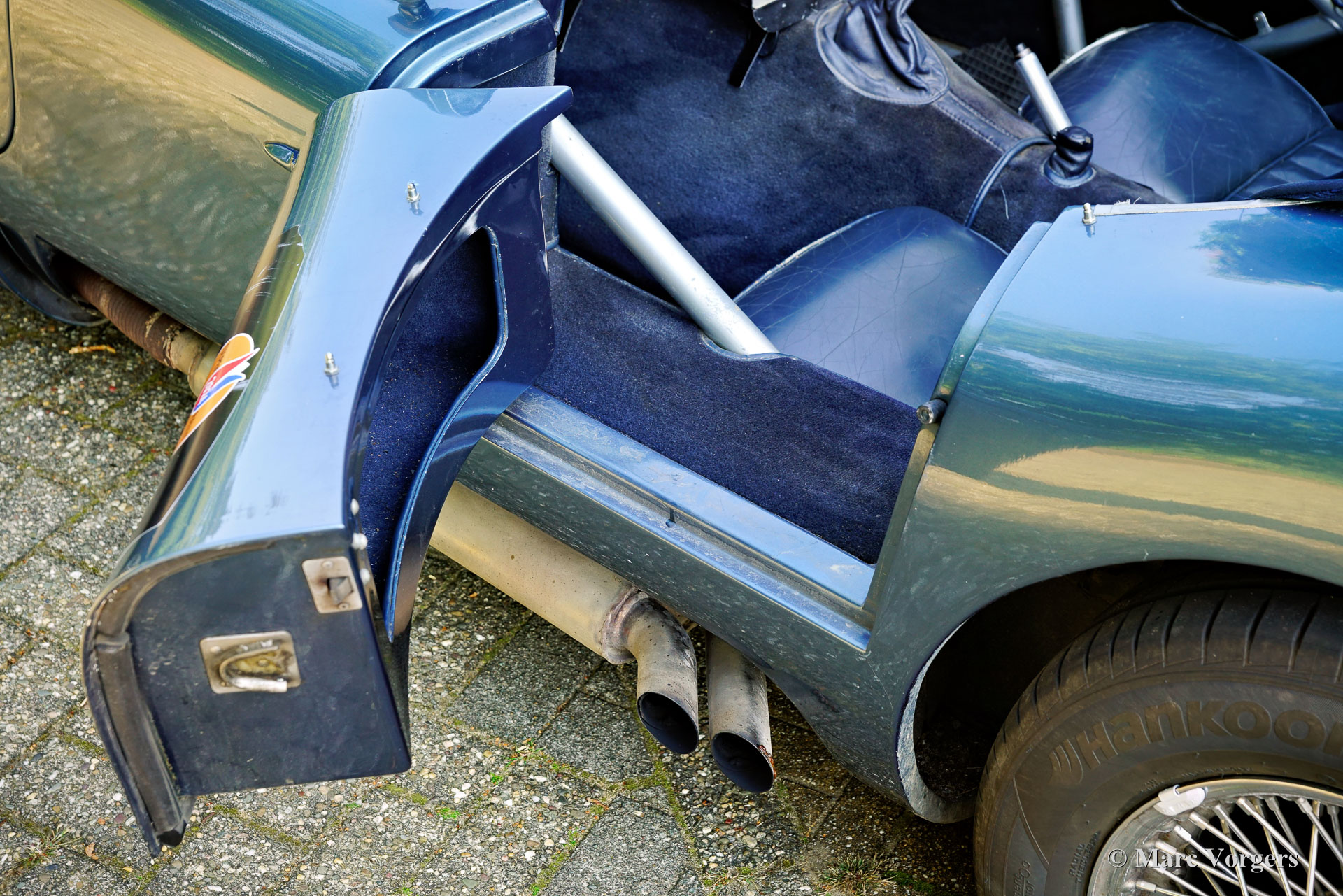 Jaguar C-type replica, year 1970. Colour blue metallic combined with a dark blue leather interior. This spectacular Jaguar C-type replica is built on a steel spaceframe and clad with a Glass fibre Reinforced resin bodywork (GRP). The mechanical parts like the engine, gearbox, rear axle, gauges come from a 1970 XJ-6 4.2 Litre donor car. The 4.2 Litre engine was tuned and fitted with three twin choke Weber carburettors and a ‘free flow’ exhaust system. The Jaguar XJ 4.2 Litre donor car was dismantled in the late 1990s. The C-type replica was registered for road use on 1 May 1997. On 20 March 2014 this impressively driving sportscar was purchased by the current owner. Over the last ten years the C-type has participated in many historic (touring) and regularity rally events all over Europe. Before each event the car was extensively serviced checked. This Jaguar C-type replica is technically and mechanically in a good condition, paintwork and the interior many traces of use and everything looks quite rough. The car is being sold ‘as is’ to be driven and enjoyed without worries for more scratches. A new owner can choose to take the car apart the car for extensive cleaning and a repaint. We can do that for you at cost if you wish, the basic structure is completely sound! This Jaguar C-type replica drives, steers and performs impressively! The price reflects the rough optical condition.