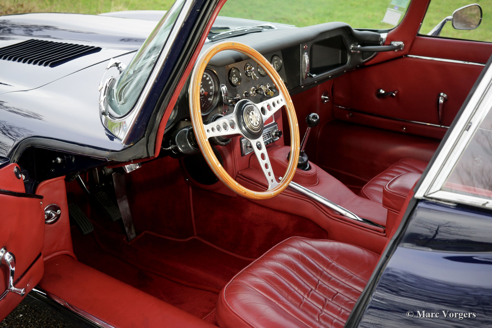 Jaguar E-type 4.2 Litre Series 1, 1965. Colour dark blue (Westminster Blue) combined with a red leather interior (Mulberry) and red carpet. This fabulous Jaguar E-type Fixed Head Coupé (FHC) was sold new in New York (US). In 1988 the automobile was imported to Germany where it was cherished by one owner until 2011, when it was sold to a French collector. In the years 2008-2009 the car was extensively restored to perfection by a German Jaguar specialist. The restoration is fully documented with a photo report. Since the restoration the Jaguar was serviced and maintained perfectly; the automobile is in a superb condition! This Jaguar E-type FHC comes from the highly sought after first series fitted with the 4.2 Litre straight six engine. The E-type shows all the original details, and the car drives perfectly! It is always a delight to drive a Jaguar E-type FHC, the view over the long bonnet is impressive and incomparable. This Jaguar is fitted with wide chrome wire wheels shod with Pirelli 205/70 15-inch tyres, a TVD exhaust system, a wonderful original MotoLita steering wheel with a wood rim, and a classic Becker Europa auto radio. This Jaguar E-type is a superb specimen for the discerning Jaguar collector and enthusiast. The car can be imported and registered in any country worldwide.