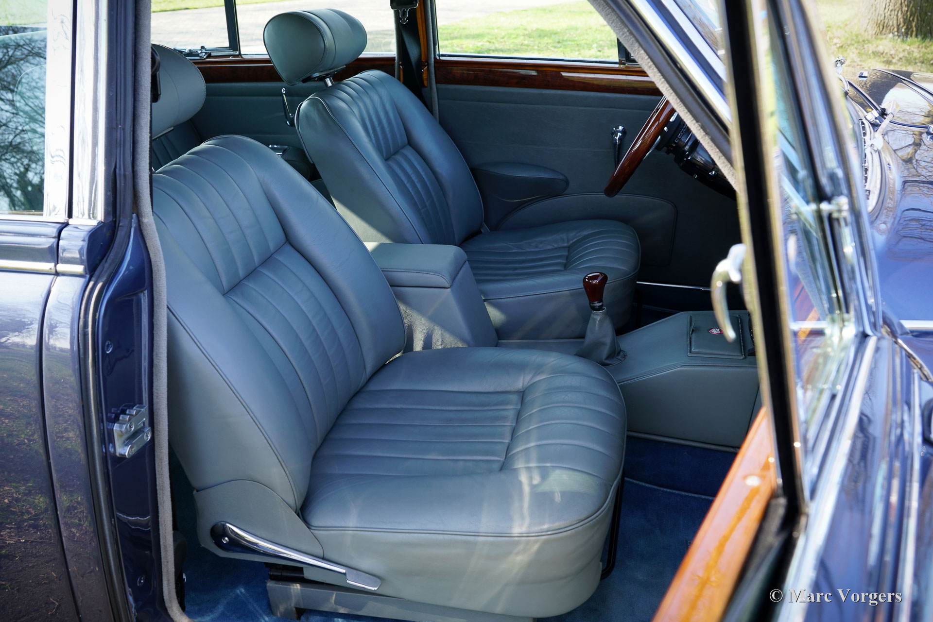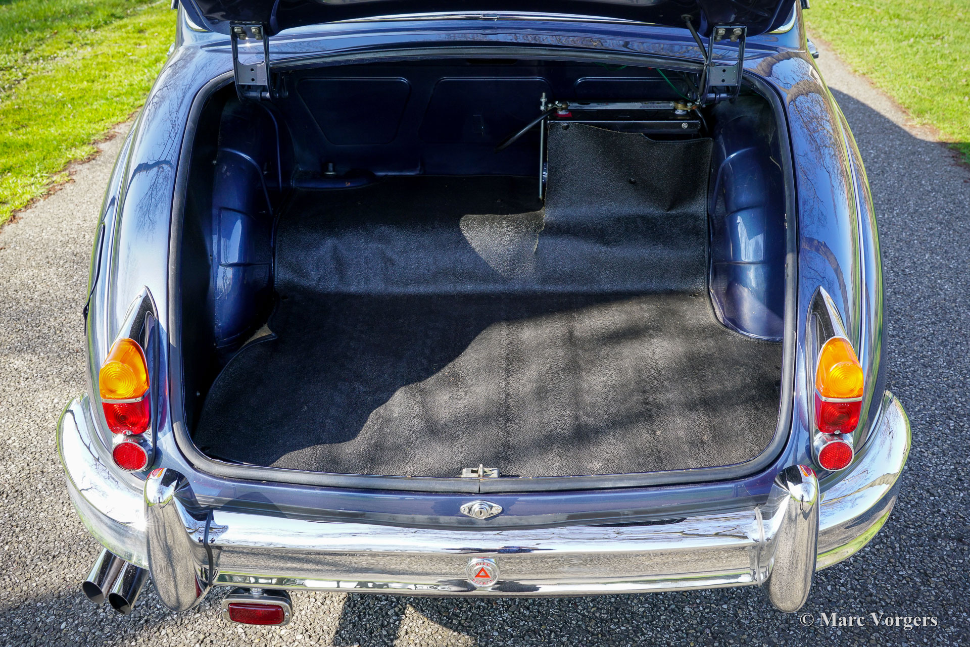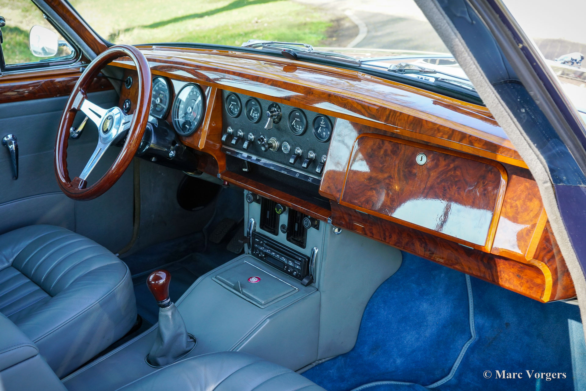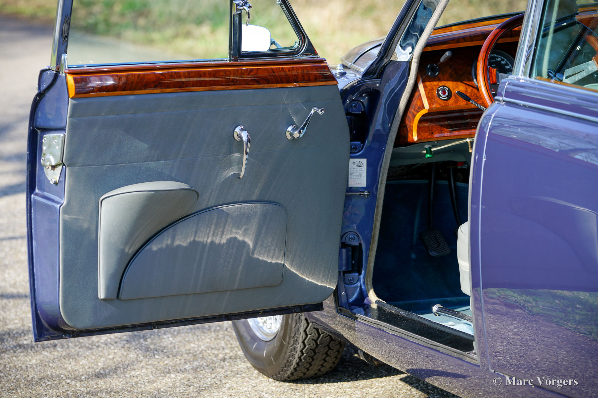 Jaguar Mk II (Mk 2) 3.8 Litre, year 1963. Chassis (VIN) number P222387BW, engine number LC5929-9. The exterior of this beautiful Jaguar Mk II is finished in Opalescent Blue (Metallic Blue) combined with a grey leather interior finished with blue carpet. This stunning example was fully restored a few years ago and underwent significant technical improvements. This Mk II is a classic car offering improved comfort, improved safety, and improved user-friendliness. This Jaguar is in excellent condition, and the driving experience is fantastic! The bodywork has been restored down to the bare metal and was extensively treated against rust. During the rebuild, various modernizations were implemented, making the car noticeably better to drive than a standard Mk II. The 3.8-liter six-cylinder engine has been completely overhauled and was lightly tuned for extra power, featuring an oil cooler, electric fan, and larger radiator for improved cooling. The engine is coupled to a fully synchronized five-speed gearbox, which enhances comfort and usability in today's traffic. The chassis features modified springs, adjustable shock absorbers, improved stabilizers, and a rear axle with a modified final drive ratio. The steering features power steering derived from a Jaguar XJS. The brakes have been upgraded all around with XJ6 discs and callipers and a more powerful brake servo. The interior has been completely renewed while retaining its classic appearance. Leather, wood trim, and carpet have been renewed and restored, extra insulation reduces road noise, and the fitted XJS seats offer greater comfort. Modern features such as cruise control, central locking, tinted glass, and halogen lighting are discreetly integrated. A beautiful Mota-Lita steering wheel with a wood rim provides the finishing touch to the stunning interior. The car has been well maintained and driven regularly since the restoration, making it ready for immediate use. Thanks to the elegant integration of the improvements, the distinctive atmosphere of a British 1960s saloon is preserved. The Jaguar Mk II with the 3.8-liter engine and manual gearbox was the top model of the series. This upgraded example adds a substantial extra layer of performance, comfort, safety, and finesse. This is an ideal Jaguar Mk II for Jaguar enthusiasts who want to regularly drive a classic in modern traffic and do not want to make any compromises.