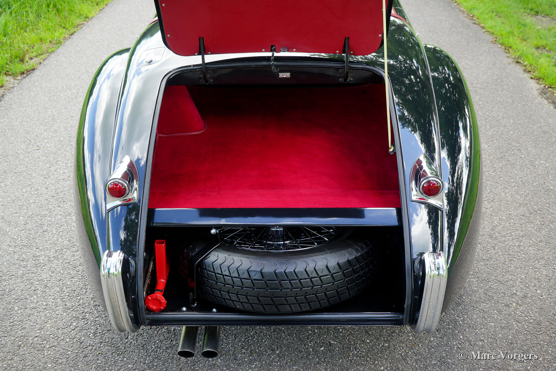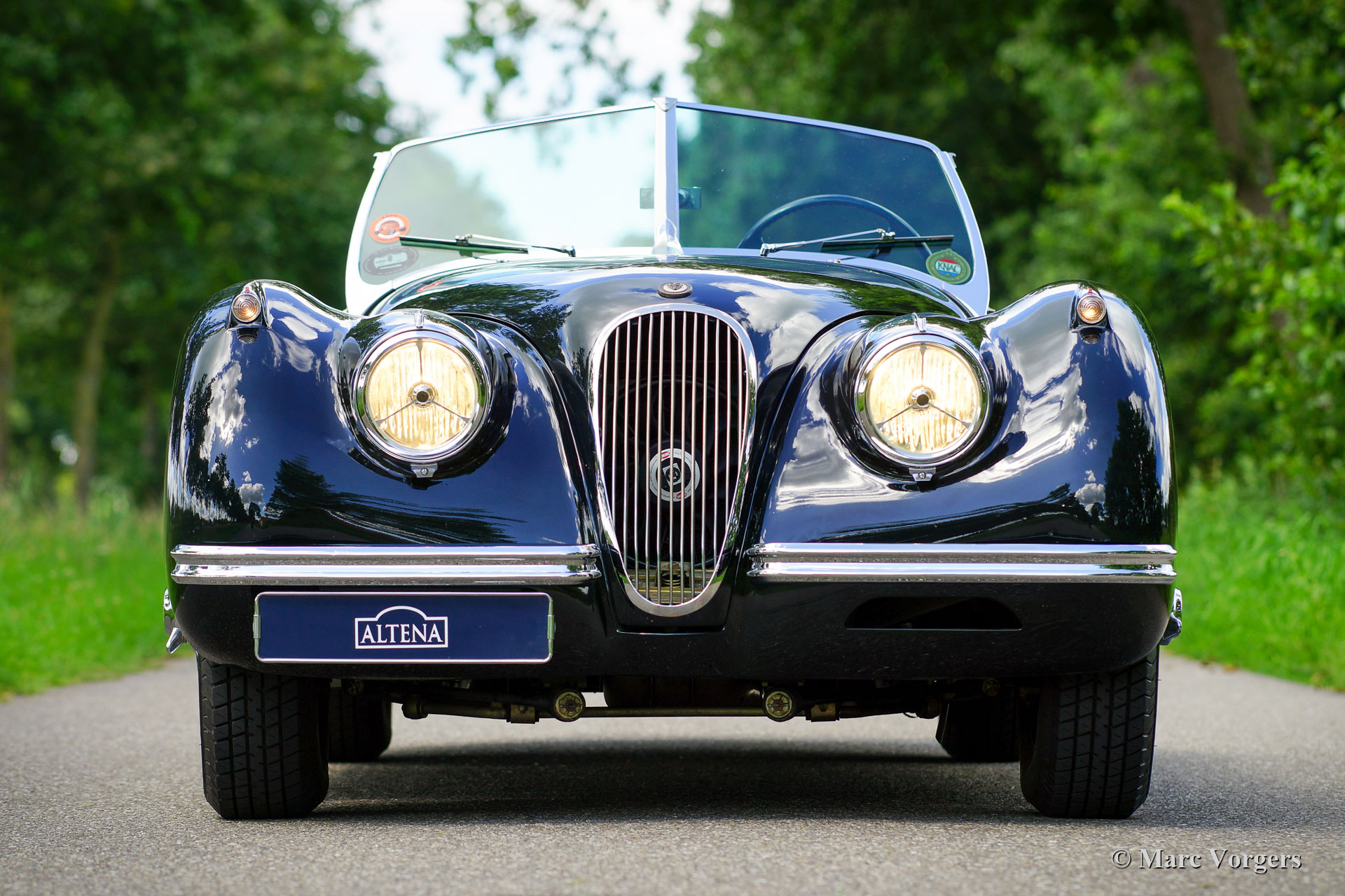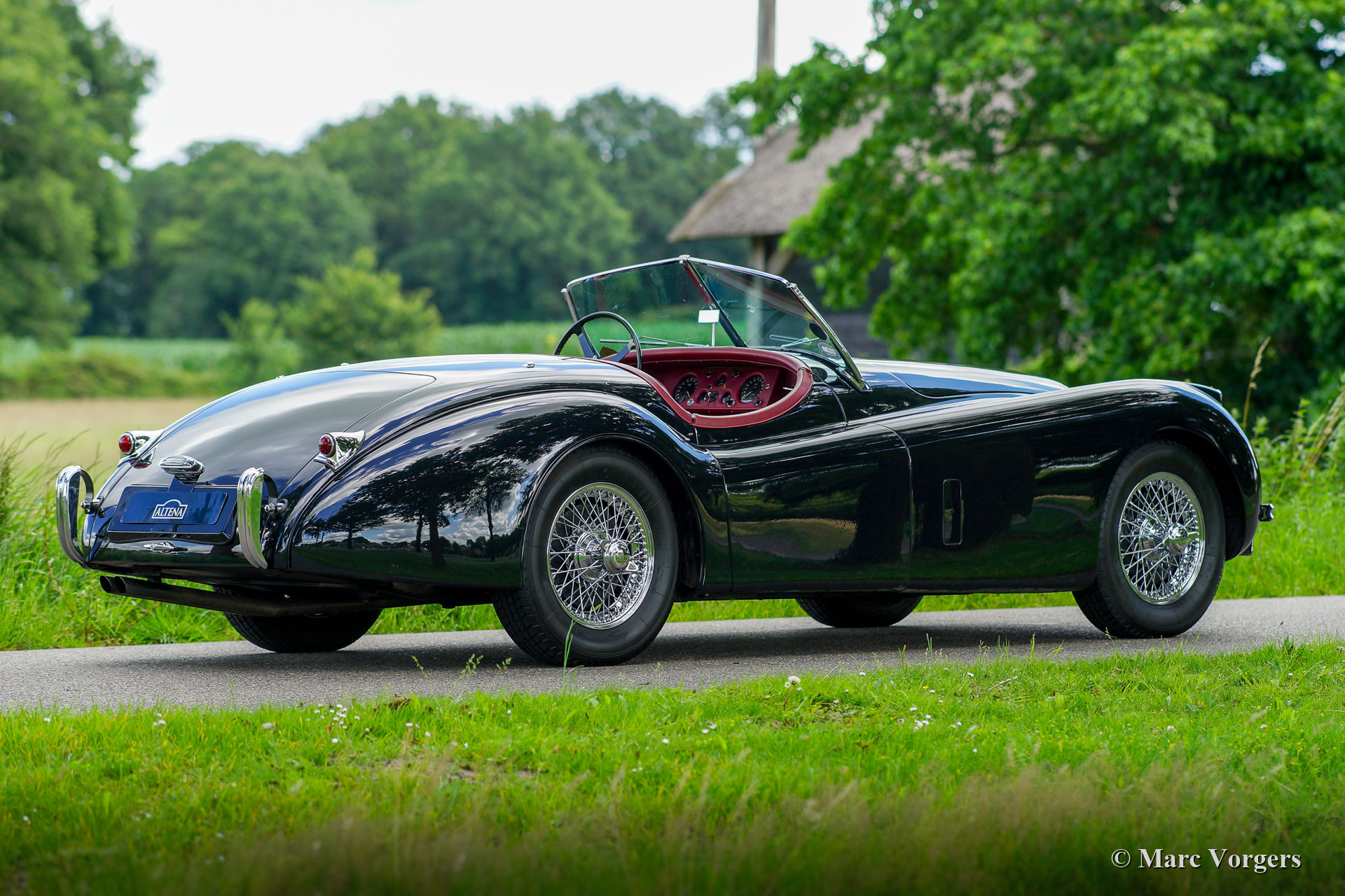 Jaguar XK 120 SE OTS, year 1954. Matching numbers, a Heritage document to confirm this is present. This is an original SE (Special Equipment) version! Colour black combined with a red leather interior and red carpet. Black mohair soft-top and tonneau cover. This magnificent Jaguar XK 120 was sold new in the USA. In 2010 the car was shipped from Florida to the Netherlands. In the USA the car featured registration plates with XK 120 on them! After the car had arrived in the Netherlands a full body-off restoration was commissioned. On photos of the car before the restoration one can see that the restoration started from a solid base. In the years 2010 - 2012 this XK was nut and bolt restored to perfection by a make specialist. The bodywork was restored from the bare metal and it shows a fantastic panel fit. Everything was restored, overhauled and / or renewed. A complete photo report of the restoration is present. After the restoration the car stayed in the care and service of the restoration specialist. All the invoices covering the years 2012 - 2020 are present. From the completion of the restoration the owner has driven the car sparsely. This gorgeous Jaguar XK 120 SE OTS (roadster) is in superb TOP condition and the car drives and handles perfectly! This is a top-class specimen on which costs nor effort were spared to reach perfection. A highly desirable XK 120 for the discerning enthusiast / collector!