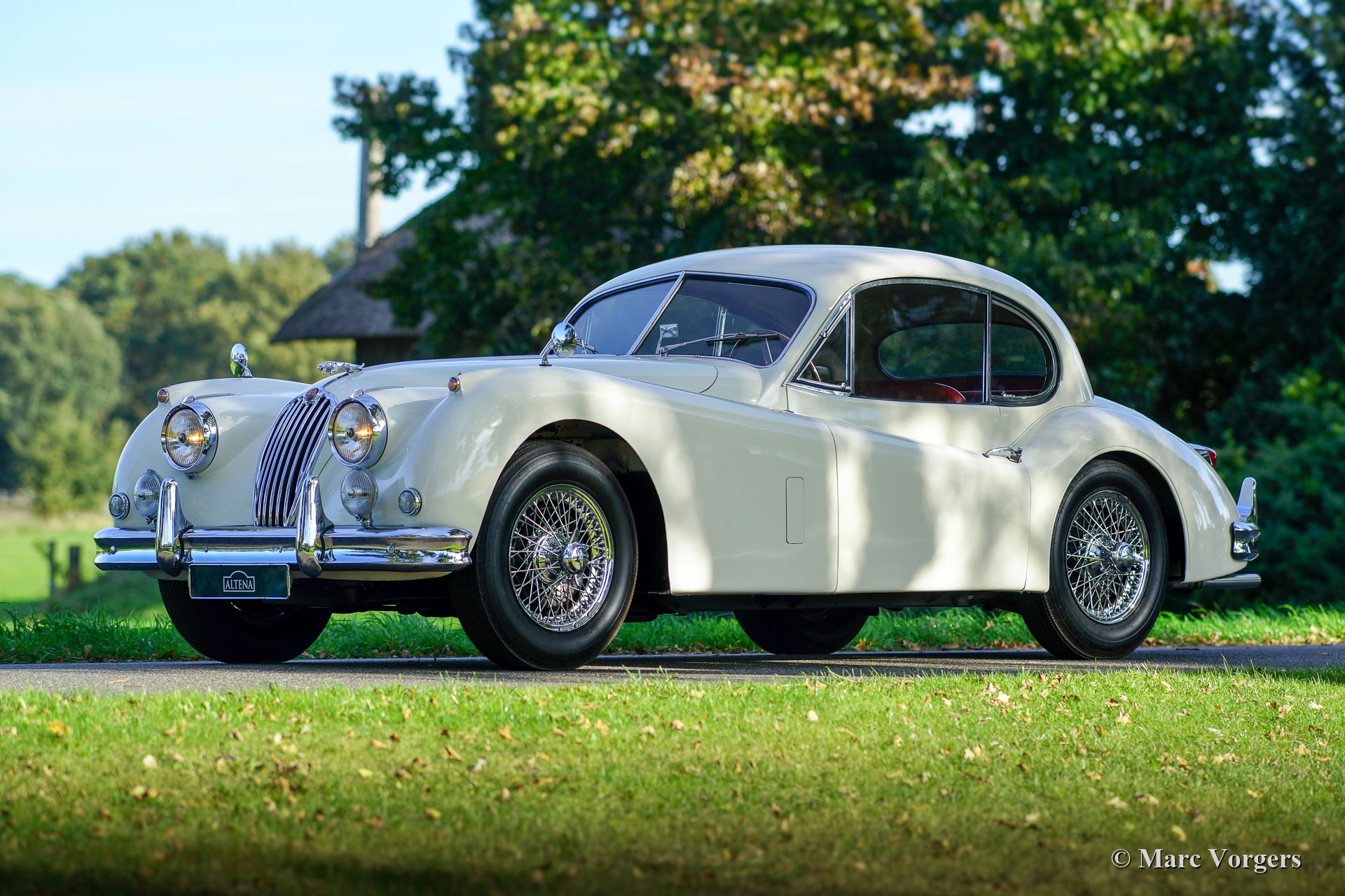 Jaguar XK 140 FHC, year 1957. Chassis number 48158712XX, body number J669X, engine number G9293-X, gearbox number JLE36339XX. Colour Old English White combined with a red leather interior. This gorgeous Jaguar XK 140 FHC (Fixed Head Coupé) was registered in the Netherlands in the year 2000. The Jaguar was extensively restored in the past and the automobile is in excellent condition! Additionally, the car drives delightfully! This Jaguar XK 140 FHC shows all the original details, in the interior you will find the wonderful wood dashboard and a period correct Moto Lita sports steering wheel with wood rim. Furthermore, the car features period correct Lucas SFT 576 fog-lamps and wire wheels. This is a very original Jaguar XK 140 FHC in excellent condition! The automobile comes with Dutch (EU) documents, the car can be exported / imported globally.