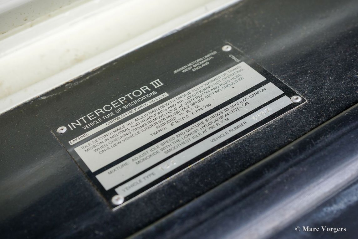 Jensen Interceptor III coupé, year 1972. Vehicle number 8557. First registration 1 January 1973. Exterior colour white combined with a brown leather interior trimmed with light beige carpets. This impressive Jensen Interceptor was imported to the Netherlands in October 2021 by the current owner. Then the odometer read 63122 miles. The car then being in a fair original condition, was brought to classic car and Jensen specialist Schackman in the Netherlands where the car was largely dismantled for restoration. In 2022 the car was taken to Classic Job for a full body restoration, the bad sheet metal was repaired, and the car was given a perfect new paint system in the original colour. The original alloy wheels were restored by Classic Job too. When the bodywork was finished, the car was returned to Schackman to be rebuild again. The windscreen and windows were put back in place, the wiring loom was partly renewed, the dashboard was restored, and several parts were newly chromed. Mechanically and technically, everything was checked, adjusted, and brought up to date. The original leather interior, still being in a very good condition, was retained, the boot was newly upholstered. A total amount of €40.000 was invested to bring the car to the current very good and wonderful condition! The big 7.2 Litre Chrysler engine (288 hp/515 Nm!) runs and sounds perfectly, the 3-speed automatic gearbox shifts very well, and the car drives and sounds impressively! The car was added to the collection and not driven a lot, currently the odometer reads only 63803 miles. The Jensen Interceptor III is a British grand tourer that combines understated style with reliable performance. Designed by Touring of Milan and built in West Bromwich, it features a spacious 2+2 coupé layout and a distinctive wraparound rear window which adds a touch of character. It’s a car that shows British craftsmanship and period charm without seeking attention. A total of 4255 Jensen Interceptor III saloons were built between August 1971 and December 1976. This is a fabulous driver car, and a great addition to any vintage sports car collection. This vehicle is available to view and test drive by prior appointment only.
