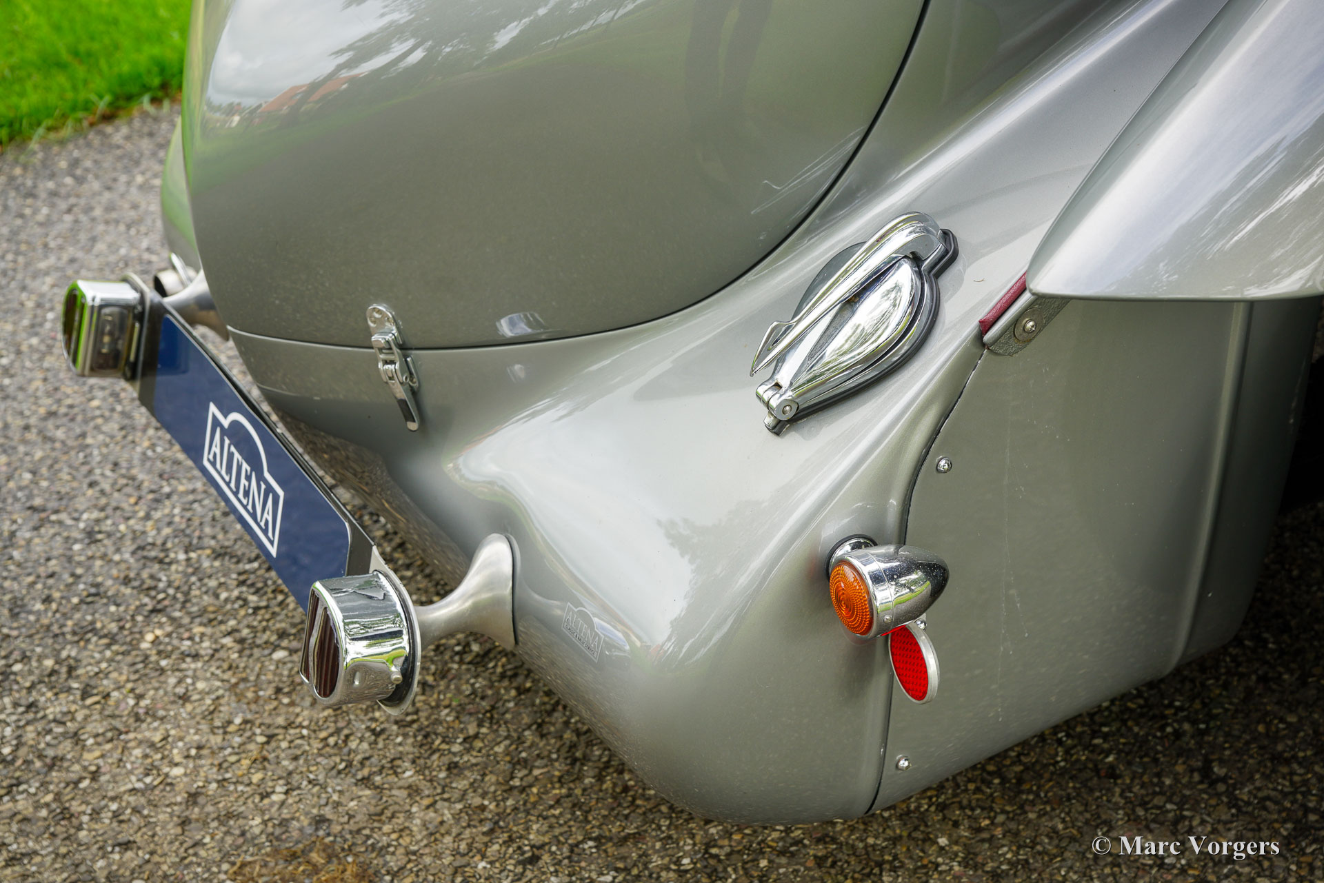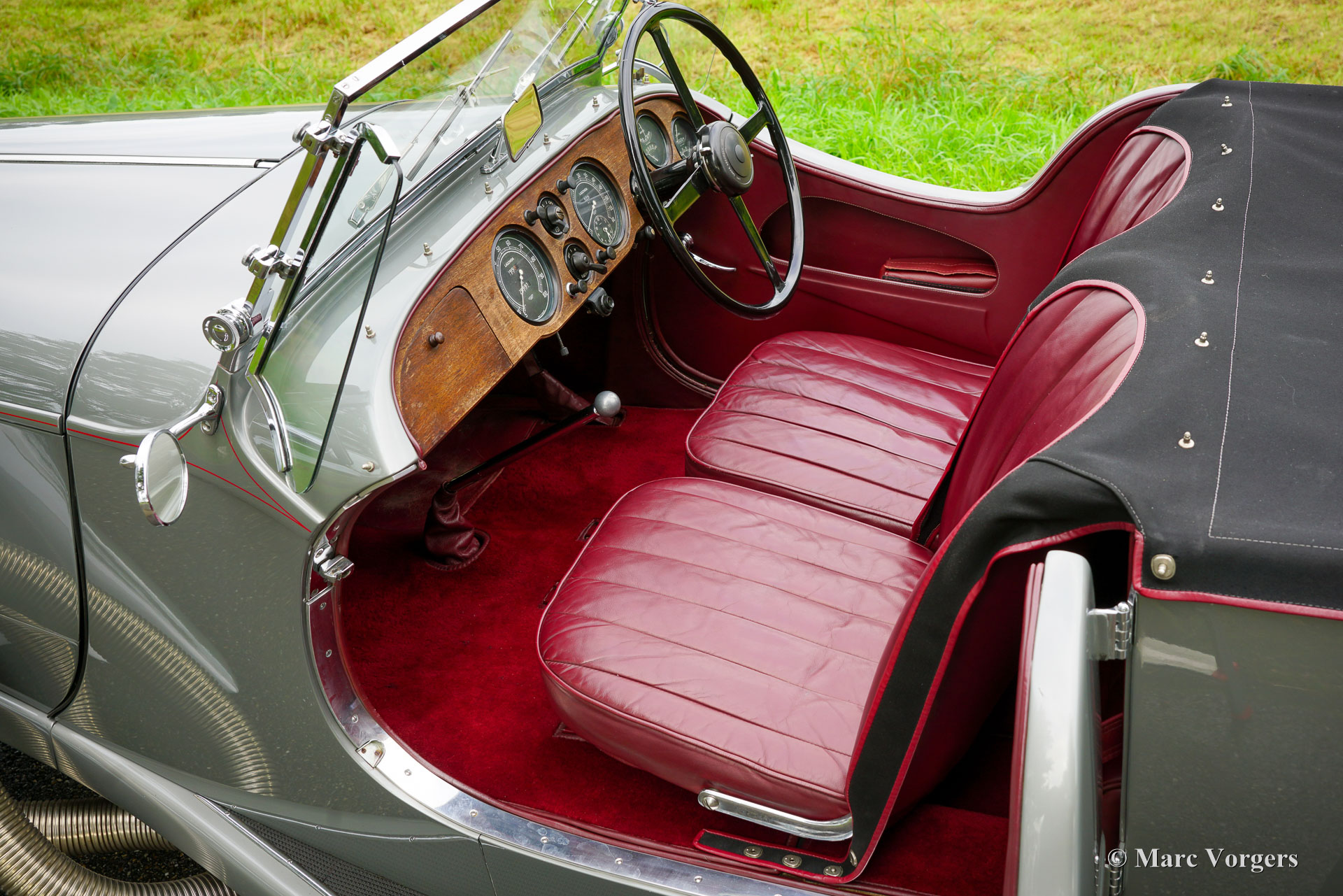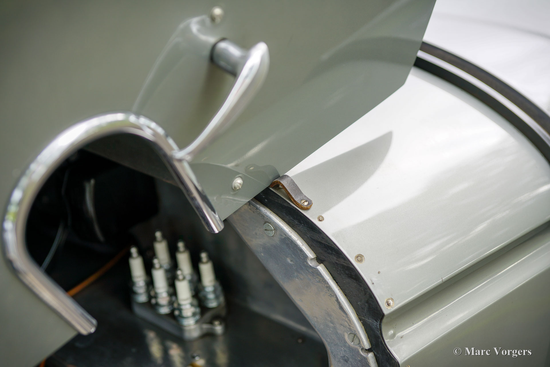 Lagonda LG45 ‘Rapide’ four-seater Tourer, year 1937. Chassis number 12178, engine number M45/160, steering box number 6087/47. Colour grey metallic combined with a dark red leather interior and a black mohair hood and tonneau cover. The Lagonda LG45 is a very rare automobile, only 278 examples were built in the years 1936 – 1937. The engine shows the directly bolted on S.U. carburettors of the last ‘sanction three’ model with integrated cross flow manifold cast into the cylinder head. The car was sold new featuring a saloon ‘De Ville’ bodywork. In 1994 the chassis was fitted with the current spectacular ‘Rapide’ four-seater Tourer body which was hand built by the renowned British body work artist Rod Jolley. Mechanically and technically, the car was fully and beautifully restored and overhauled by LMB in Belgium. The original gearbox (with only a synchromesh on 2nd gear) was replaced by a fully synchronized Alvis gearbox. A pricy and complex modification which has greatly improved the ease of operation and the driving experience. This Lagonda LG45 ‘Rapide’ is in a superb condition throughout, and the car drives and handles delightfully. The ’Rapide’ four-seater Tourer body style is very special, this Lagonda is a true head turner. The automobile shows fantastic details complementing the extravagant style. This Lagonda was cherished by its owner and serviced by professionals. This exclusive vintage automobile can be exported to and registered in any country globally. A glorious Lagonda LG 45 in superb condition!