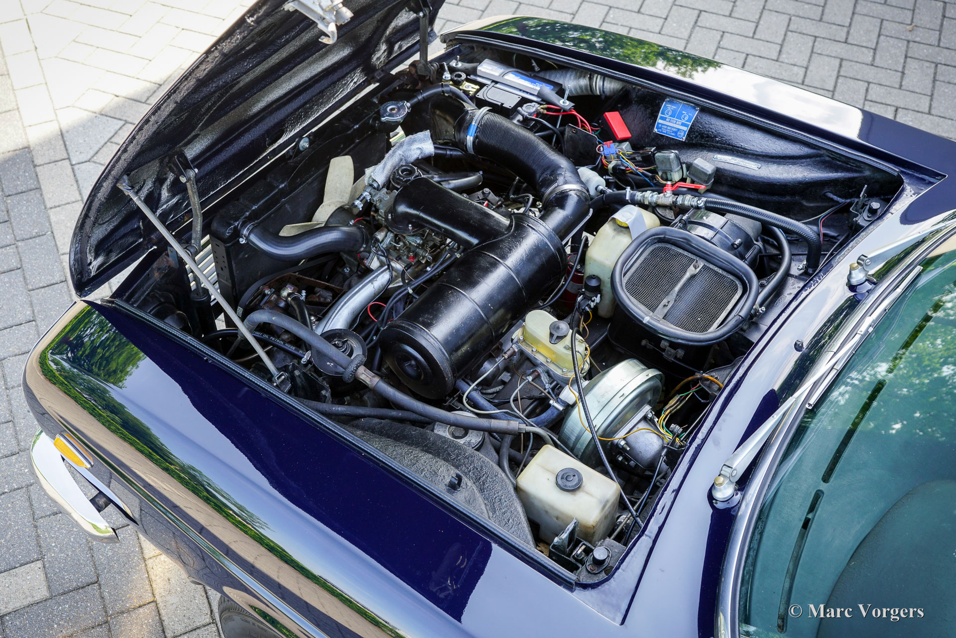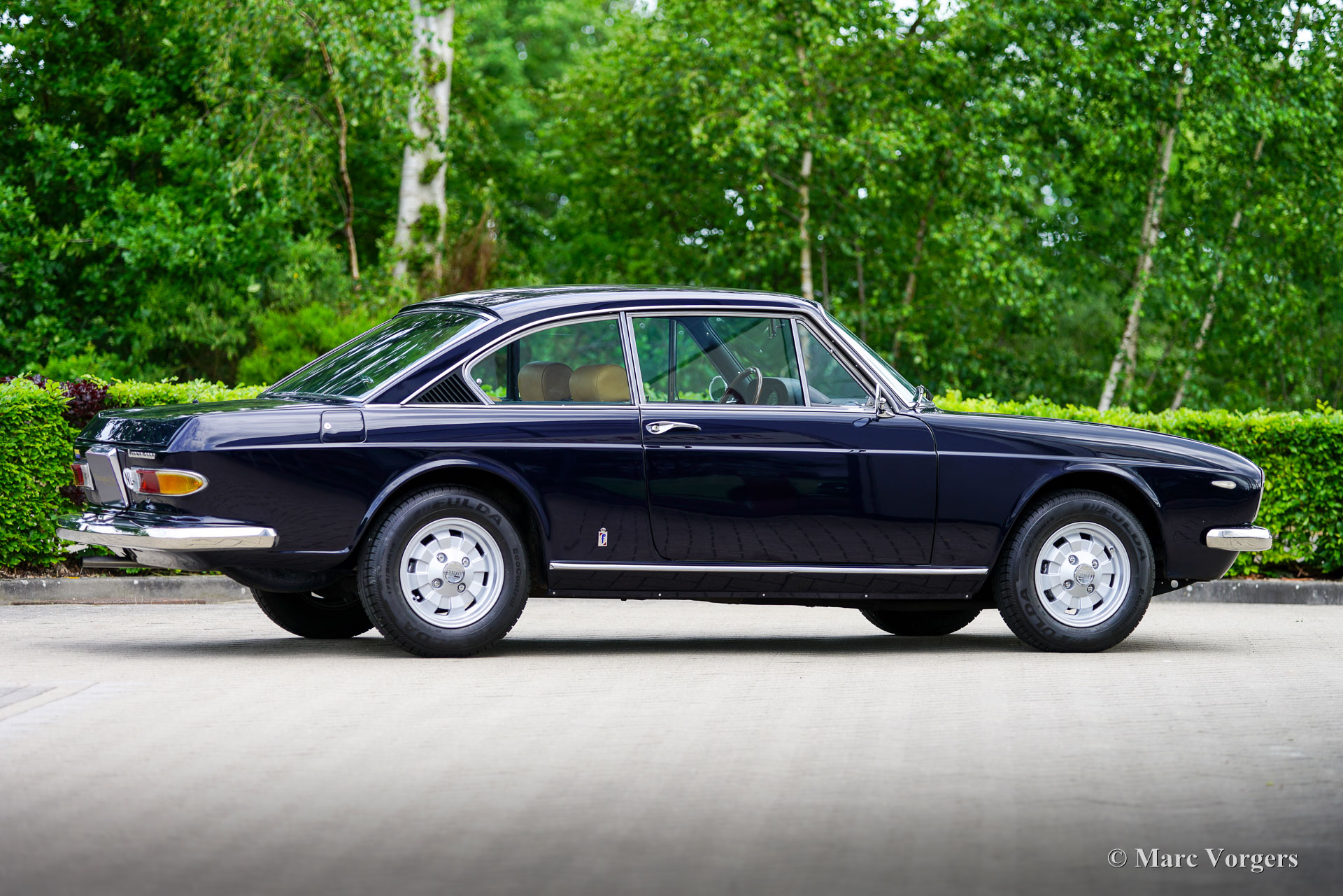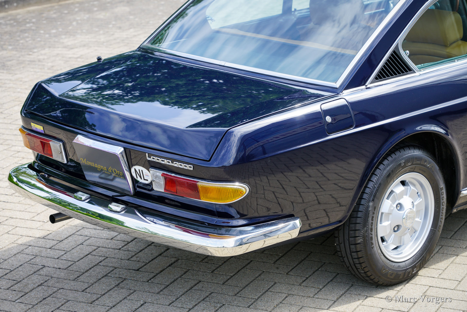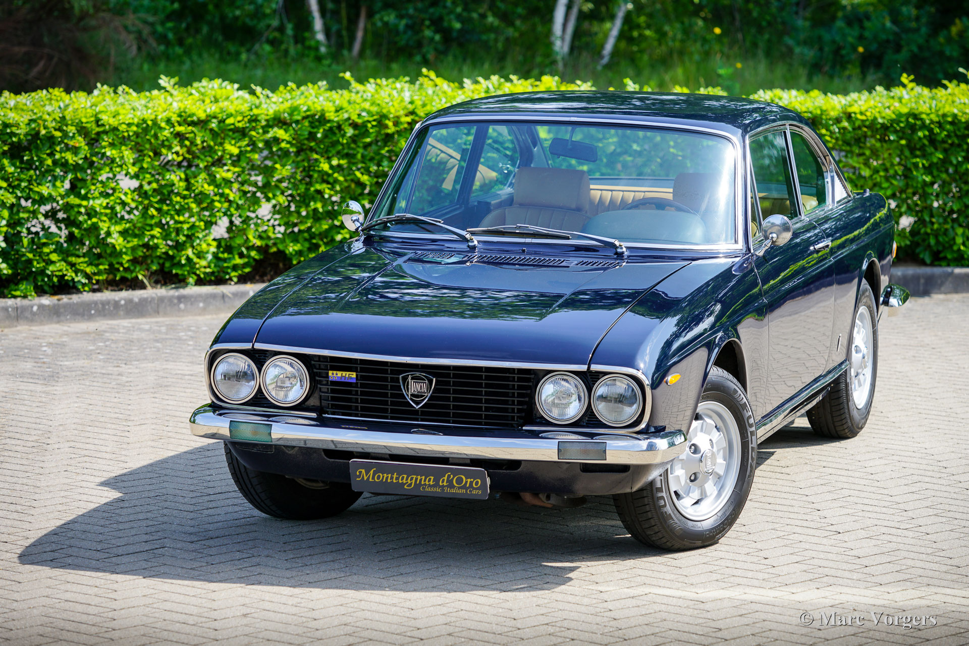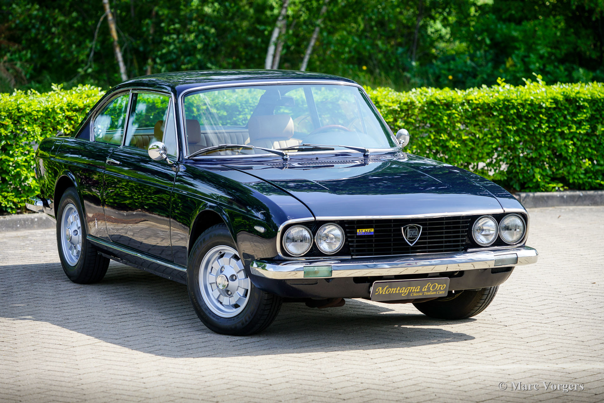Lancia 2000 HF Coupé, year 1972. (First registered 20 July 1972). Chassis number 820.436001.288, engine number 820.406001.682. Colour: dark blue (Lancia Blu), combined with a beige leather interior and black carpet. This Lancia was originally sold new in Rome to Mr I. Ferduaurdo. In 2015, the car was imported from Denmark to the Netherlands. Over the past ten years, it has been maintained by Classic Job in Dalfsen. During that time, the gearbox has been replaced, new stainless-steel bumpers have been fitted and a stainless-steel petrol tank installed. All invoices from 2015 onwards are available. In the past, the Bosch petrol injection system was replaced by a Solex carburettor. This attractive Lancia is in very good condition and drives superbly! The Lancia 2000 Coupé is the successor to the Flavia 2000 Coupé. The original, very stylish design of the Pininfarina Lancia Flavia Coupé was modified in a few details. The Lancia logo was relocated from the bonnet to the grille, and the radiator grille was rendered in matte black with subtle chrome trimming. An important improvement was the introduction of a five‑speed gearbox. The 2000 HF was equipped with petrol injection and an advanced braking system (the so‑called Superduplex system) which ensured efficient braking, even in the event of a failure in one of the circuits. With these technical innovations and a limited production run of 1,229 examples, the Lancia 2000 HF Coupé is an exclusive and rare collector’s car. It is one of our great favourites – we always have a selection of outstanding examples on display in our showroom!