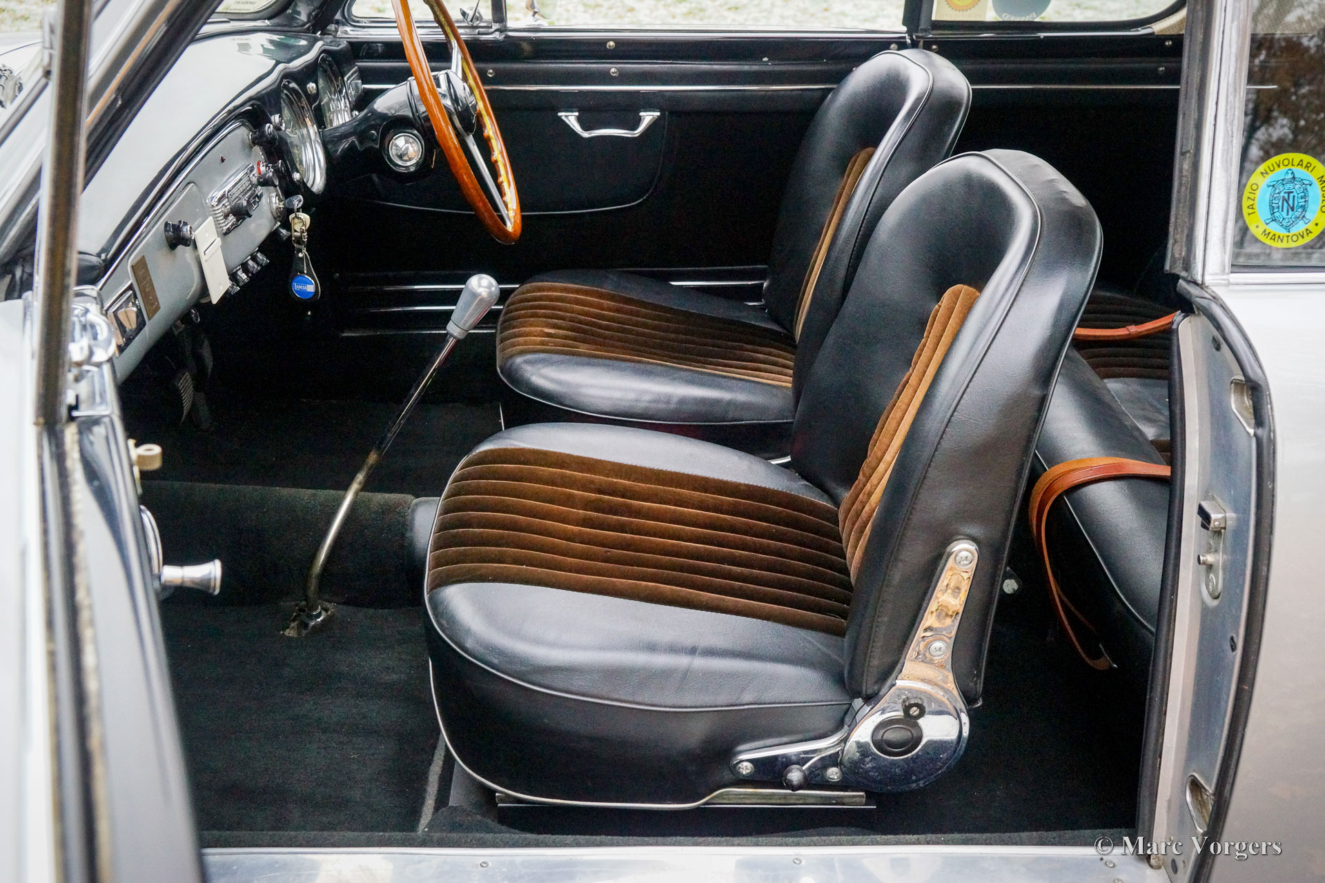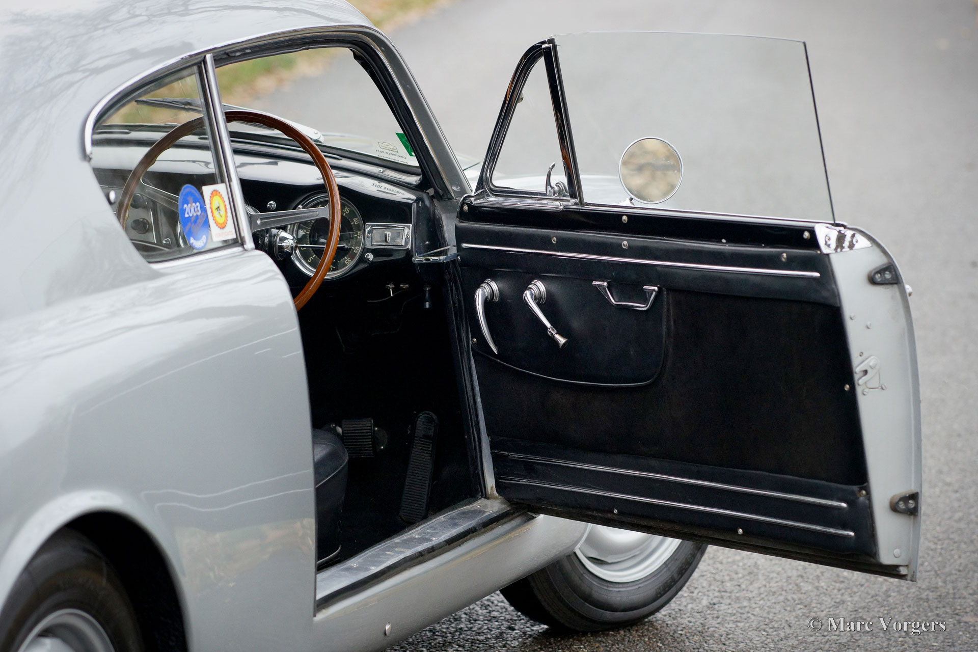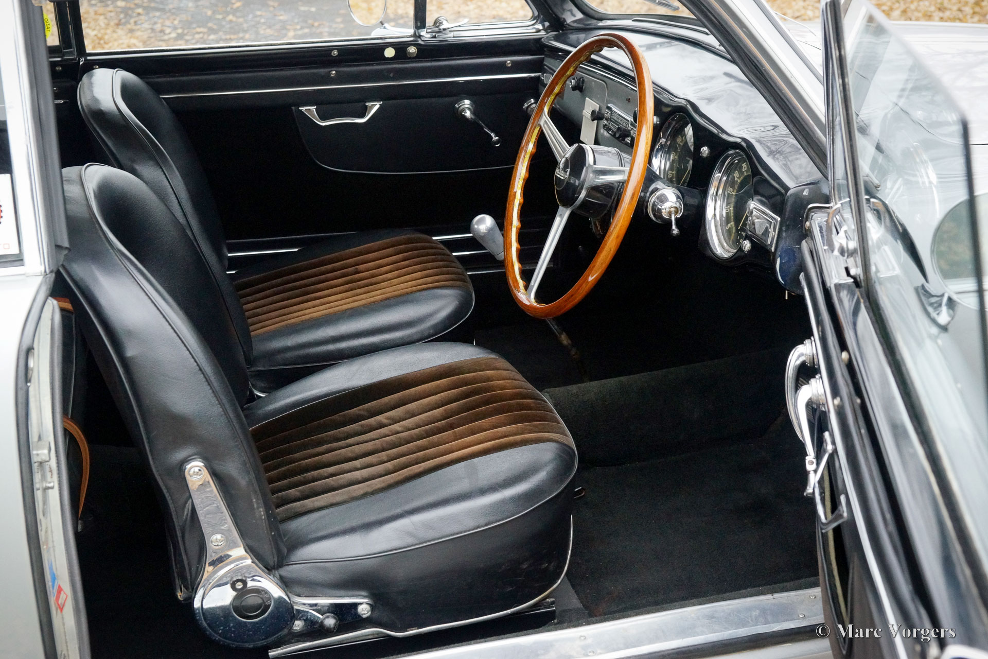 Lancia Aurelia B20 GT Series 6, 1958. Colour silver metallic combined with a black leathercloth/ cloth interior trimmed with black carpet. This fantastic right hand drive Lancia Aurelia B20 GT was sold new in Brussels, Belgium, and the car has always been in Belgian ownership. The last owner has enjoyed this beautiful automobile for fifteen years. The car was serviced and maintained by a Belgian Lancia specialist, in recent years amongst others the gearbox and the cylinder head were overhauled. This fine Lancia features a fantastic factory original sliding sunroof and an ultra-desirable Nardi tuning kit consisting of a pair of special carburettors and a special air-filter! This kit adds an even more a sporty soundtrack to the alloy V6 engine. The owner has enjoyed this sporty Lancia on several historic touring (rally) events like the contemporary Gran Premio Nuvolari in Italy. This Lancia Aurelia is in a good condition, with normal signs of use and age (patina), and the car drives delightfully. The Lancia Aurelia is a ground-breaking historical automobile. The Aurelia features a unitary bodywork structure without separate chassis, and a trans-axle gearbox (with clutch) located near the rear axle to obtain an ideal weight distribution. The Aurelia is known for its superb road holding capabilities, from series 4 a De Dion rear axle was fitted, which lifted these qualities to an even higher level of perfection. This vintage automobile comes with a complete history file and a FIVA identity card. The original bumpers come with the car. This sporty Lancia Aurelia B20 GT is your ticket to many fantastic international classic car events!