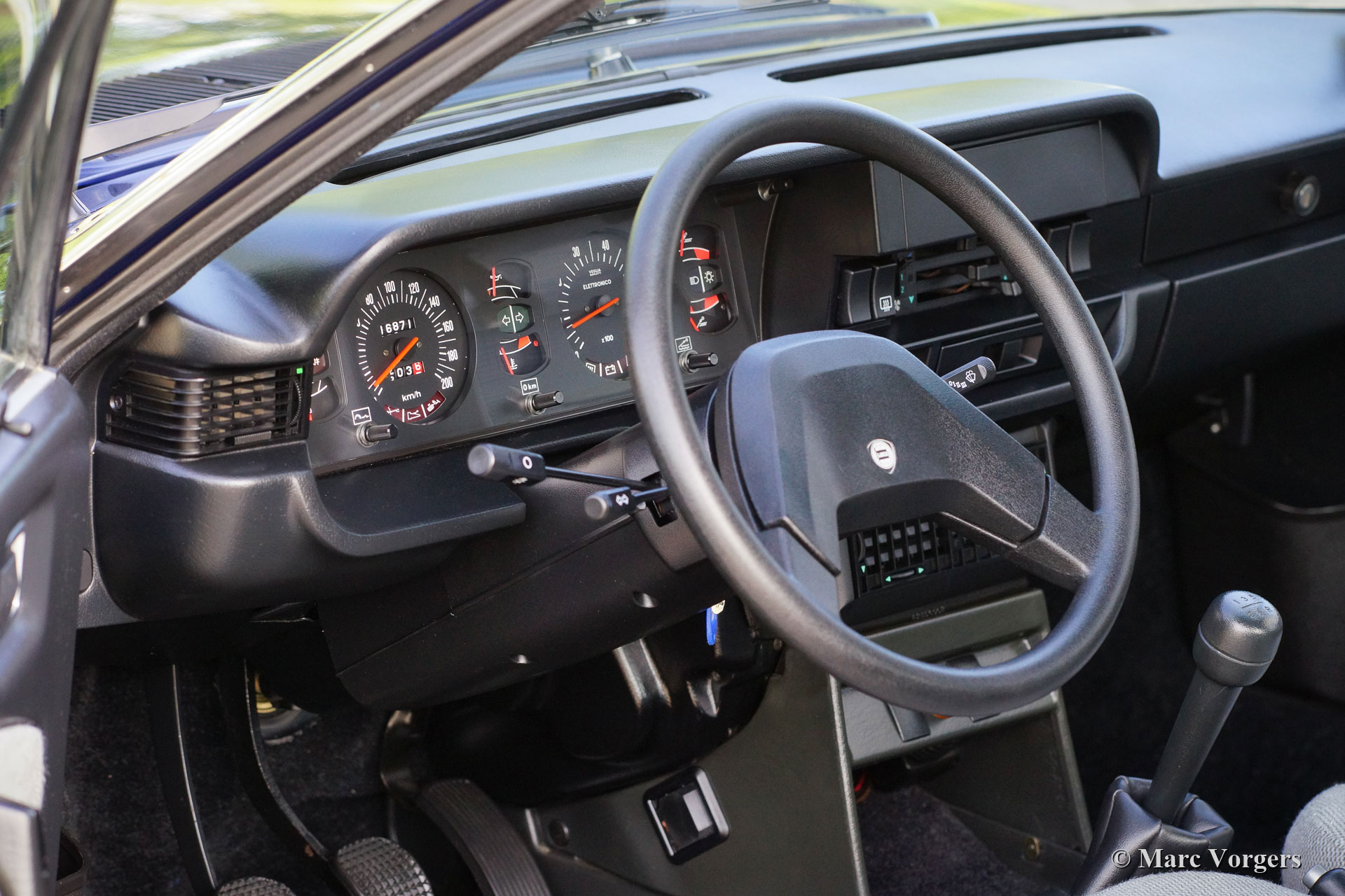 Lancia Beta 1300 Coupé, year 1980. Colour dark blue (Lancia Blue 438) combined with a grey / black interior. Grey cloth seats, black carpet, and black / grey door trim. This wonderful Lancia Beta Coupé was recently imported from Italy where it was purchased from its first owner, Mr. Giommi in Pesaro. This Lancia Beta Coupé is in a fantastic and LIKE NEW original top condition! The car has driven only 16.871 kilometres from new! You will not find another example in this splendid condition; guaranteed! The car comes complete with its original manuals / booklets and the original tool set. The car was brought up to date in August 2021. With the odometer reading 16.839 the car received a full service in which the timing belt was renewed. Also new Pirelli tyres were fitted. This is a wonderful low mileage Lancia Beta Coupé in a highly desirable fully original and perfect collector condition!