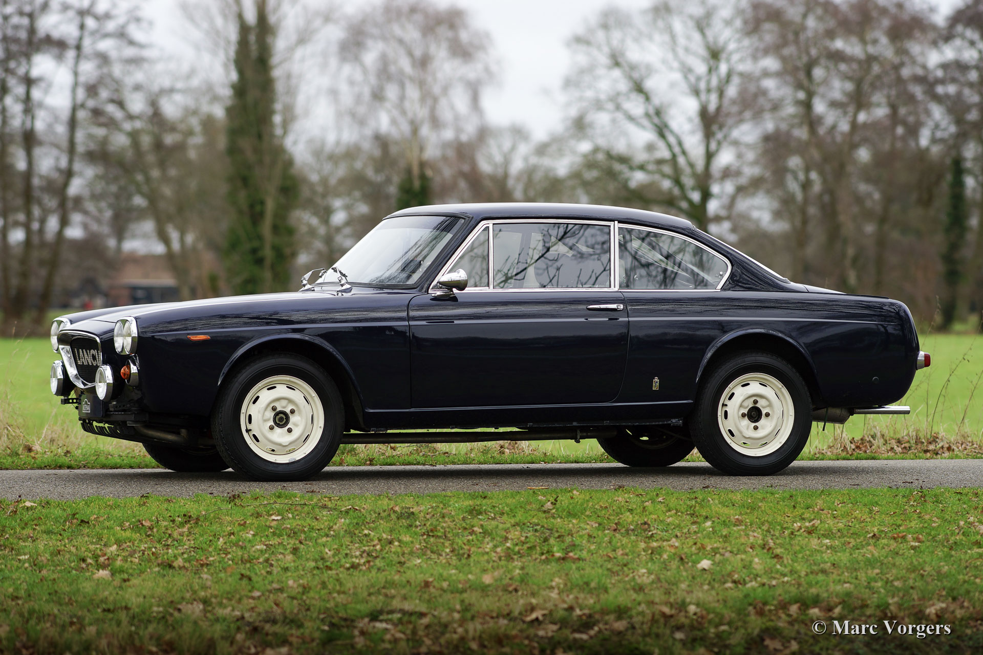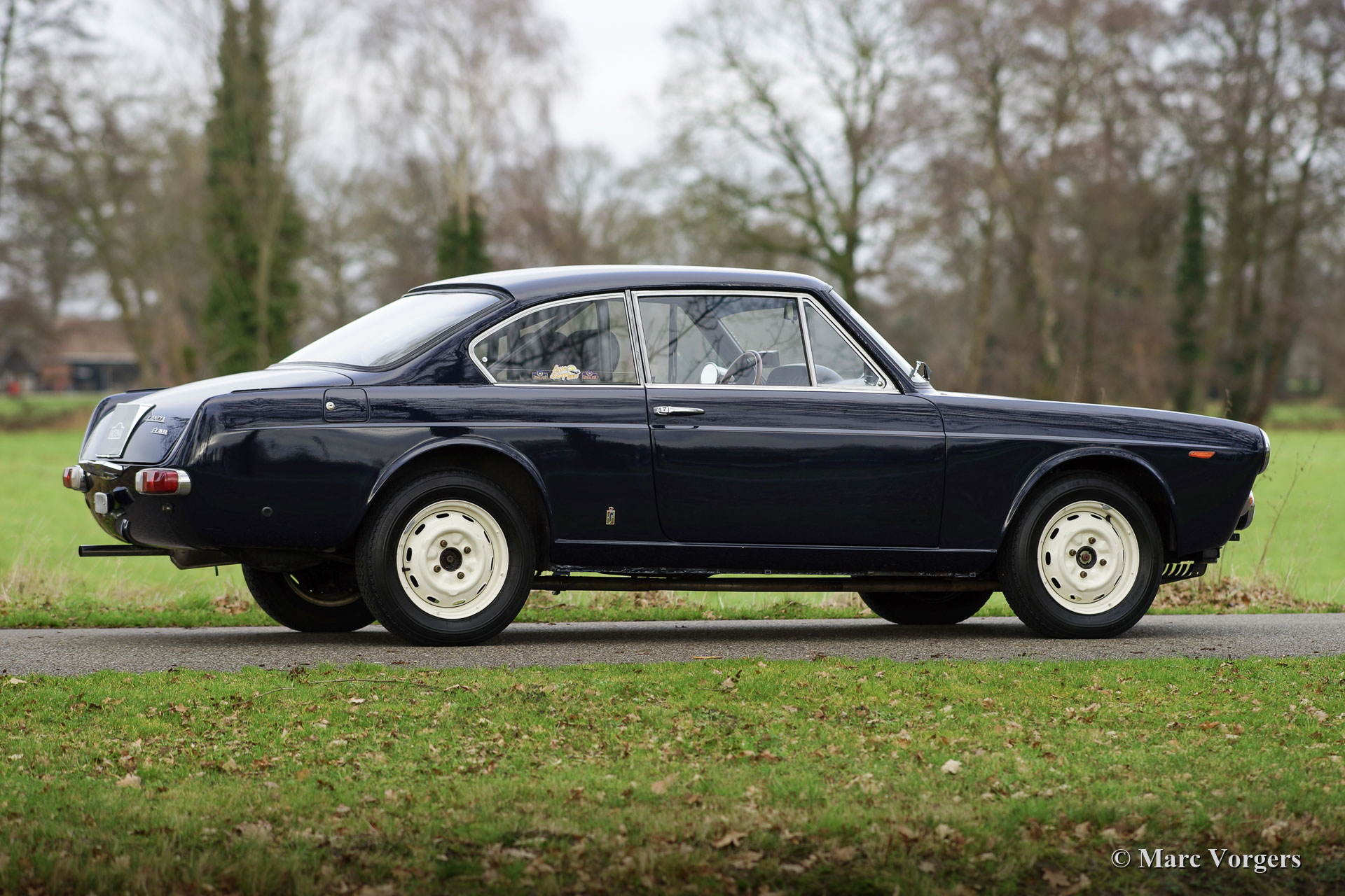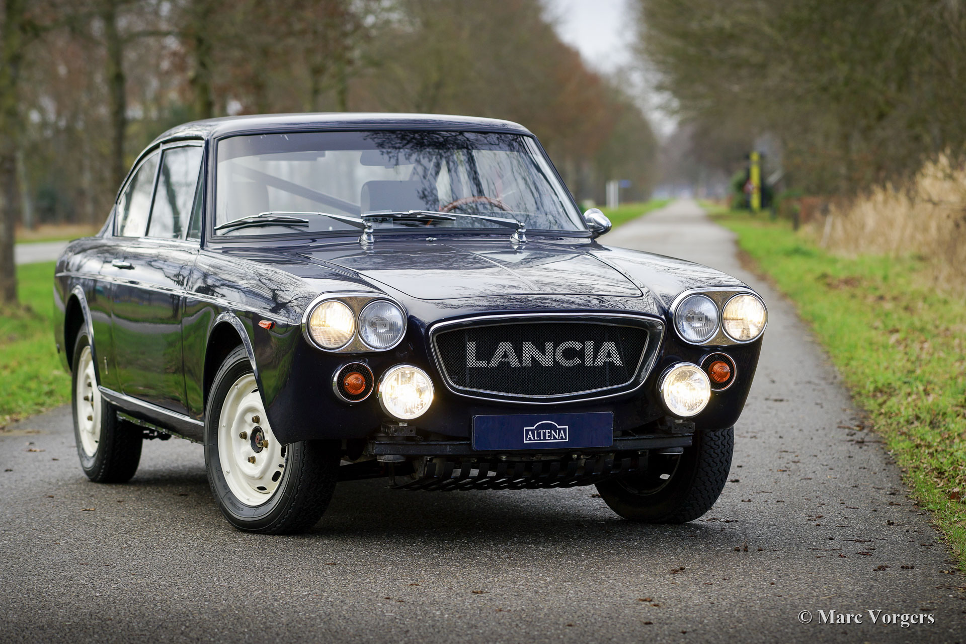 Lancia Flavia Coupé Rally Car, year 1963. Colour dark blue combined with a black interior. This gorgeous Lancia Flavia Coupé was sold new in Italy. In 2015 the car was imported to the Netherlands. In 2016 this restored Lancia Flavia was purchased by the current owner who had the car modified and prepared to compete in historic (touring) rally events. This Lancia is well known in Dutch rally circles where the car is still a unique participant. During the preparation the car was fitted with a roll cage, Recaro seats, LTEC 4-point safety harnesses, Brantz Rally Timer equipment, a sports steering wheel with wood rim, fire extinguisher, Cibië Oscar long-range spot-lamps at the front, Michelin 165/15-inch tyres, and an oil-cooler. Furthermore, the grille was replaced by a mesh example, and the bumpers were removed. The original chrome grille and the chrome wheel embellishers are present. This Lancia Flavia was very well kept and serviced, the car is in excellent condition, and it drives perfectly! This fantastic Lancia will be a unique car to participate in historic rally events, the Lancia offers a lot of driving fun, it handles beautifully, and the four-cylinder boxer engine is a sheer delight!