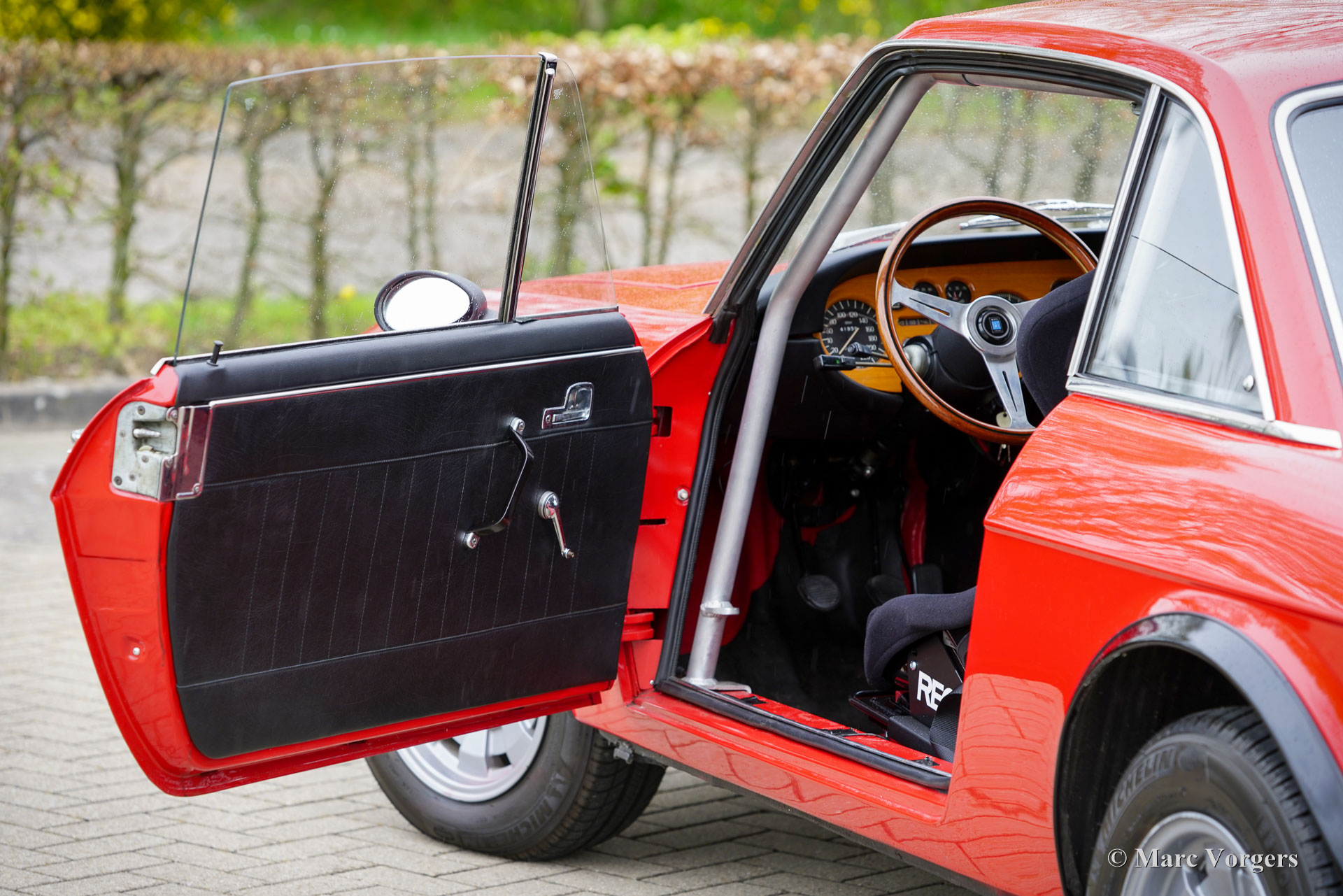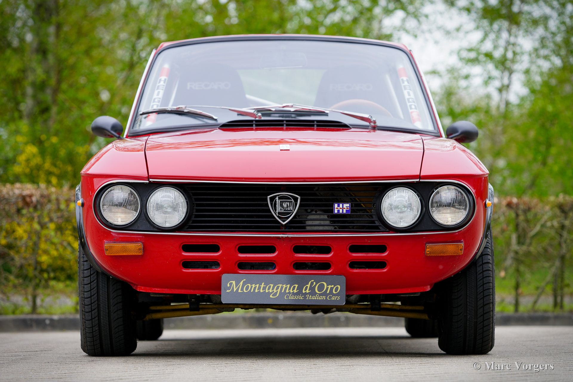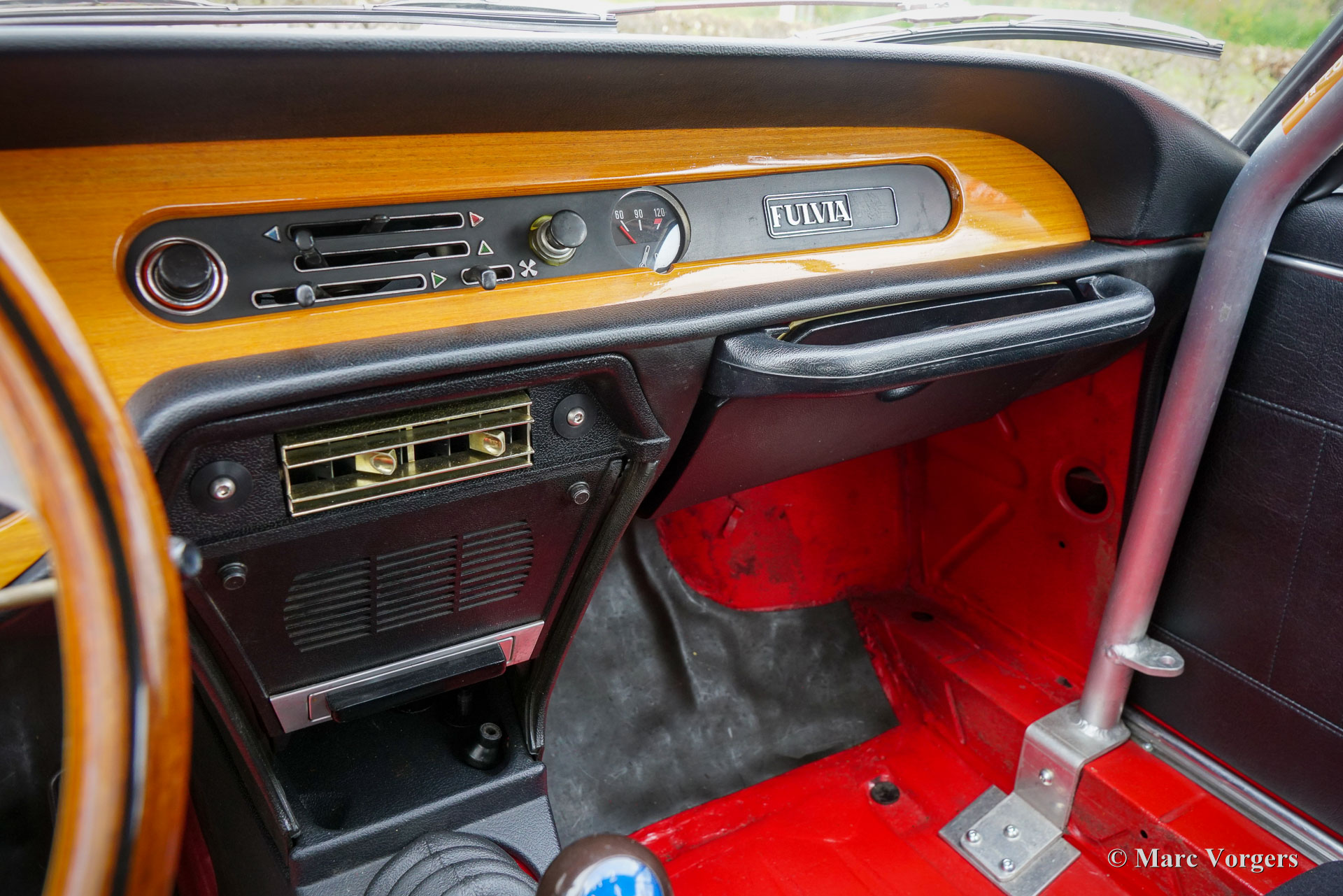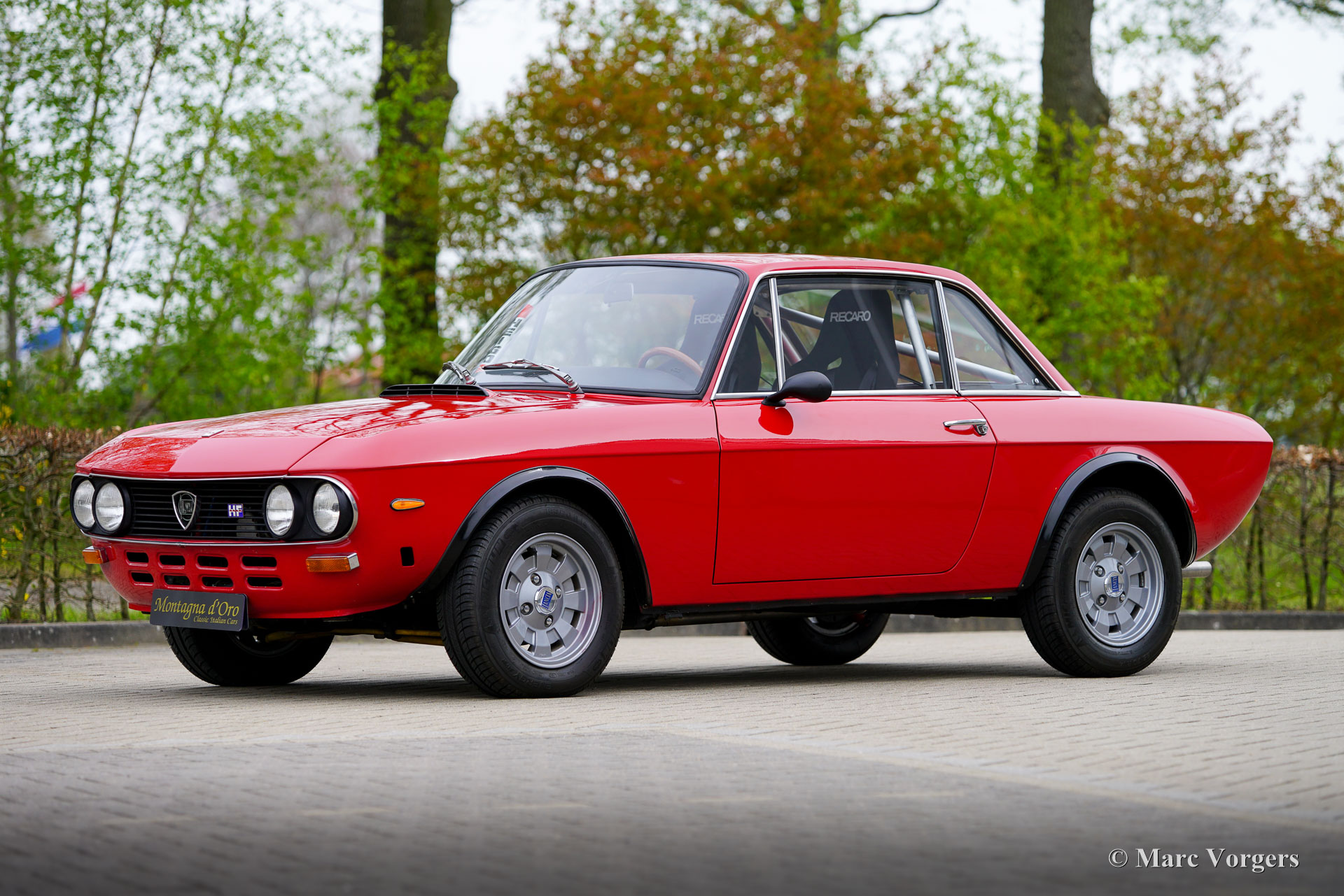 Lancia Fulvia Coupé 1600 HF, year 1971. Colour red combined with a black interior. This magnificent Lancia Fulvia Coupé 1600 HF of the second series is in a wonderful and very good condition, and the car drives perfectly. The car was purchased via Italian car dealer Maasland forty years ago, and from 1986 an extensive restoration started. The restoration was executed by restoration firm Klink, and the car was finished by Pauw Classic Cars, both in the Netherlands. The interior was modified with modern Recaro rally seats with 4-point safety harnesses, a full roll cage was fitted, and a larger aluminium petrol tank was installed. In place of the original petrol tank storage space was created. The original seats are still present. This Lancia Fulvia Coupé 1600 HF comes with a very extensive history file. The Lancia Fulvia HF models were very successful in the rally competitions in the 1960s and early 1970s. A combination of light weight, front wheel drive, excellent grip on the road, superb road holding, and a highly tuned V4 engine proved to be the right recipe for many rally successes! The Coupé 1600 HF was originally sold without bumpers, and the interior was reduced to the essential. Flared wheel arches were added to make possible the fitment of wider wheels and tires. Only 3690 examples of the Coupé 1600 HF were built of which a small proportion in a more civilised “Lusso” trim with more interior trim, sound proofing and bumpers. Nowadays Fulvia Coupé HF cars are highly sought after by collectors, and to be entered in International Historic rally events. This wonderful and very good example was beautifully restored over 35 years ago and was cherished by a Lancia collector for many years.