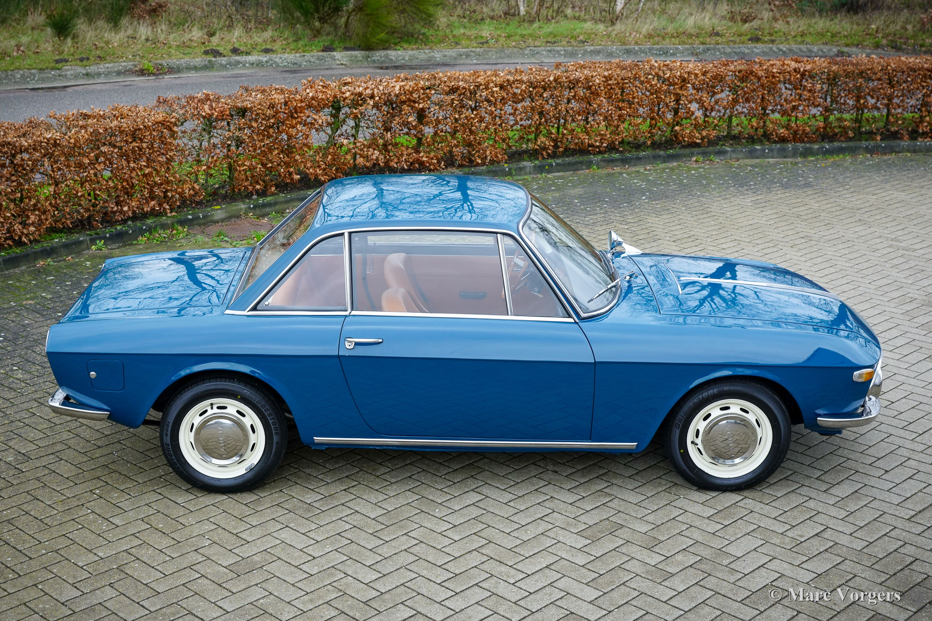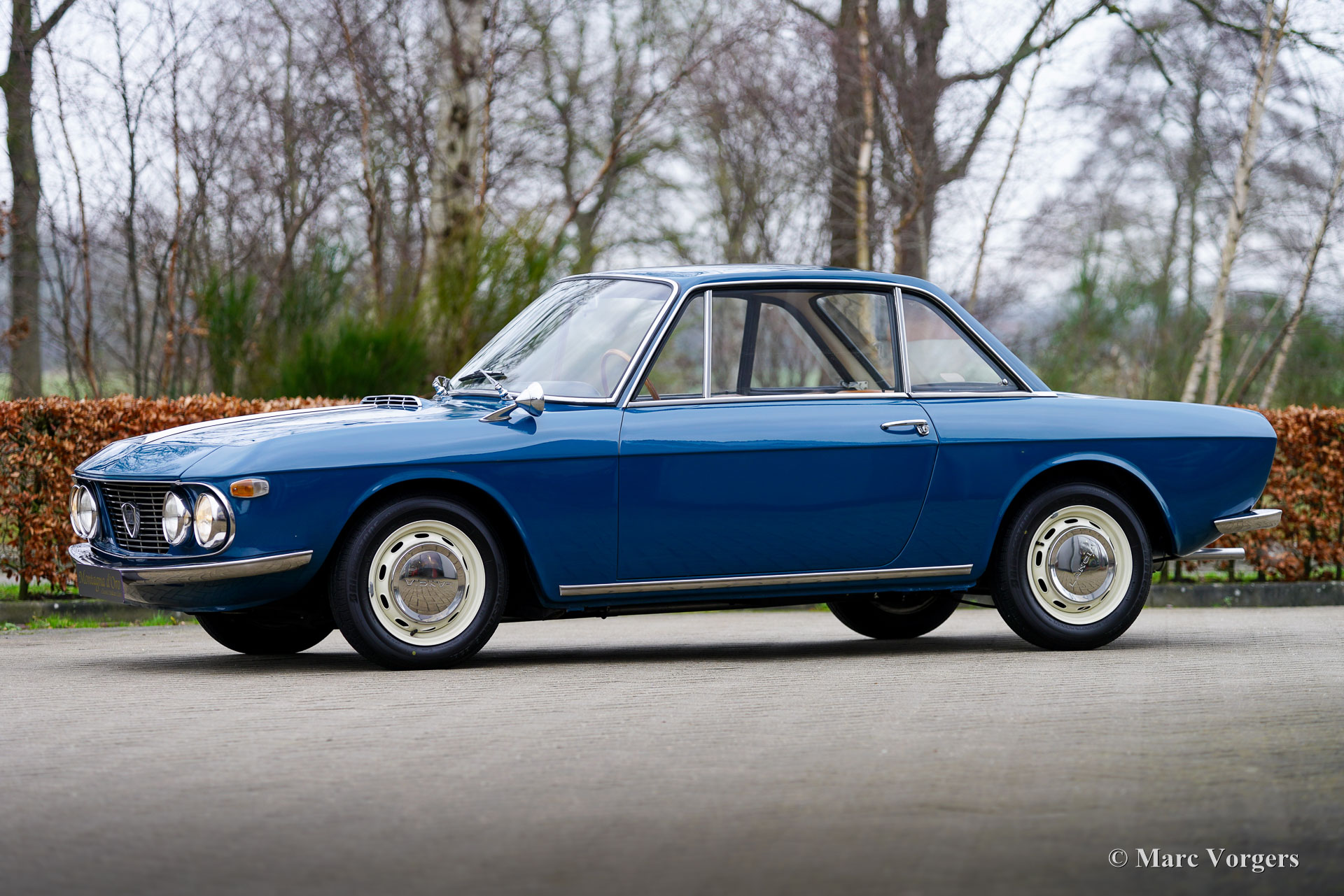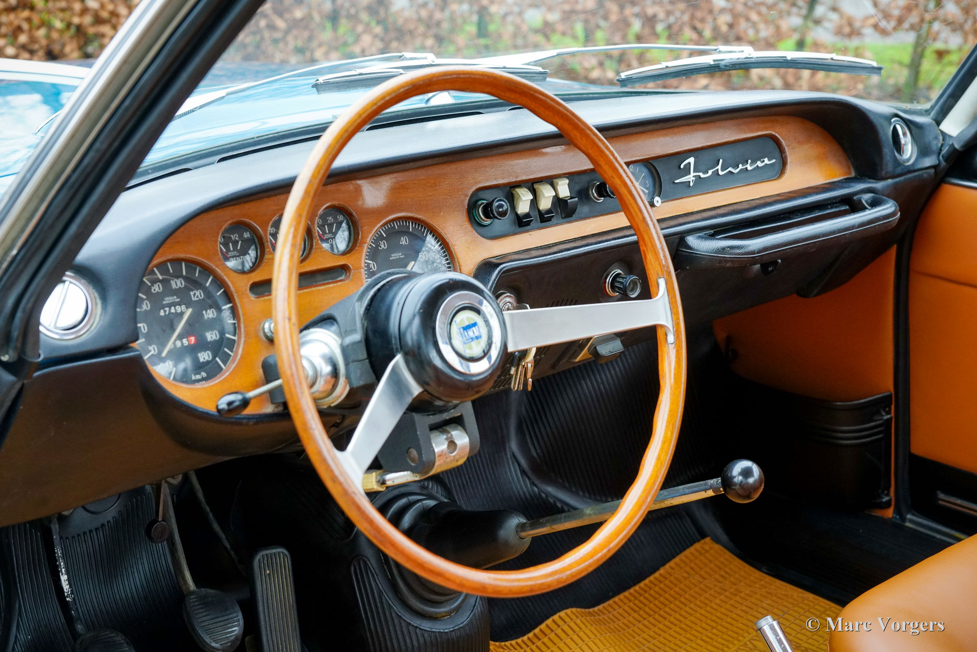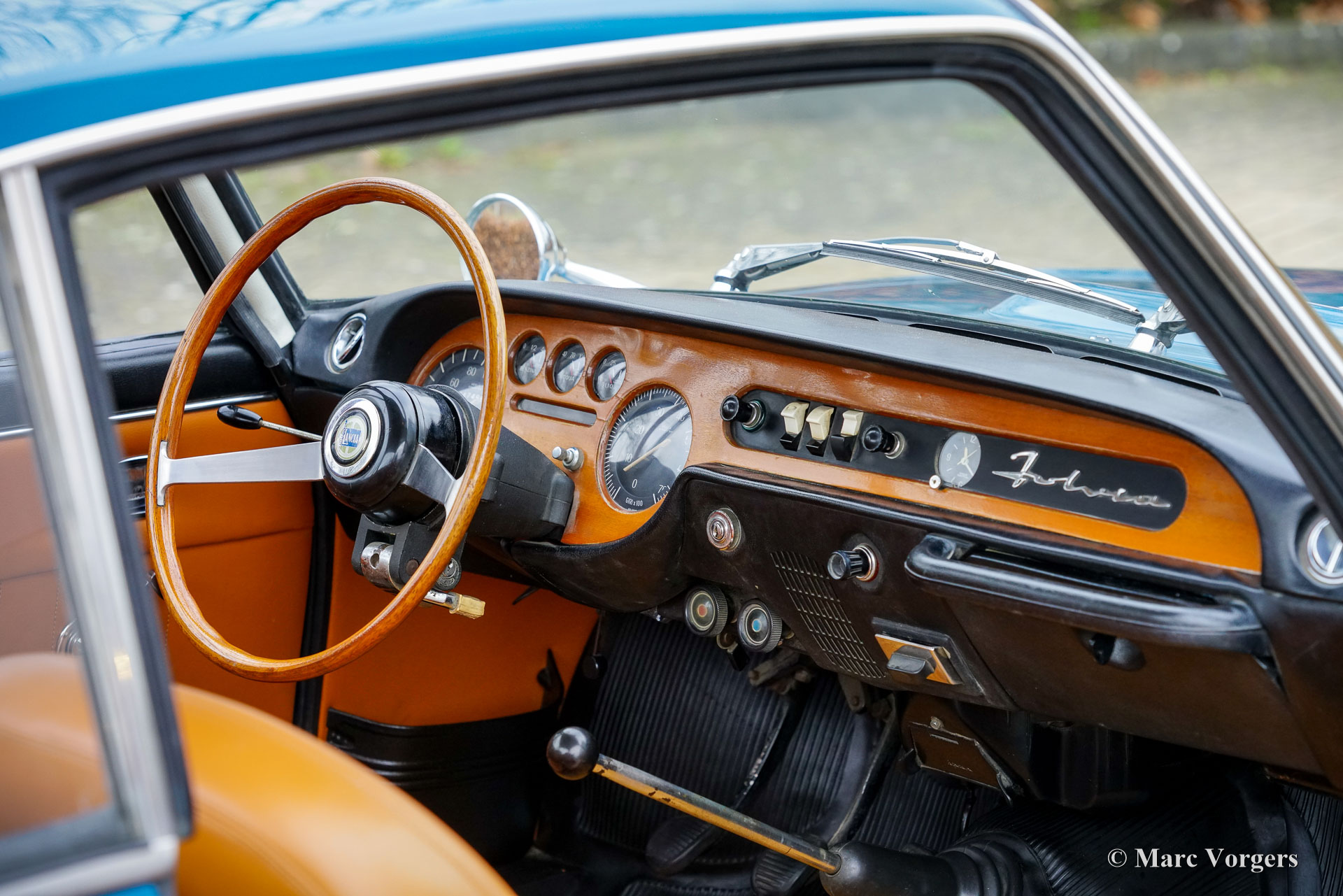 Lancia Fulvia Coupé ‘leva lunga’, year 1967. First registration 11 January 1967. Chassis (VIN) number 818.130.016.793, engine number 818.100*2203520*. Colour blue combined with a cognac brown leatherette interior, black rubber carpet, and a light brown rubber protective mat. This gorgeous Lancia Fulvia comes from the first series. Fitted with a long gear lever compared to later cars, these series 1 cars were retrospectively nicknamed ‘leva lunga’ in Italy. Powered by an 80 horsepower 1216 cc DOHC V-four engine the light and compact Fulvia coupe offers a lively and enjoyable driving experience only to be found in compact Italian Coupé cars. Not only the driving experience is ‘Italian’, also the design breathes the passion for beauty of design and engineering of the Italians. Lancia was renowned for their inventiveness and groundbreaking engineering. Lancia was a pioneer in the field of cars with a unitary bodywork construction, and they did not shy away from high-tech solutions to be found in all their models. This paid off in many rally successes in the period 1972 – 1989, starting with the Fulvia HF in 1972. This wonderful Lancia Fulvia Coupe of the first series was sold new to a Mr. G. Ponichelli who lived in Italy. The odometer currently reads 47.496 kilometres. The car was recently imported to the Netherlands, and it comes complete with the original green service booklet with all the service intervals filled out and stamped. This is a breathtakingly beautiful example showing all the original details. The interior features a gorgeous wooden dashboard with an array of classic gauges and beautifully shaped seats. A top specimen for the Lancia collector and enthusiast alike. This wonderful automobile can be exported to and registered in any country worldwide.
