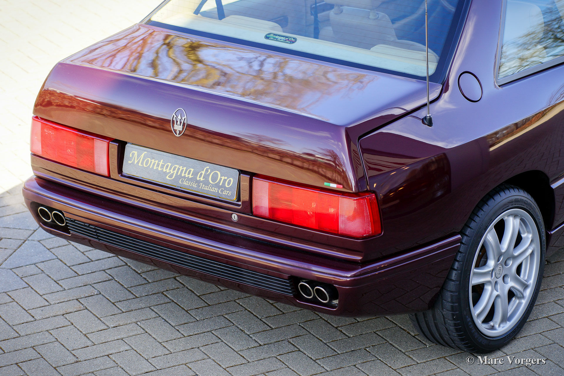 Maserati Ghibli 2.8 Biturbo automatic, year 1996. Colour dark red metallic (Rosso Oriente Micalizzato) combined with a light beige leather interior with matching carpet. This stylish and masculine Maserati Ghibli Biturbo was sold ne in the Netherlands. From new the car has known three owners and the car has driven 143.475 kilometres from new. This is confirmed by the “Autopas” database of the Dutch RDW, and the history and invoices that come with the car. The car is perfectly documented, and it comes with a “Certificate of Maserati”. The Maserati was cherished by its previous owners, and very well serviced over the years. The car is in excellent original condition with only the slightest signs of previous use. The interior is pristine as is the bodywork and the paintwork. The engine compartment and the trunk are very clean. This Maserati Ghibli Biturbo Automatic drives and handles perfectly. The engine runs superbly, and the gearbox shifts accurately. The Ghibli 2.8 Biturbo is a rare automobile, only 1063 cars of this type were built from 1992 until 1998. This Ghibli features many options including the special electronically adjustable suspension! This wonderful Italian machine is ready to be enjoyed by the next enthusiast owner.