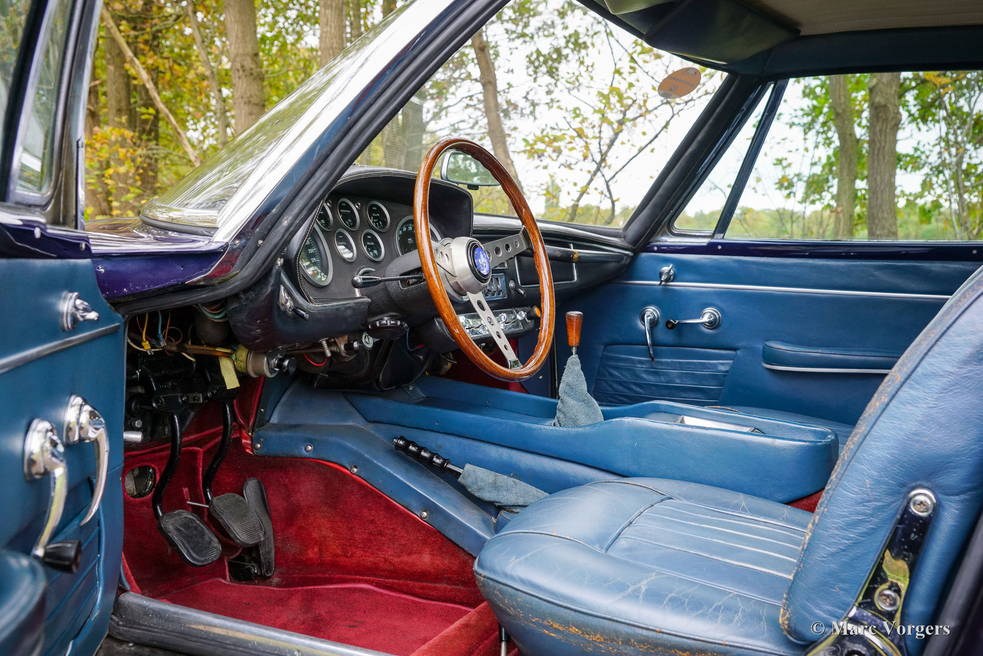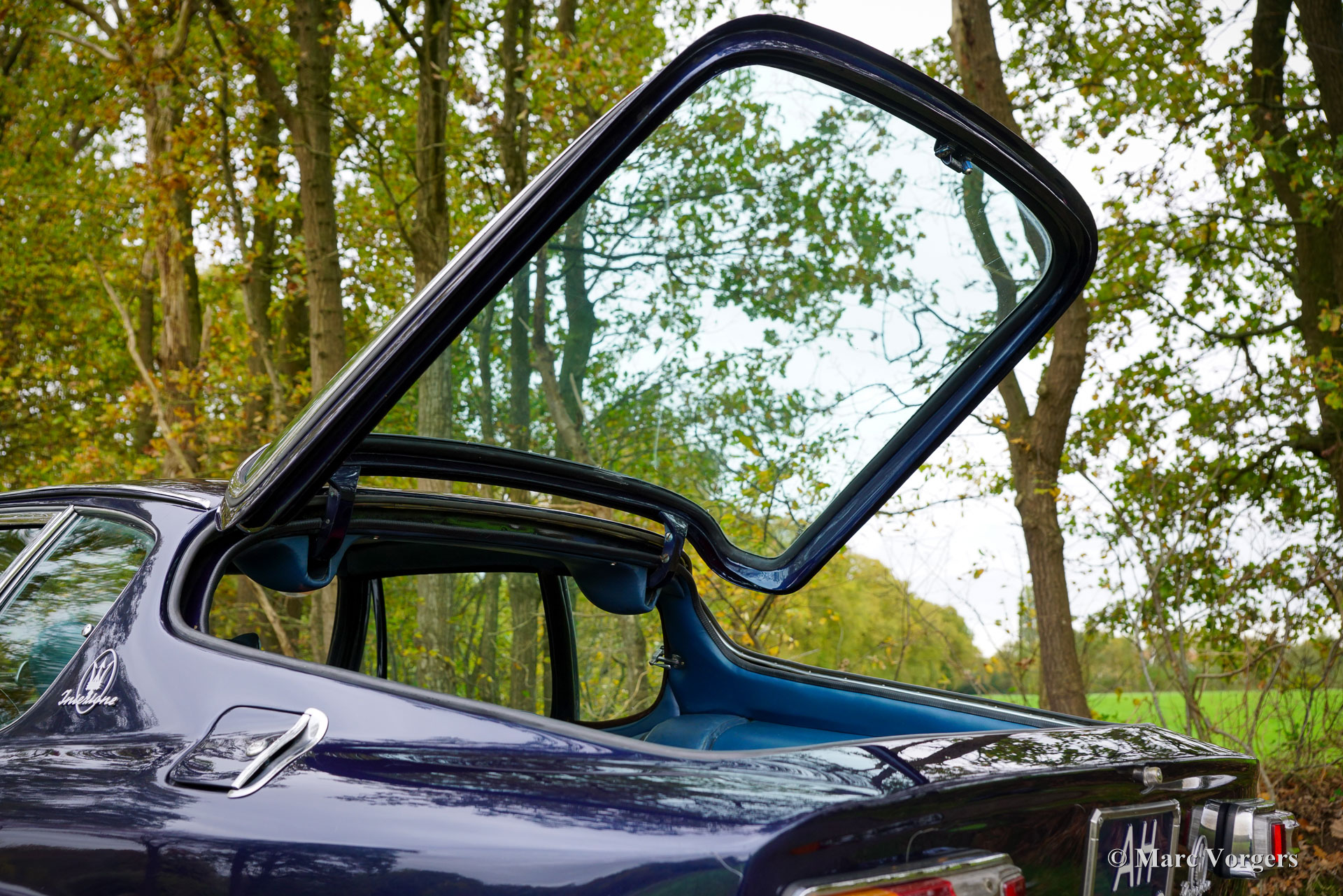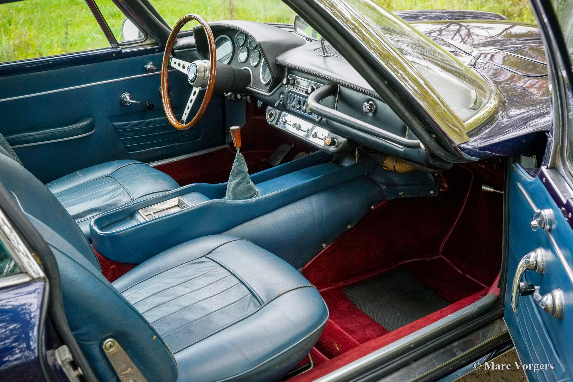 Maserati Mistral Coupé 4 Litre Injection, year 1966. Chassis (VIN) number AM109/ A1/ 724, this is a ‘matching numbers’ car with the engine, gearbox and rear axle still original to the chassis and bodywork. Body colour dark blue metallic (Blu Pervinca 106AR357) combined with a blue leather interior trimmed with red carpet. This marvellous Maserati was built on May 9, 1966, and supplied to its first owner in Verona Italy. From Italy the automobile found a new home in Germany with Mr. Hans Haemer who subsequently sold the car to the father of the current owner in 1982. The family owns and cherishes this special car for 43 years now! The Maserati Mistral Coupé was introduced in 1963 and only 844 examples were built fitted with a 3.5, 3.7 and 4.0 Litre six cylinder in-line engines featuring double ignition (and twin spark plugs per cylinder) and Lucas mechanical fuel injection. In 1966 the 265 bhp top of the line 4.0 Litre engine became optionally available. The wonderful GT design by Pietro Frua distinguished itself with a wonderful combination of flowing curved and sharper edged body lines and a large, glazed tailgate giving the car a sporty yet practical appearance.
