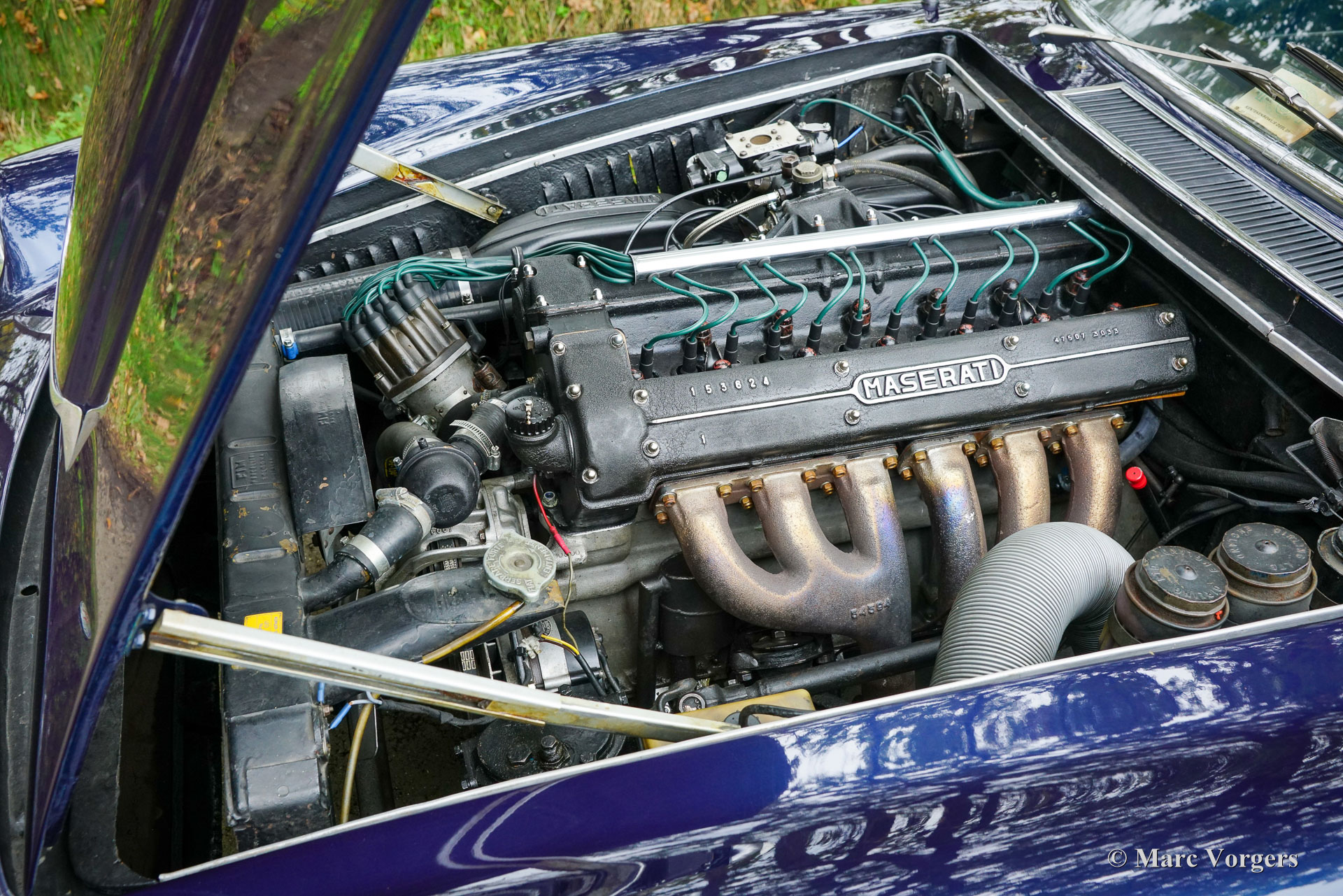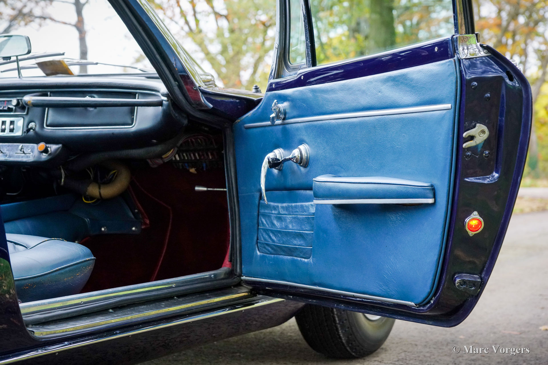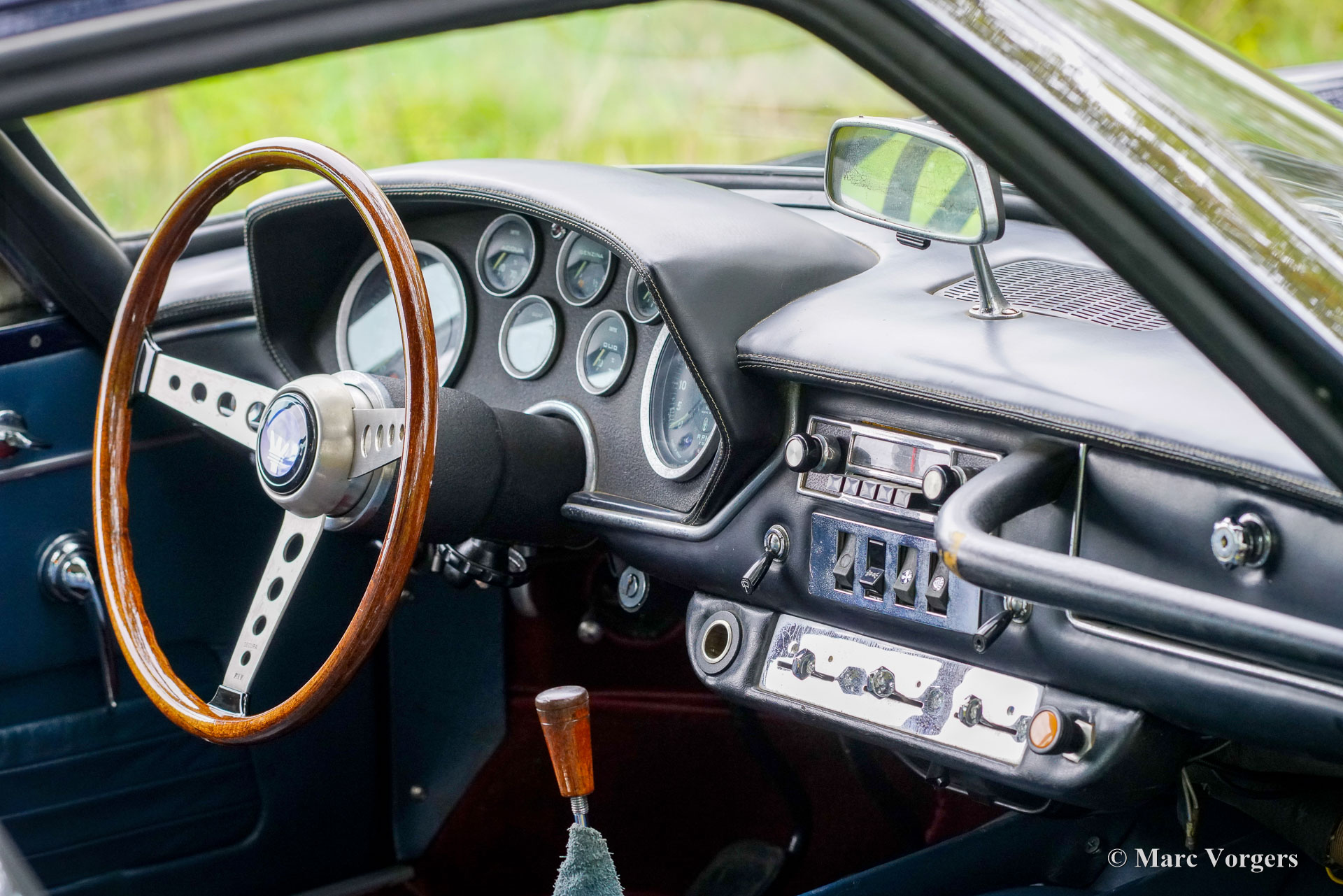 Maserati Mistral Coupé 4 Litre Injection, year 1966. Chassis (VIN) number AM109/ A1/ 724, this is a ‘matching numbers’ car with the engine, gearbox and rear axle still original to the chassis and bodywork. Body colour dark blue metallic (Blu Pervinca 106AR357) combined with a blue leather interior trimmed with red carpet. This marvellous Maserati was built on May 9, 1966, and supplied to its first owner in Verona Italy. From Italy the automobile found a new home in Germany with Mr. Hans Haemer who subsequently sold the car to the father of the current owner in 1982. The family owns and cherishes this special car for 43 years now! The Maserati Mistral Coupé was introduced in 1963 and only 844 examples were built fitted with a 3.5, 3.7 and 4.0 Litre six cylinder in-line engines featuring double ignition (and twin spark plugs per cylinder) and Lucas mechanical fuel injection. In 1966 the 265 bhp top of the line 4.0 Litre engine became optionally available. The wonderful GT design by Pietro Frua distinguished itself with a wonderful combination of flowing curved and sharper edged body lines and a large, glazed tailgate giving the car a sporty yet practical appearance.