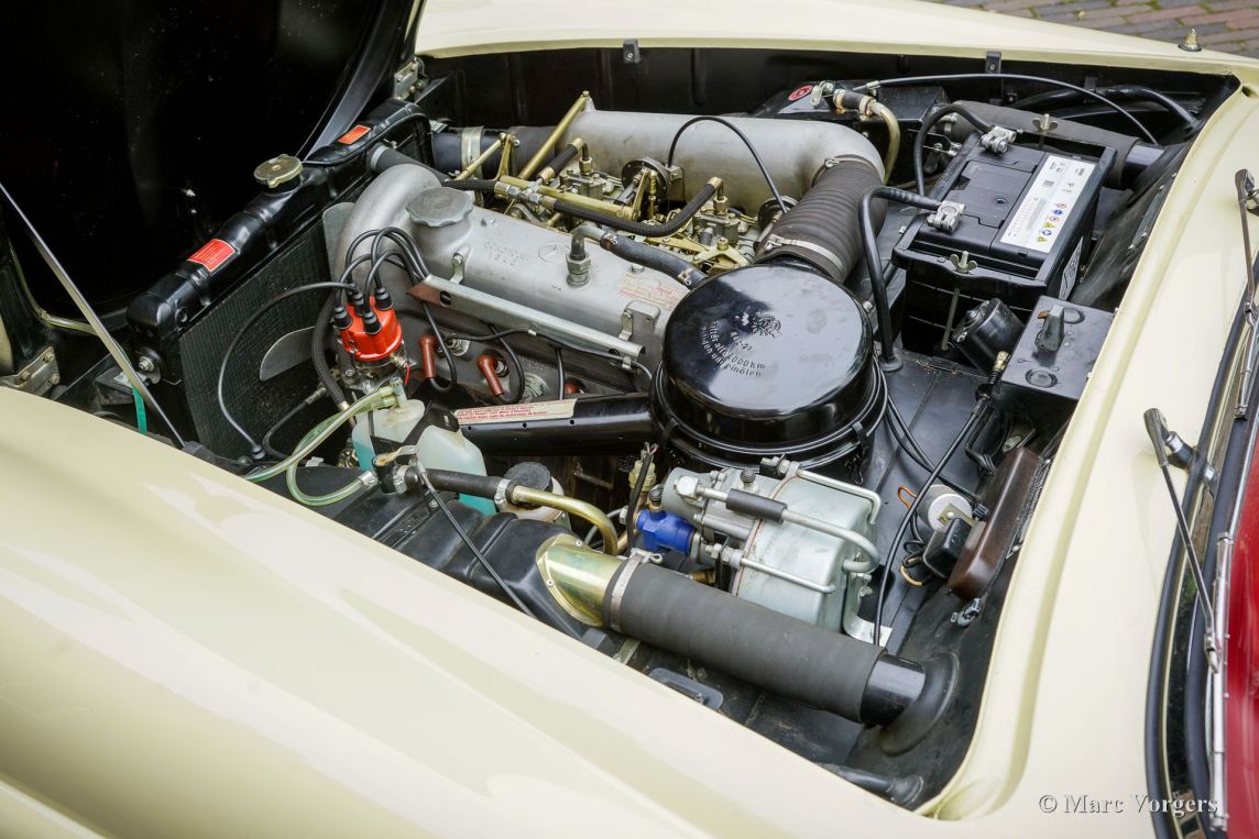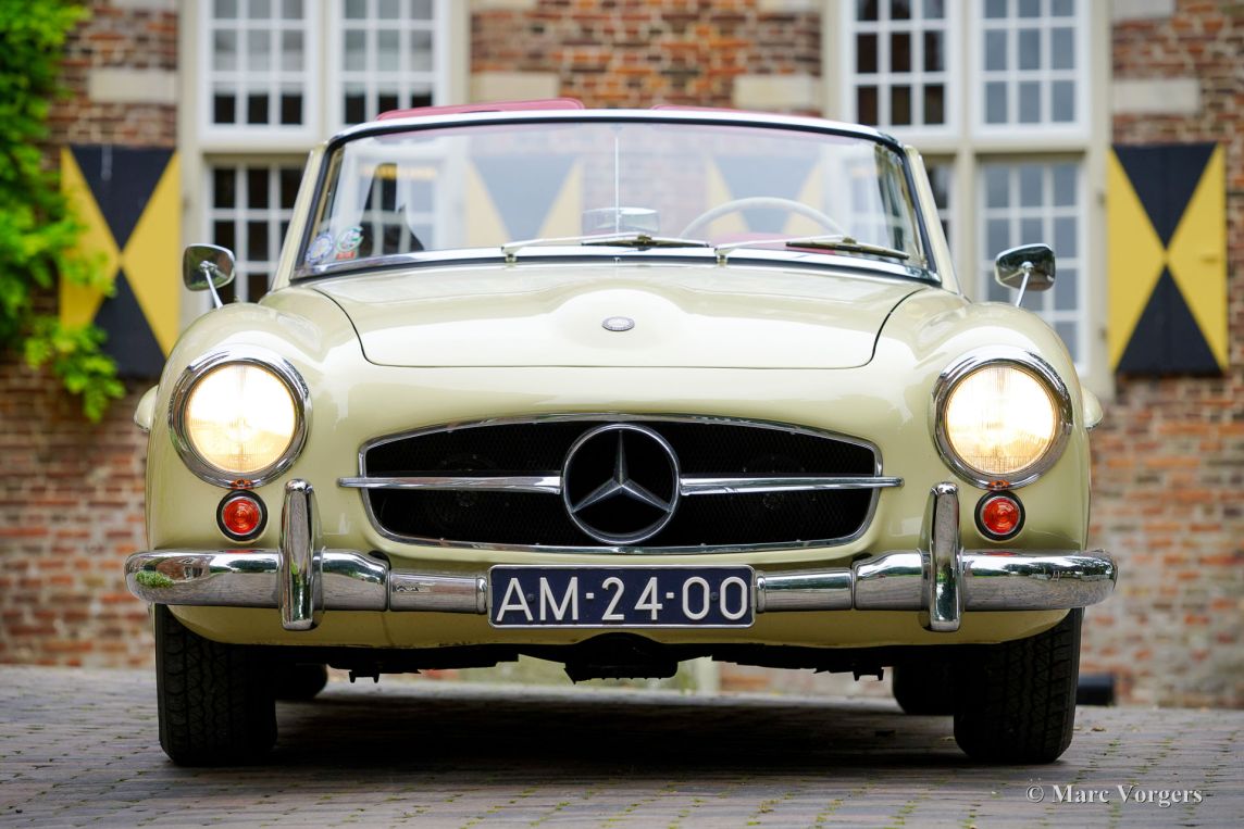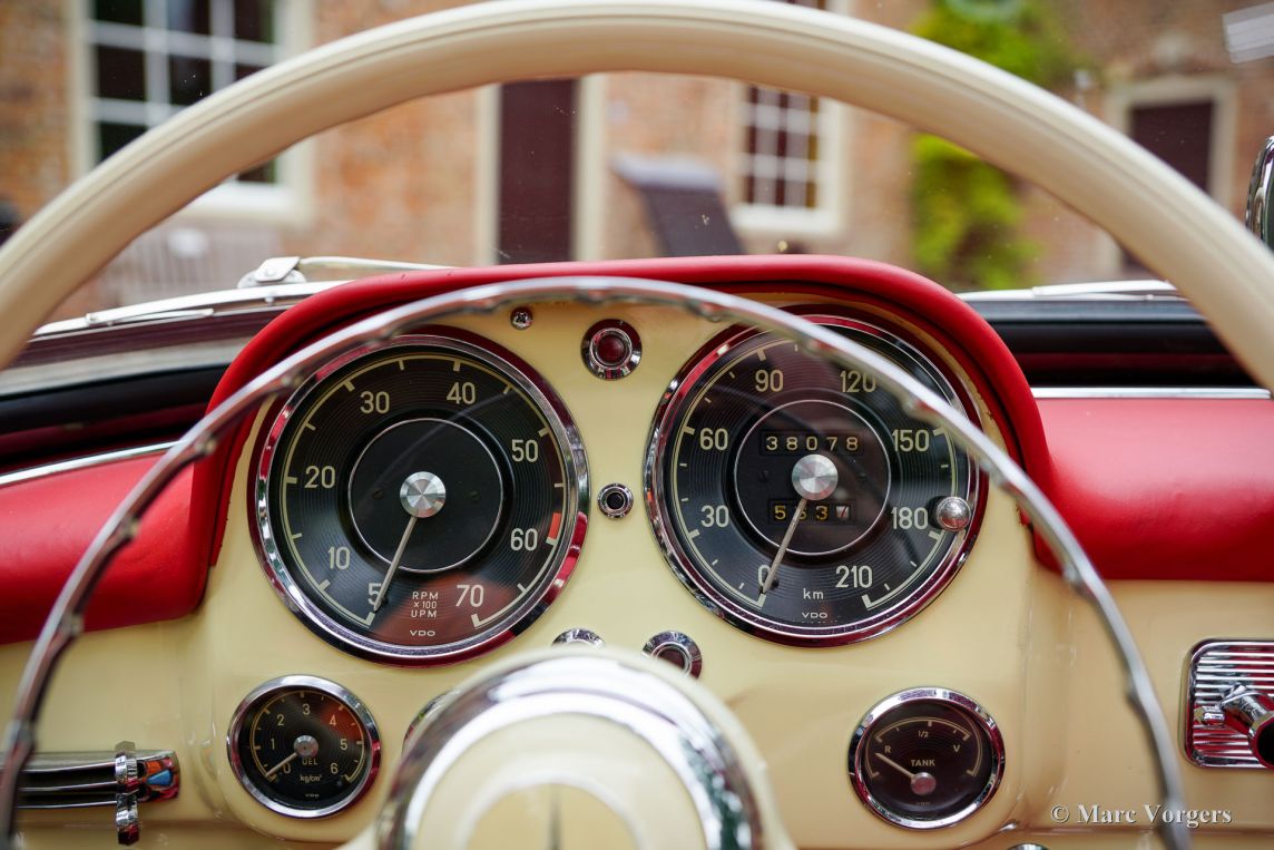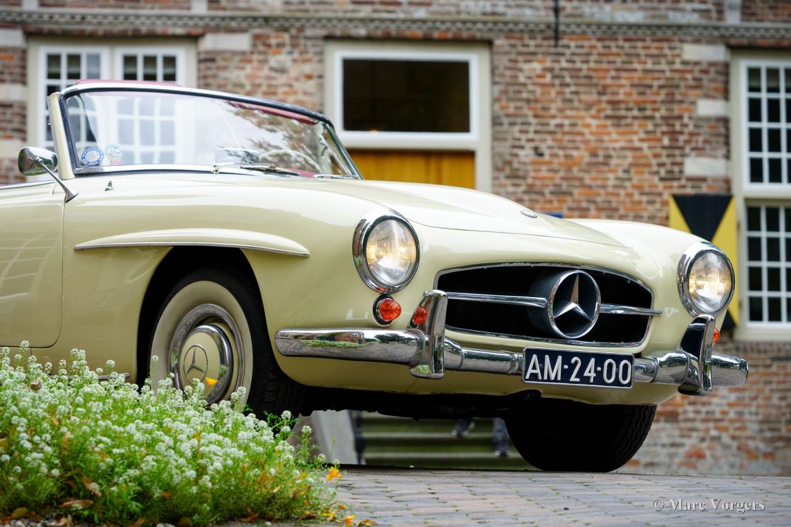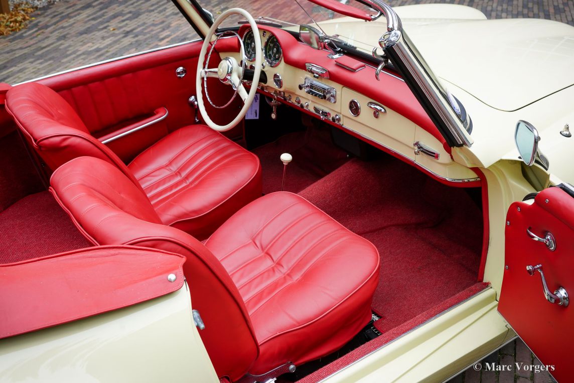 Mercedes-Benz 190 SL, year 1959. Chassis (VIN) number 121040-10-9500466. Colour Ivory (we believe it to be Elfenbein DB608) combined with a red leather interior and red carpet. This magnificent Mercedes-Benz 190 SL was first registered on 28 February 1959, and the car was imported to the Netherlands on 7 November 2006. About a decade ago, the car was extensively restored to concours condition! The automobile is still in a wonderful top condition! The car shows beautiful original details, and it shows only the tiniest traces of previous use. This splendid Mercedes 190 SL was purchased by the current owner in June 2021, and the car was serviced by Mercedes-Benz SL specialist van Dijk in the Netherlands where they also installed a gorgeous Becker Europa radio. The Mercedes-Benz 190 SL was first presented as a prototype at the International Motor Sports Show in New York on 6 February 1954, this debut was largely driven by the US importer Max Hoffman. The production version was introduced at the Geneva motor show in March 1955. The Mercedes-Benz 190 SL is a graceful two-seater roadster designed as a more accessible companion to the very expensive six-cylinder 300 SL sports/racing car. The 190 SL offers refined styling and a comfortable touring experience rather than outright performance. This gorgeous example was restored to a very high standard, and the car is in a superb condition. An impeccable example for the discerning Mercedes-Benz enthusiast/collector. This vehicle is available to view and test drive by prior appointment only.