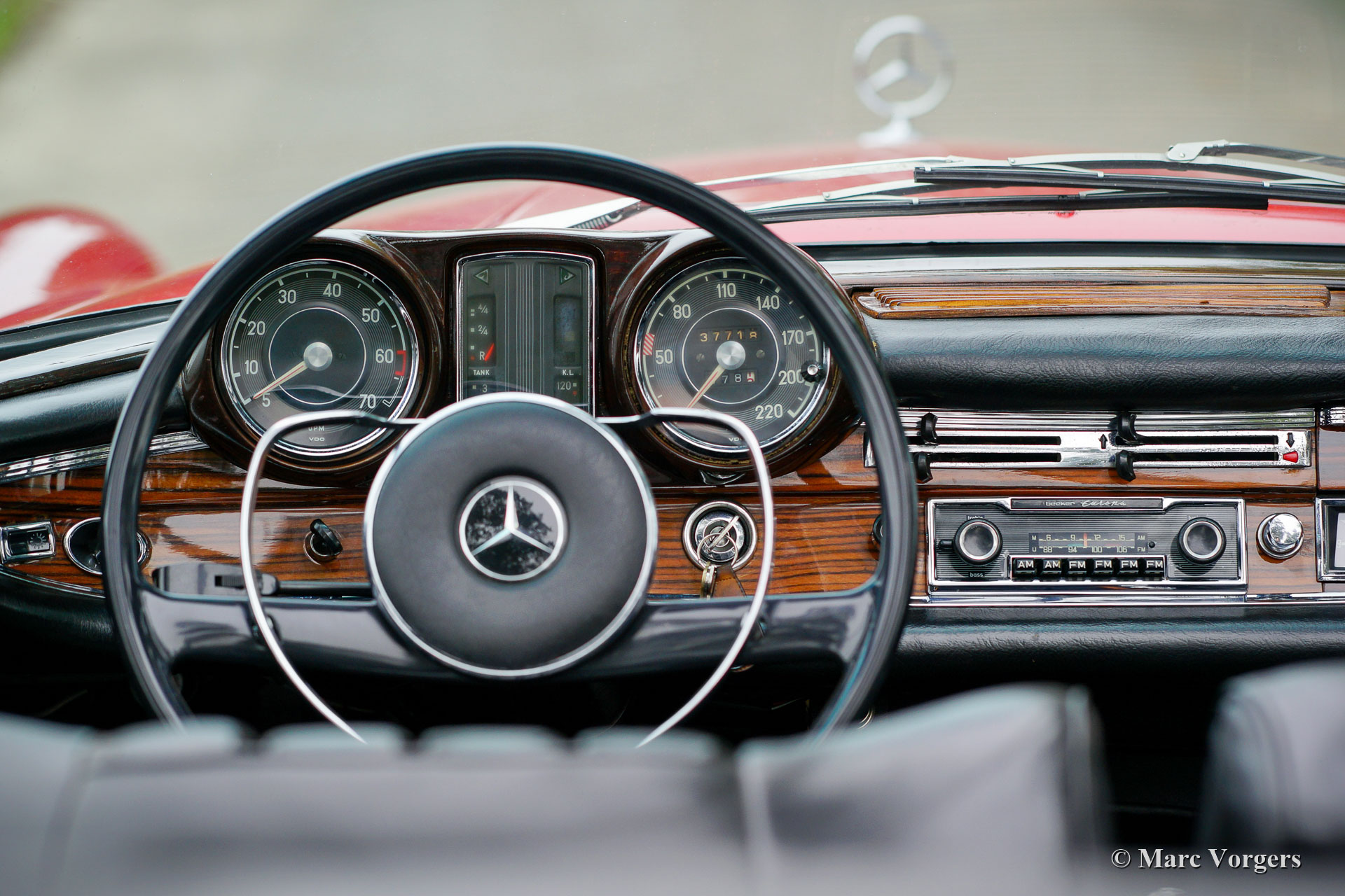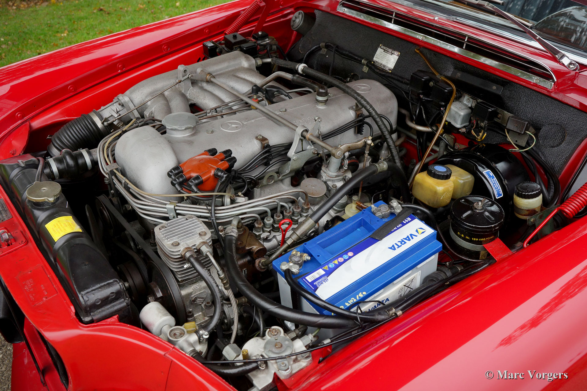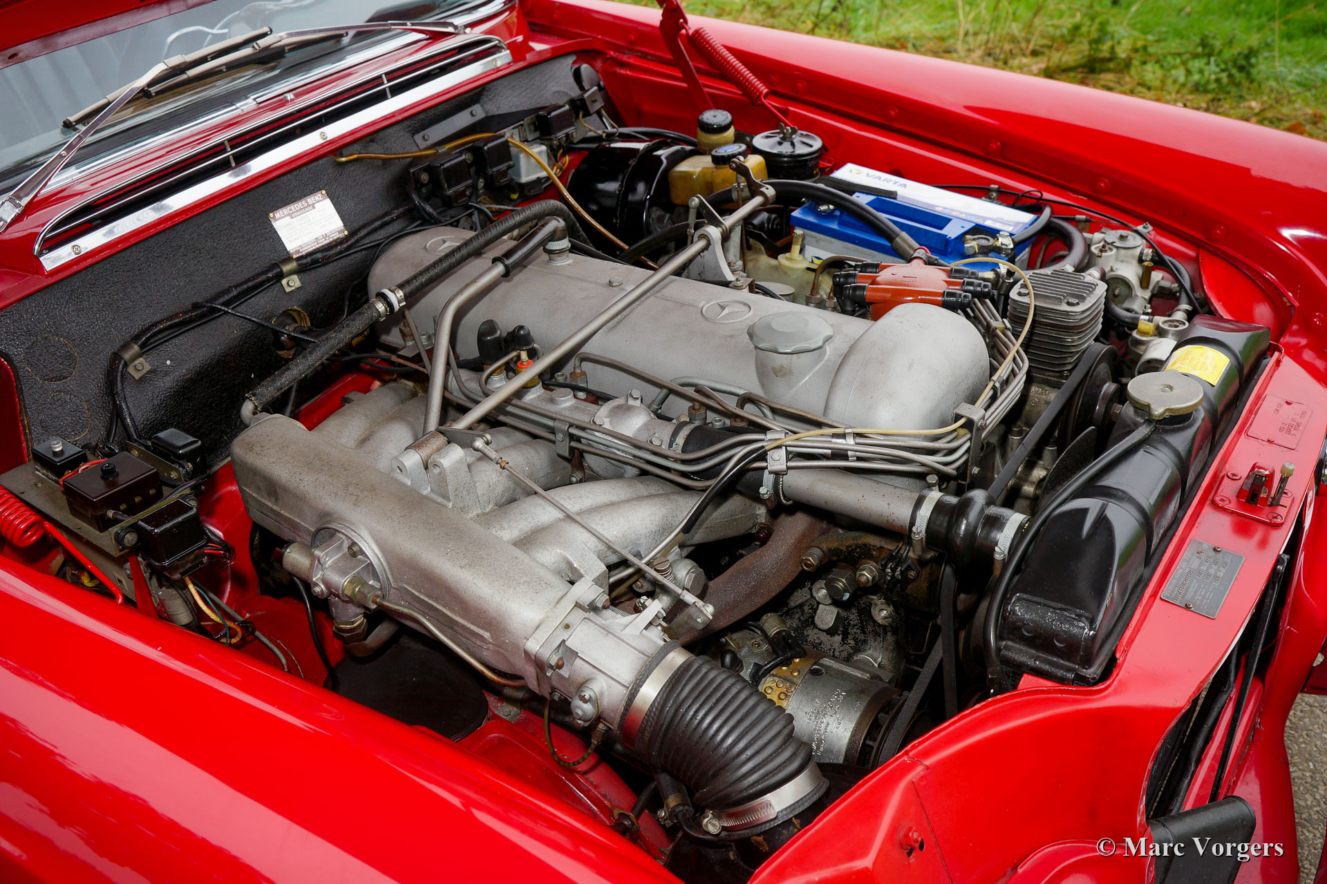 Mercedes-Benz W112 300 SE convertible, year 1966. Colour Mercedes Benz red combined with a black leather interior and black carpet. Black mohair hood and hood-cover. This magnificent Mercedes-Benz 300SE convertible was sold new to an American soldier who was stationed in Europe. In 1967 the owner had the Mercedes shipped to the United States. In 2016 the automobile was sold to the Netherlands where it became part of a classic car collection. The W112 300 SE convertible is one of the top of the line models built by Mercedes-Benz. A very luxurious and comfortable automobile featuring self-levelling air-suspension on the rear wheels, a smooth running in-line six-cylinder engine, power windows and of course, beautifully built. This Mercedes 300 SE convertible is in very good to excellent condition and the car drives perfectly. The bodywork shows a crisp panel fit, beautiful paintwork, and perfect chrome. The interior and the hood are in excellent condition. The engine room is beautifully detailed.