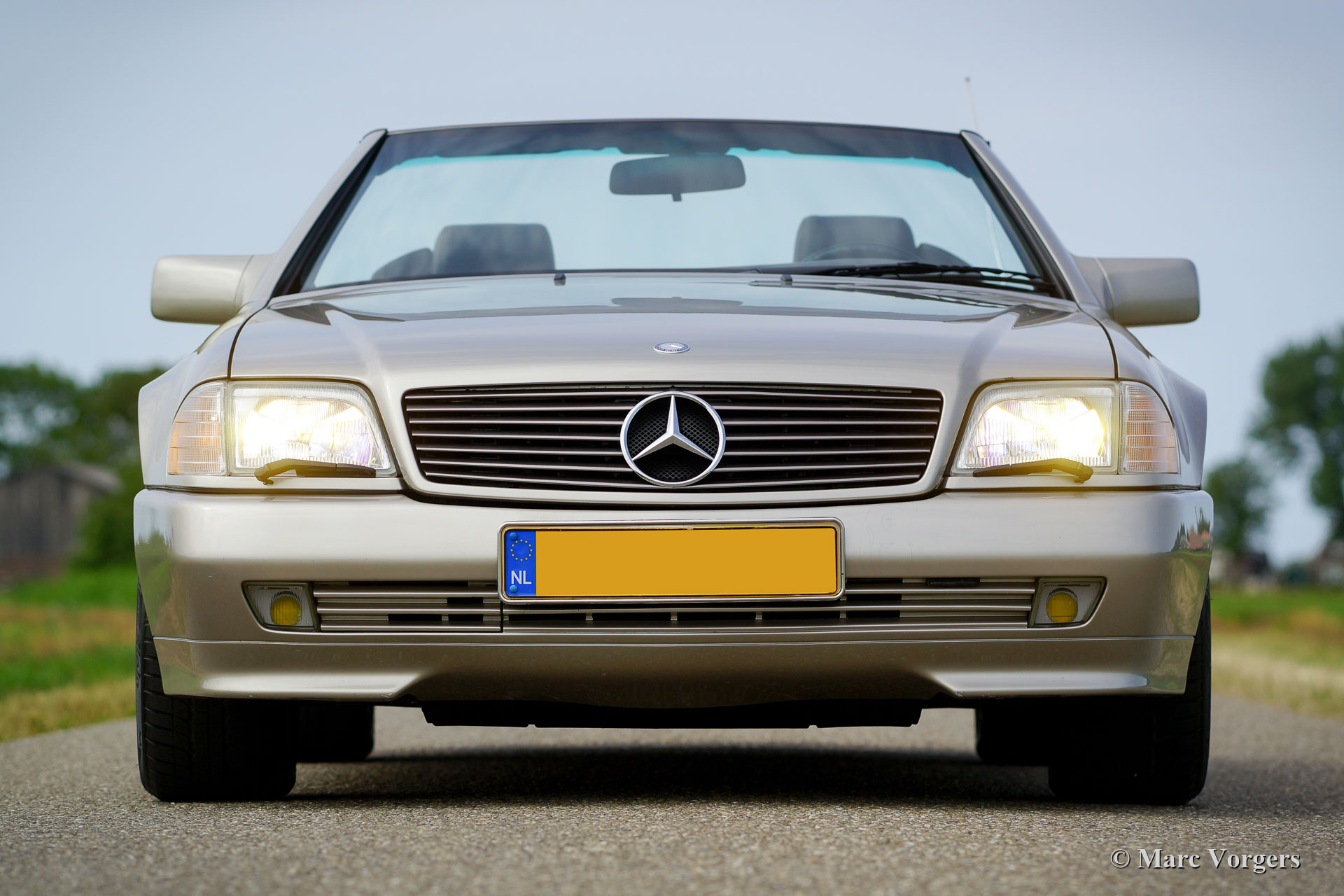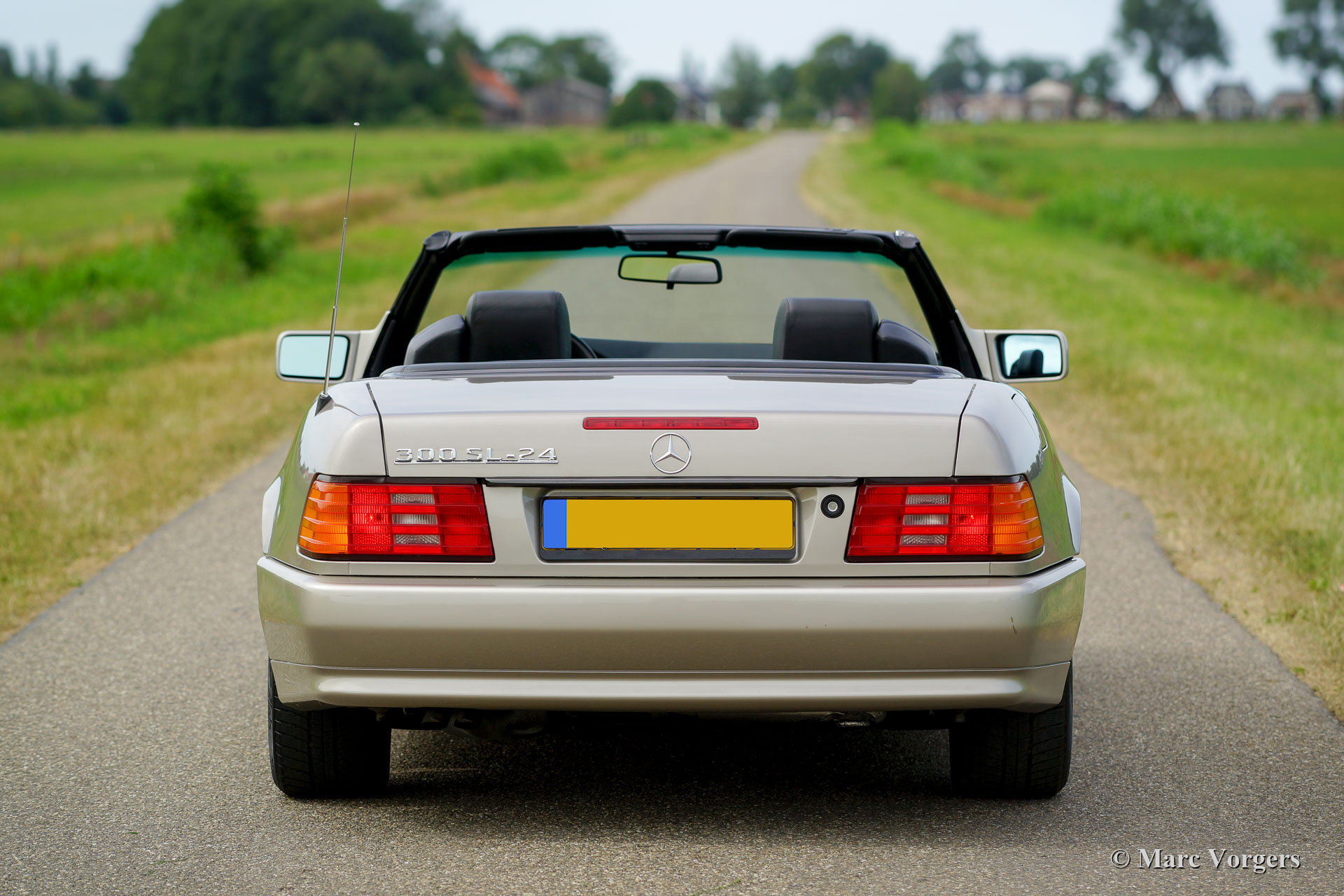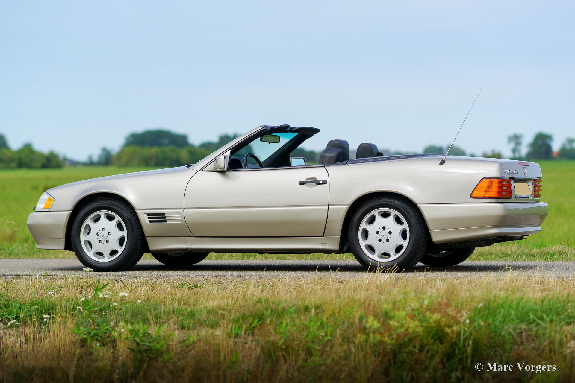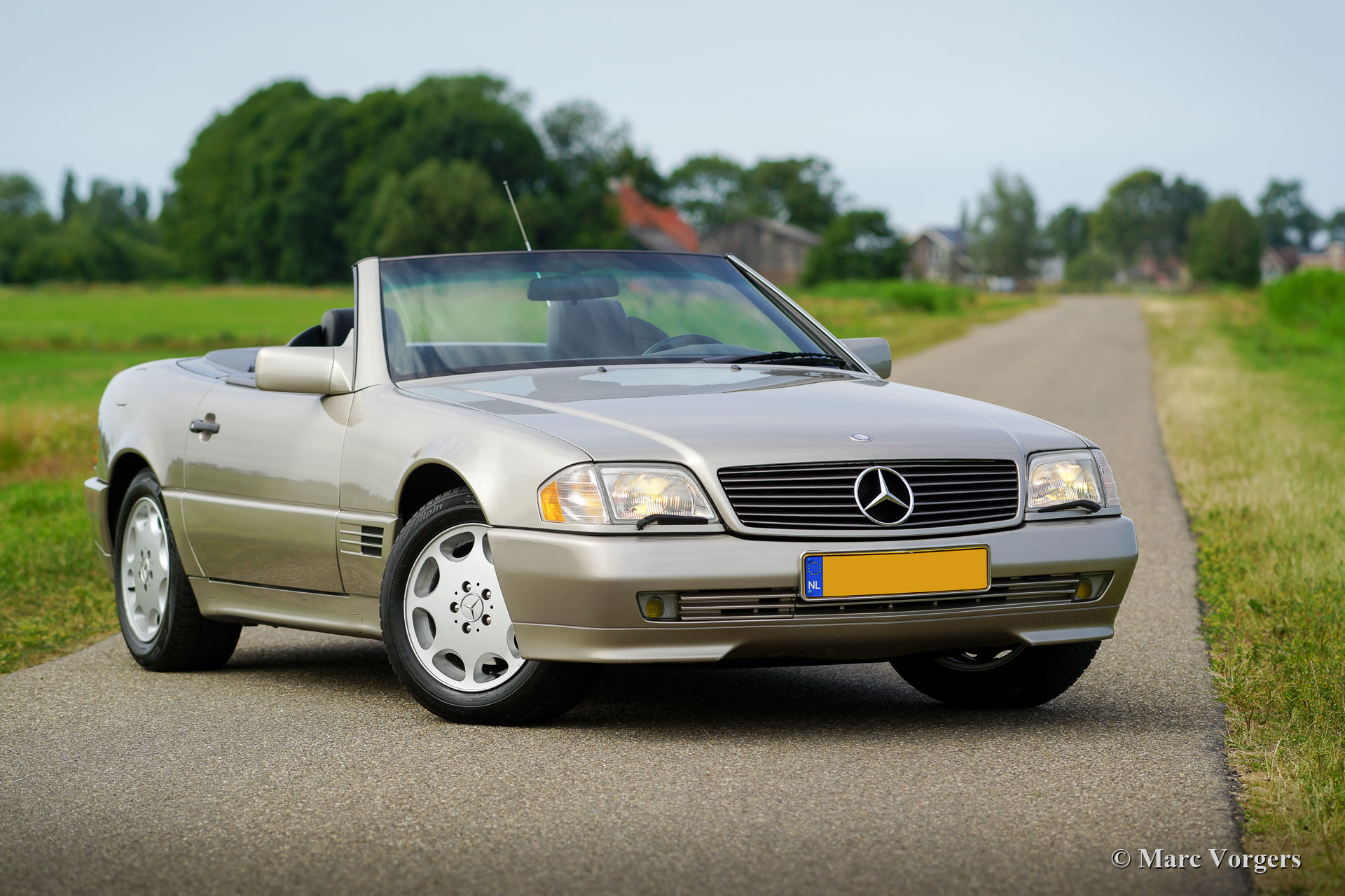 Mercedes-Benz 300 SL-24 (R129), year 1992. Colour Champagne metallic combined with a black leather interior and black carpet. Black mohair soft-top and a hard-top in body colour. This magnificent Mercedes 300 SL was sold new in France and it is in excellent original condition. The car has driven only 52.000 kilometres from new! The exterior, the interior and the soft-top look almost like new, only very slight signs of use can be found. The 24-valve engine runs and pulls superbly! This fine Mercedes-Benz features power windows, central locking, seats with memory function, ABS and Air-conditioning. The car comes complete with the original tool-set.