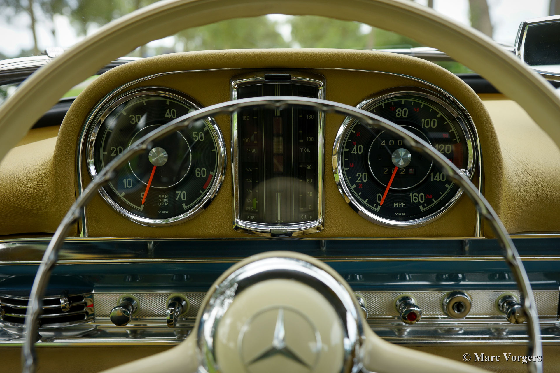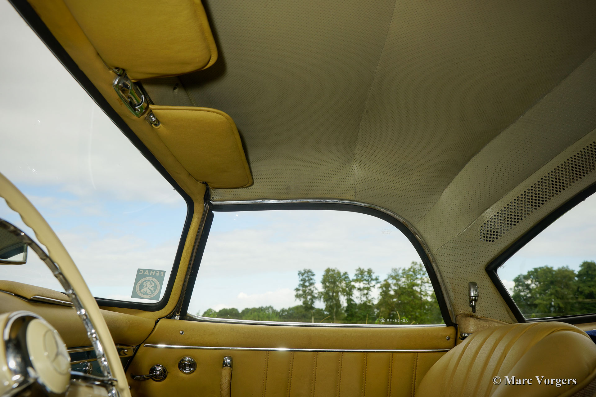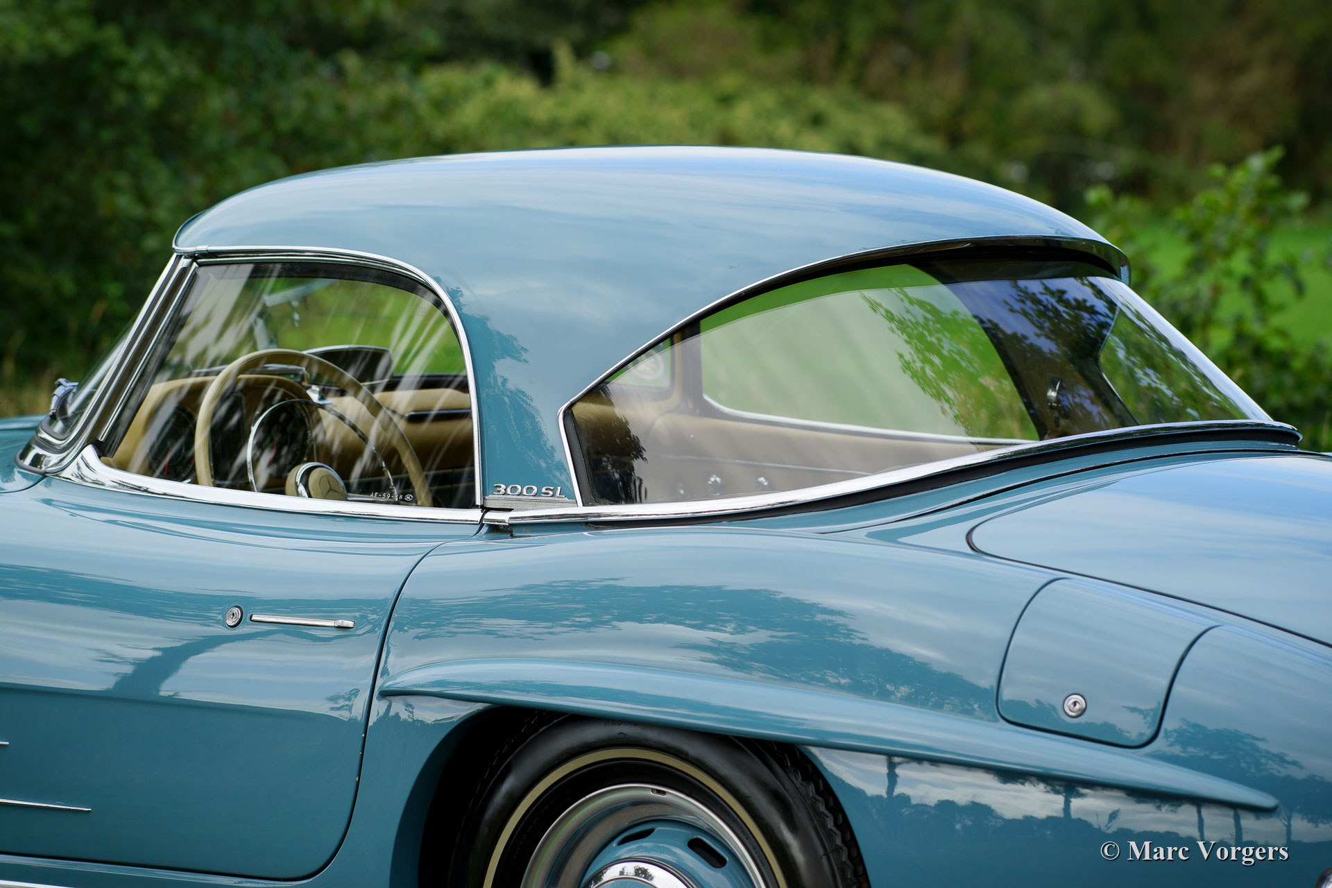 The history of the famous Mercedes-Benz 300 SL (W198) started with the successful Mercedes-Benz 1952 (W194) 300 SL race car and it's successor, the tremendous 1955 (W196S) 300 SLR. The W194 300 SL race car was engineered by a team under supervision of racing engineer Rudolf Uhlenhaut. They based the W194 upon mechanical components of the Mercedes-Benz W186 (300 S) limousine. To compensate the lack of engine power they faced in a field of stronger competitors the W194 300 SL race car was built ultra light. The engineers designed a very light and stiff space frame on which aluminium body panels were fitted. The W194 300 SL proved very competitive, the car achieved many successes on the circuit and during other demanding races. In the year 1952 the car won the 24 Hours endurance race of Le Mans, the Eifelrennen on the Nürburgring and the very harsh Carrera Panamericana. During the first outing in the 1952 Mille Miglia W194 racing cars finished second and fourth. The W194 race car evolved to the W196 race car in 1954. In the year 1955 it was up rated again resulting in the tremendous and world famous 300 SLR (W196S) of which eight cars were built. The 300 SLR became the most famous and most bespoke Mercedes-Benz racing car ever. In the year 1955 driver Stirling Moss and navigator Alan Jenkinson won the Mille Miglia! They drove the 1600 km road race with an incredible average speed of 157.56 kilometer per hour! A record that still stands and will never be broken! All successes of the Mercedes-Benz 300 SL race cars were followed with interest by the American Mercedes-Benz importer Max Hoffmann. Hoffmann convinced the factory board that a 300 SL road car would be a great commercial success on the American market. The factory took this challenge and in the year 1955 the 300 SL (W198) 'Gullwing' saw the light of day. The technical layout was almost identical to the race car. Because of the space frame construction the sills would be too high and wide to fit regular doors to the car. The engineers decided to opt for vertically opening doors, the 'Gullwing' was born. Still it was not easy to step into the cockpit. A swiveling steering wheel was incorporated for easier access to the drivers seat. Not only the 'Gullwing' doors were unique to the 300 SL, also the introduction of petrol injection was new to a road car. In the year 1957 the 'Gullwing' coupe was discontinued and succeeded by the 300 SL roadster. The steel space frame was modified and strengthened and small but functional normal doors could be incorporated. The roadster also was a breath taking beautiful car and a very handsome hard top was optionally available. Between the years 1954 and 1957 'only' 1400 300 SL 'Gullwings' (W198 I) were built and between 1957 and 1963 'only' 1858 300 SL (W198 II) roadsters. We say 'only' but we have to remember that the 300 SL was a very pricy sports car (just above 25.000 DM) in those days. The Mercedes-Benz 300 SL is nowadays the most sought after Mercedes-Benz and it is one of the greatest icons in the history of the automobile.