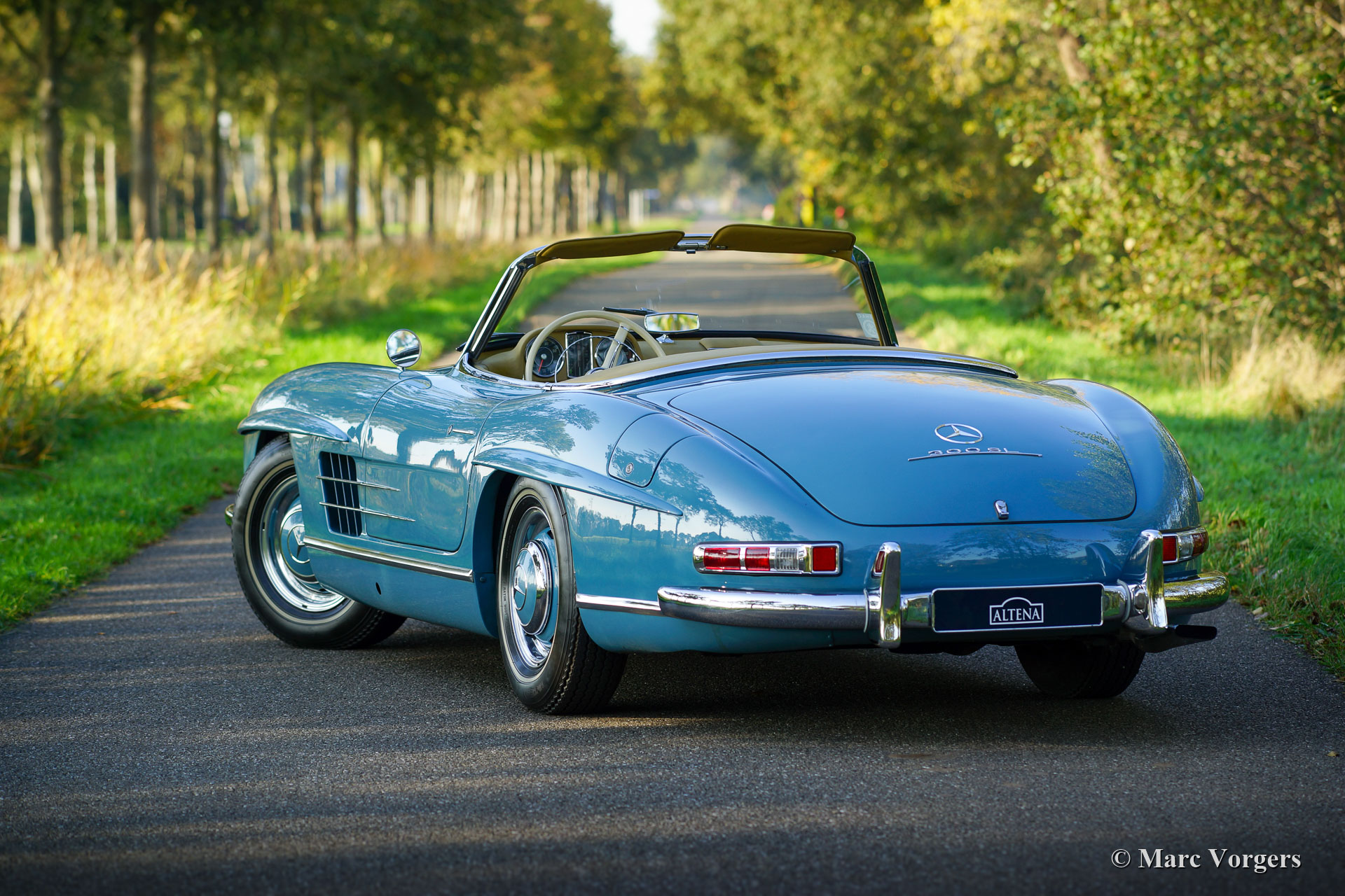 Mercedes-Benz 300 SL, year 1957. Colour Hellblau nr. 334, interior Leder creme nr. 1060, hood beige nr. 979. This gorgeous Mercedes-Benz 300 SL Roadster is a highly desirable, super original, and perfectly serviced time capsule. A 300 SL in this supernb original condition is very rare.
