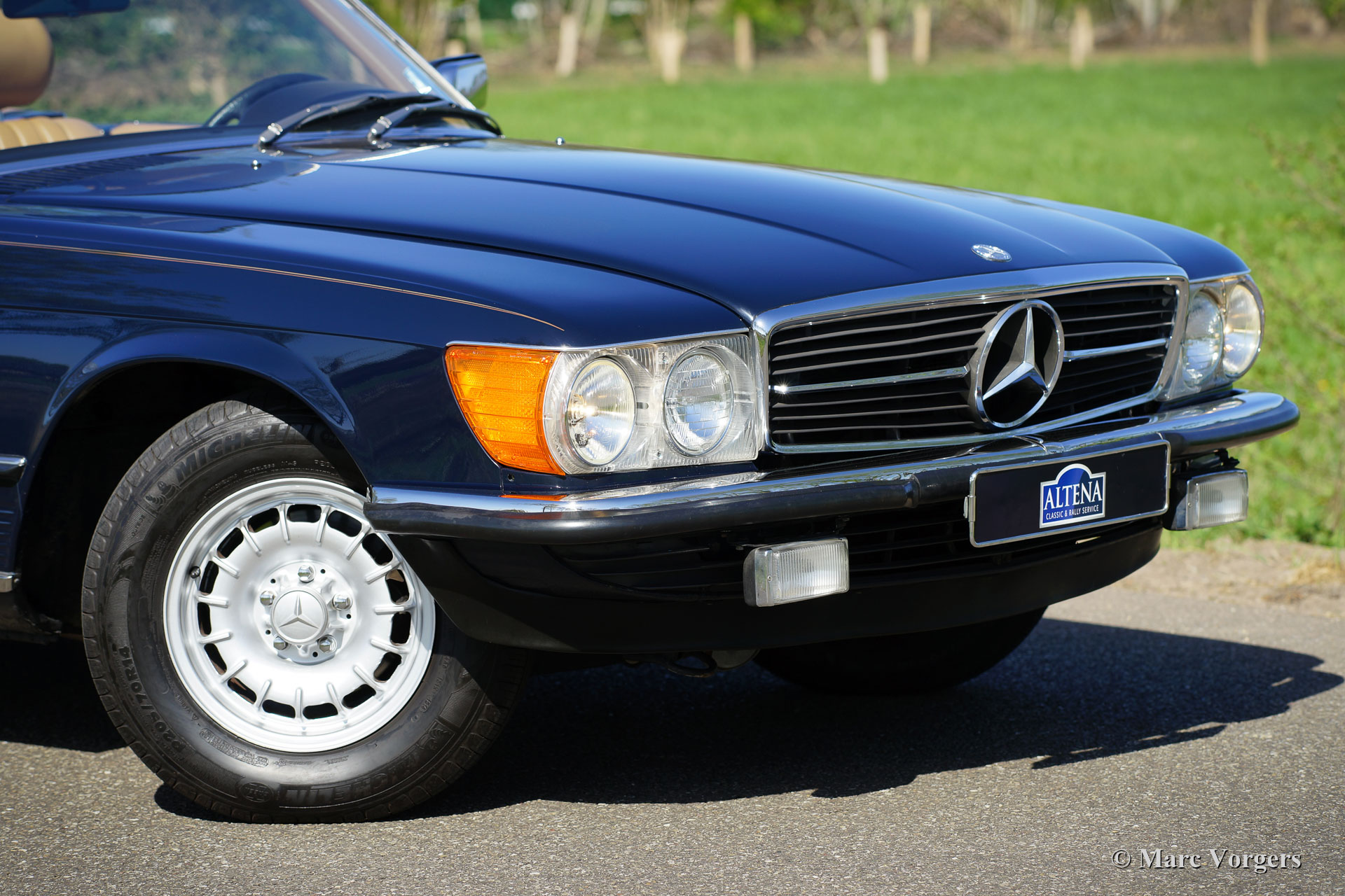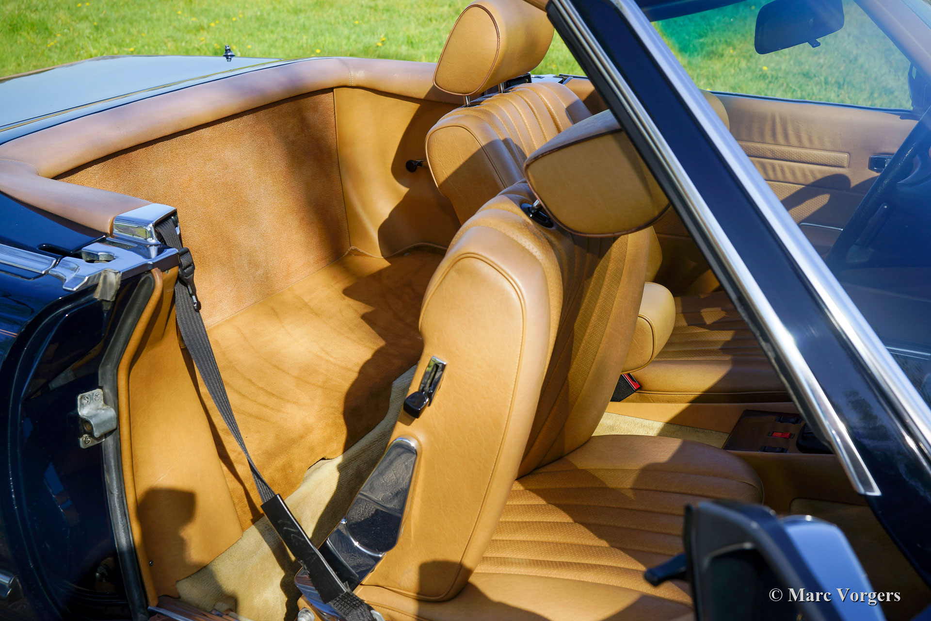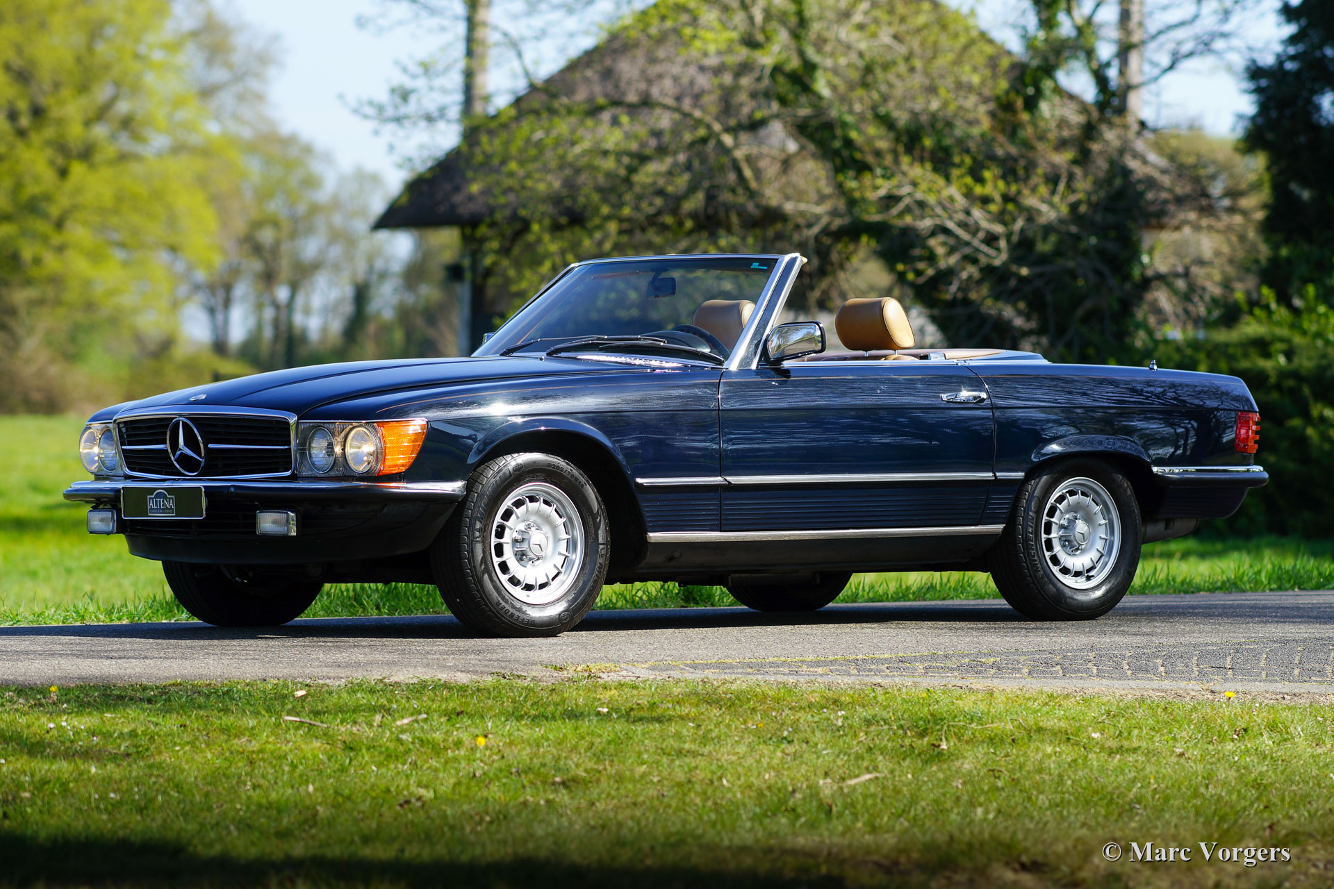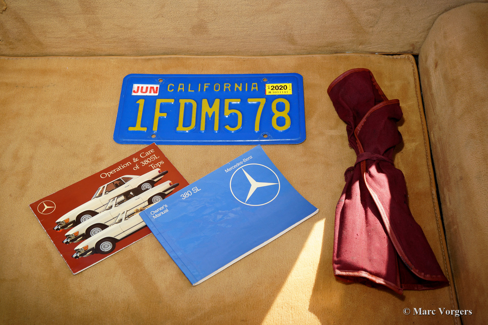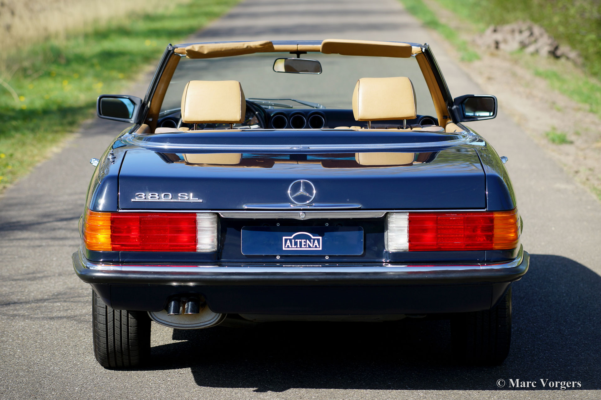 Mercedes-Benz 380 SL (R107), year 1982. Colour dark blue combined with a beige ‘TEX’ leatherette interior and beige carpet. Dark blue mohair hood and a hard top in body colour. This wonderful Mercedes-Benz SL was imported from the USA (California) in the year 2020. The car came with the original blue plates which means that it has lived in California since 1982. The car has known two owners from new, the second owner has cherished the car from 1991! From new the car has driven 126.000 Miles, service history is present, punctual, and complete! This 380 SL is in an excellent and super original condition and the car drives perfectly! The automobile is fitted with European style chrome bumpers, an automatic gearbox, the original MB alloy wheels, original Becker radio with power antenna and hard-top. The original booklets are present as are the original jack, tool-set and spare wheel. Worth mentioning also, is the presence of all the original factory decals. The car now applies to all European regulations, this 380SL can be imported in any EU country. A fantastic car to enjoy delightful summer drives together!