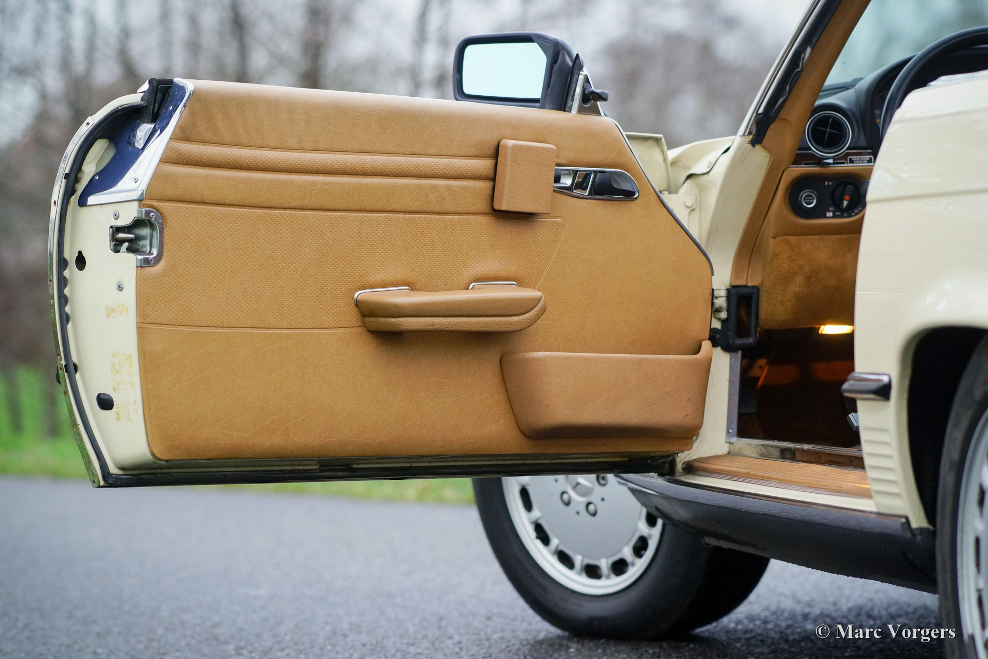 Mercedes-Benz 560 SL (R107), year 1989. Chassis number: WDBBA48D2KA1040XX. Colour Ivory white with a beige leather interior and beige carpet. Original hard-top in body colour and a dark brown soft-top. This wonderful Mercedes-Benz 560 SL was recently imported from sunny California in the USA. The automobile is in an excellent original condition and the car drives perfectly! The car shows all the original US-details and specifications. From new this fine Mercedes SL has driven 144.601 miles; the service history is complete and fully documented (Carfax). This R107 series SL comes from the last series and it features the powerful and very robust 5.6 Litre V8 engine coupled to an automatic gearbox. The car sports the original MB 16-inch light alloy wheels and it comes complete with the original owners’ manual and factory original tool-set. On special request, and at extra cost, we can deliver this fine 560 SL to European specifications. A very fine example!