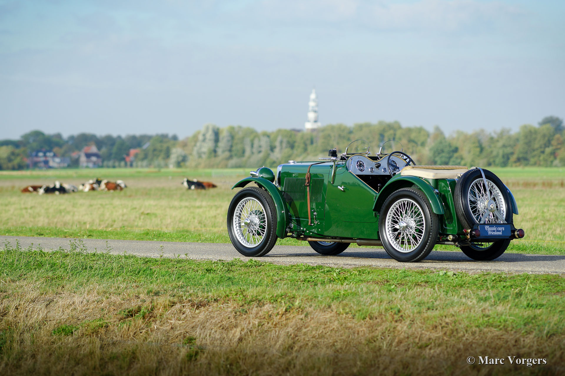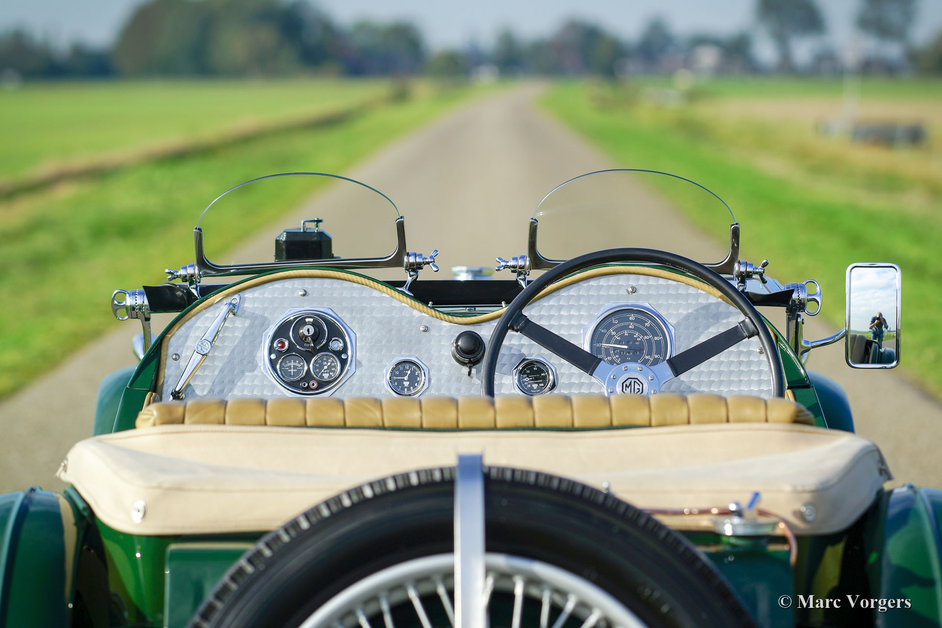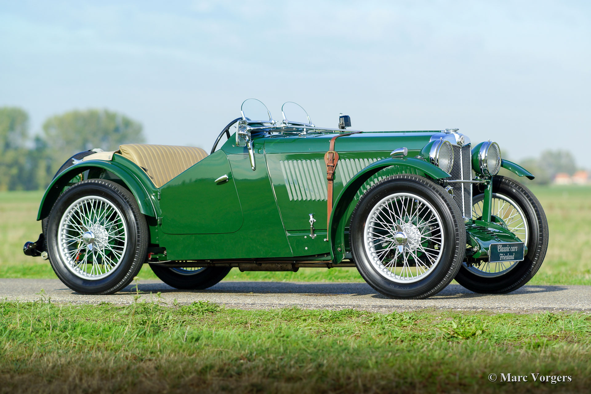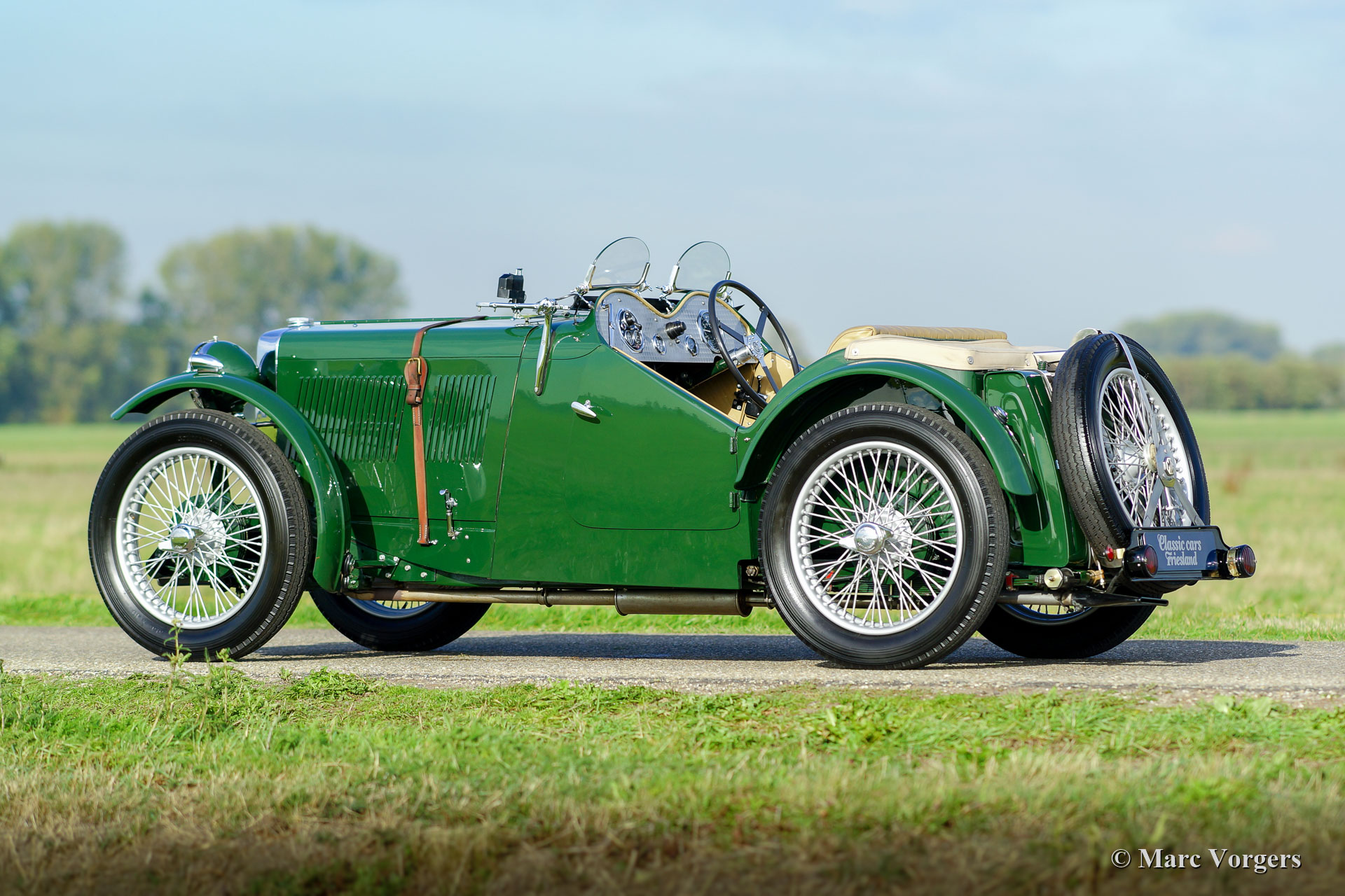 MG J2 ‘Midget’, year 1933. Colour British Racing Green combined with a beige leather interior and green carpet. Beige mohair hood-cover. This gorgeous MG J2 was extensively body-off restored by an MG specialist. This MG J2 ’Midget’ is in top condition; concours! In the process the engine and the gearbox were overhauled, the engine was given a new steel crankshaft. The wiring loom was renewed, brakes overhauled, and all the dashboard gauges were overhauled. The body was given a brand-new ash frame which was hand-made by a specialist. The bodyworks shows a perfect panel fit. A photo report of the restoration is present. This beautiful MG J2 features Brooklands ‘aero’ / racing screens, the original steering-wheel, 19-inch wire wheels, shod with Dunlop tyres, and a steel exhaust which produces a wonderful exhaust-note. A top-quality MG J2 ‘midget’!