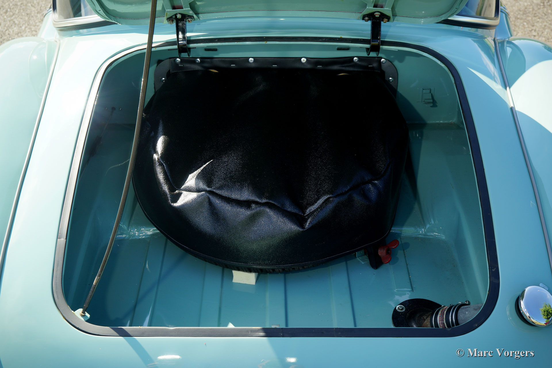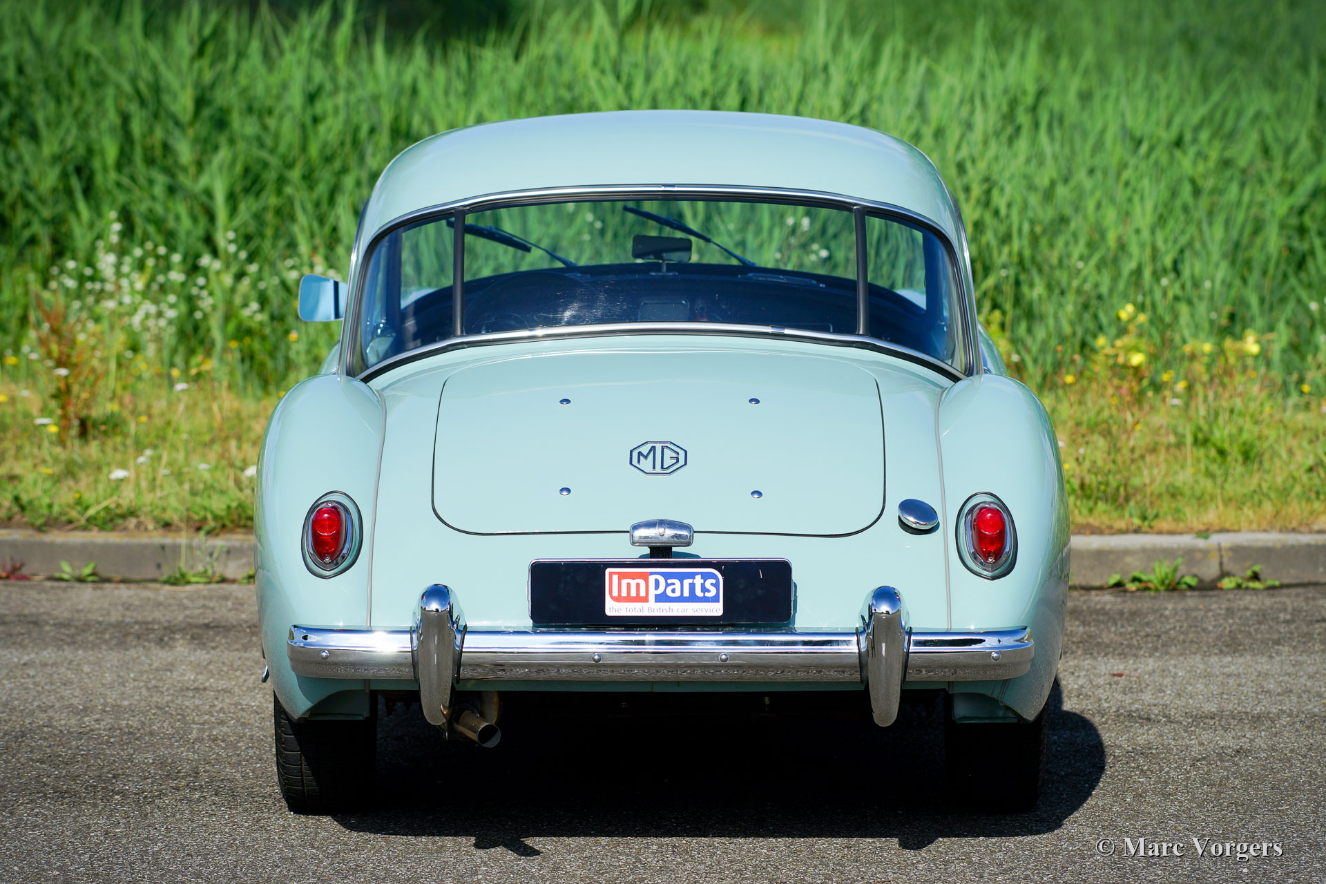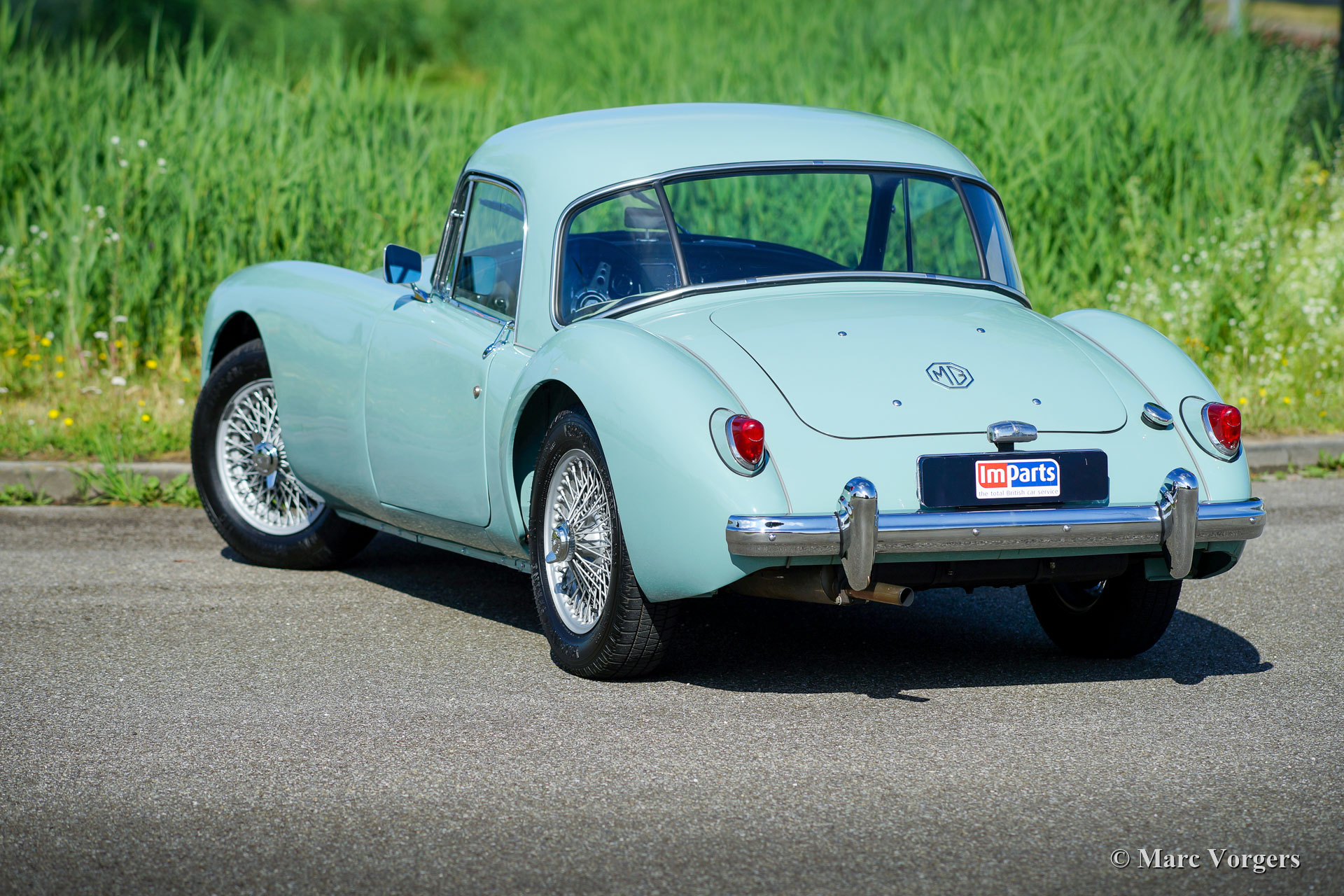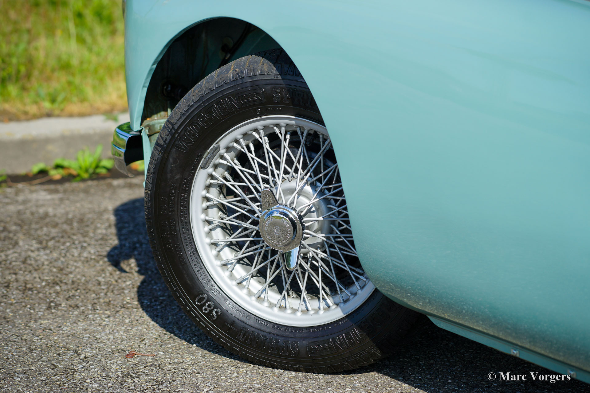 MG MGA 1500 coupe, year 1958. Colour ‘Island Green’ combined with a black leather interior, trimmed with light green piping, and black carpet. This gorgeous MGA 1500 coupe was beautifully restored in the past. The MG is in superb top condition and the car drives delightfully. The MGA coupe is a rare sight compared to the roadster model; only about 5000 coupes were built and over 43.000 roadsters! To ease the entry in the driver’s seat, the car is fitted with a smaller sports steering wheel. This fine MGA roadster shows all the original details and the car sports silver painted wire wheels. This is a very desirable example in superb condition!
