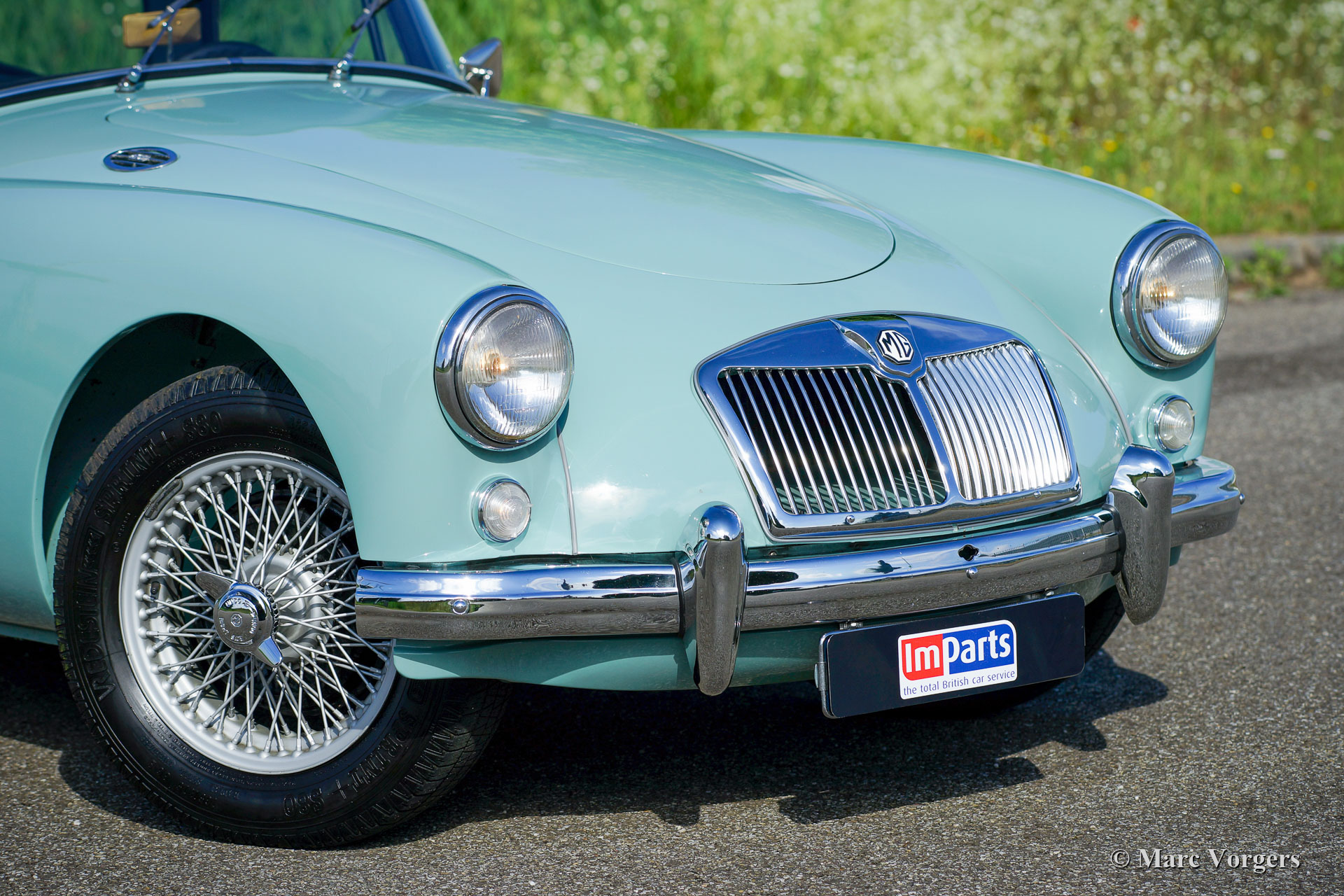 The year 1955 saw the introduction of the MGA. With this design the MG broke new grounds. After its predecessors MG TD and MG TF, which were largely based on the pre-war MG TB, it was a roadster with a very modern sporty design. Like its predecessors, the MGA was a great success and, like before, the greater part was sold in America. Until 1959, the MGA was equipped with a 1459 cc four-cylinder engine. From that year, the car was fitted with a 1588 cc four-cylinder. A 1622 cc four-cylinder engine replaced the 1588 cc. engine in 1961. The early MGA versions had very good drum brakes until 1959, but after that year, the MG A was equipped with disc brakes on the front wheels. The year 1962 saw the production of the MGA, the A 1600 Mk II. The MGB replaced this very popular British sports car, and was to develop the success of the MG A even further.