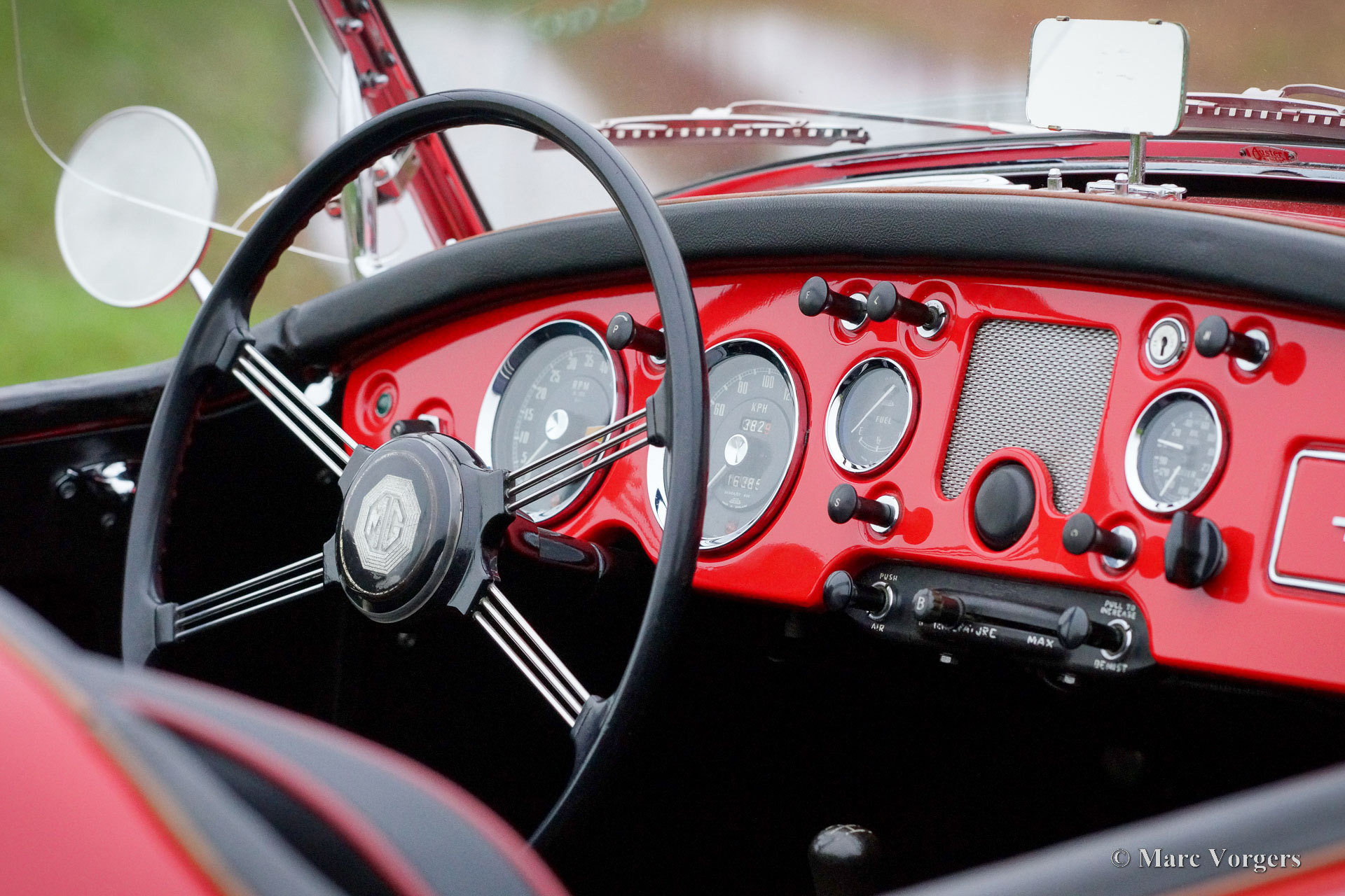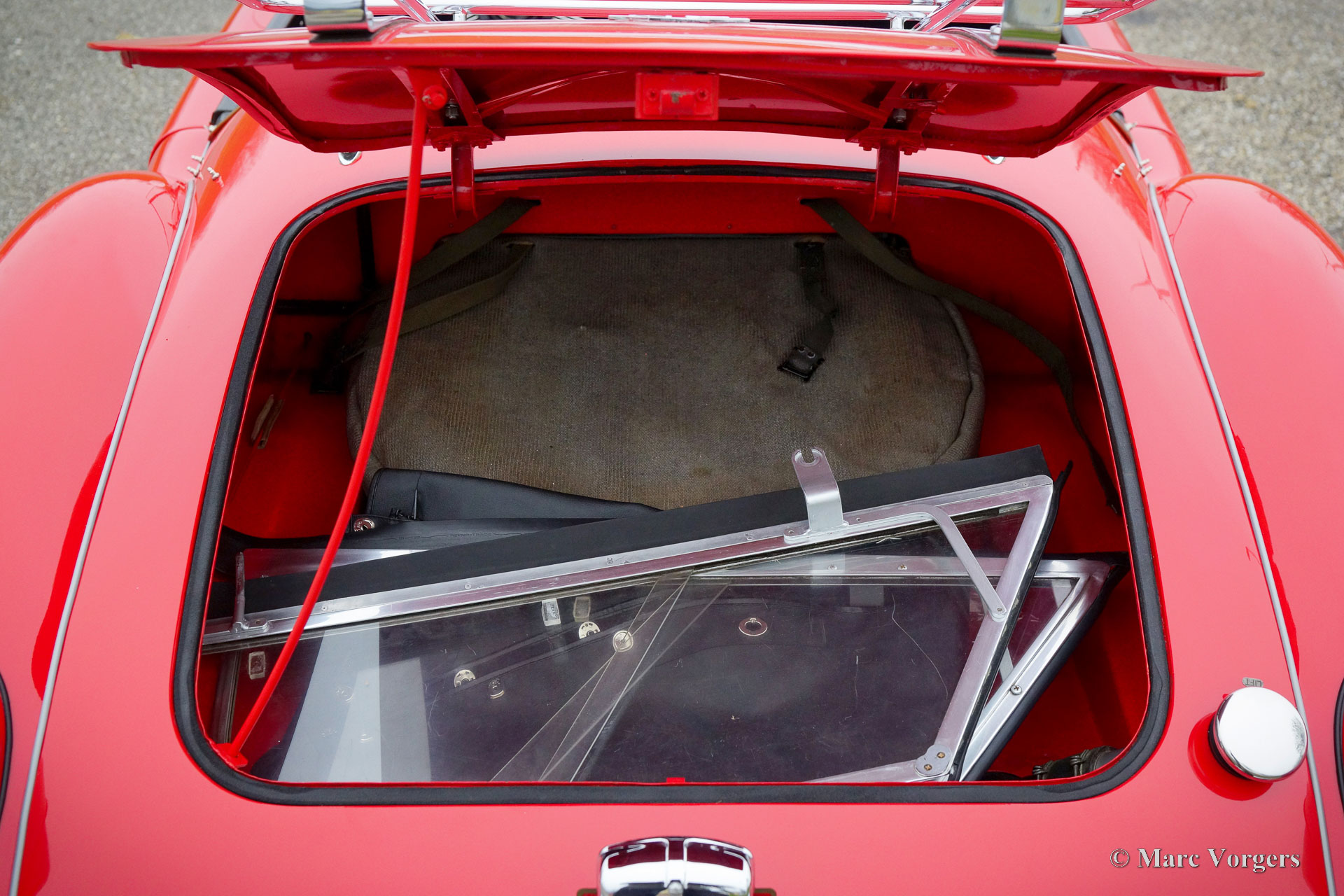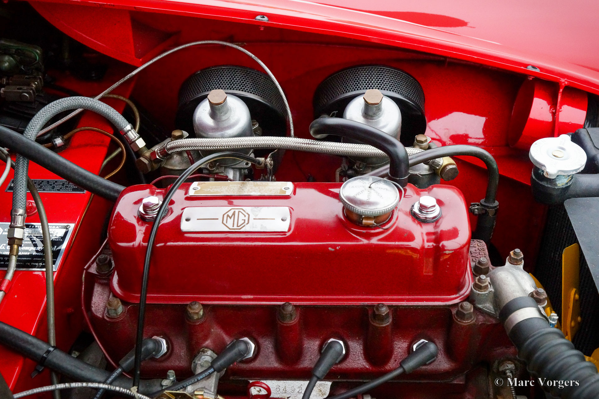 MG MGA 1500 roadster, year 1957. Colour red (Orient red) combined with a black interior trimmed with red piping and black carpet. Black vinyl hood, aluminium side screens and a black tonneau cover. This wonderful MGA 1500 roadster was sold new in the Netherlands, the car still carries its old Dutch registration number. The last owner has cherished this beautiful roadster since 1987! Costs nor effort were spared to keep the car in superb condition! The car was extensively restored and punctually serviced. A photo report of the restoration is present. The history is known and documented. This wonderful MGA roadster shows all the original details, and the car is in a superb top condition! You will be hard pressed to find a more beautiful and better driving example. Here ever you look, it is obvious that this MGA was maintained with love and care. This Fine MGA features the original disc wheels with chrome hub caps, the original steering wheel and a chrome baggage rack. This MGA is a true gem for the MG enthusiast!