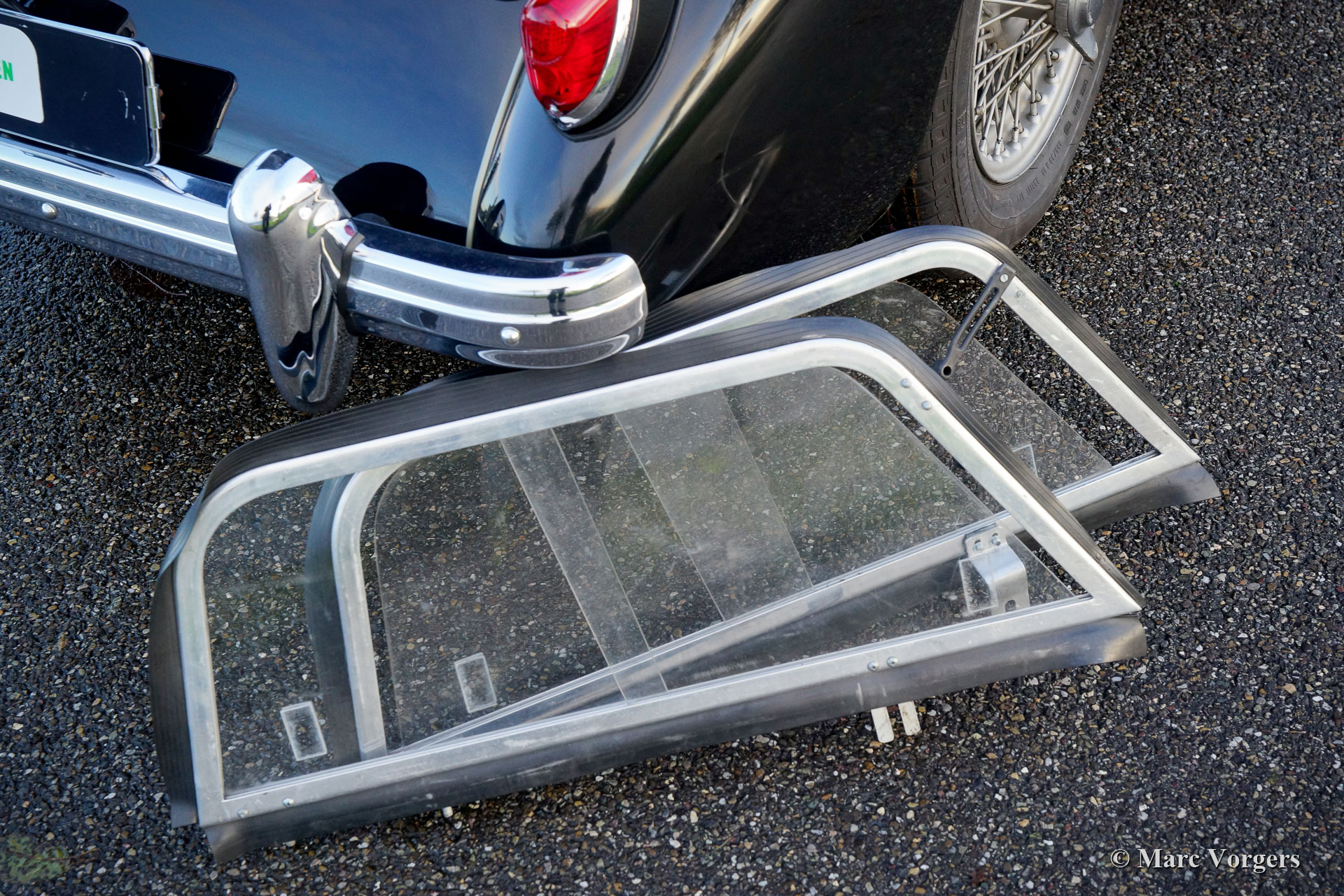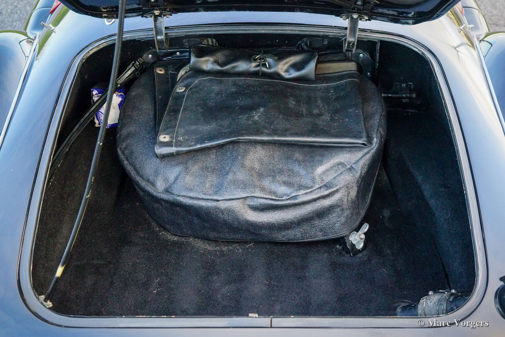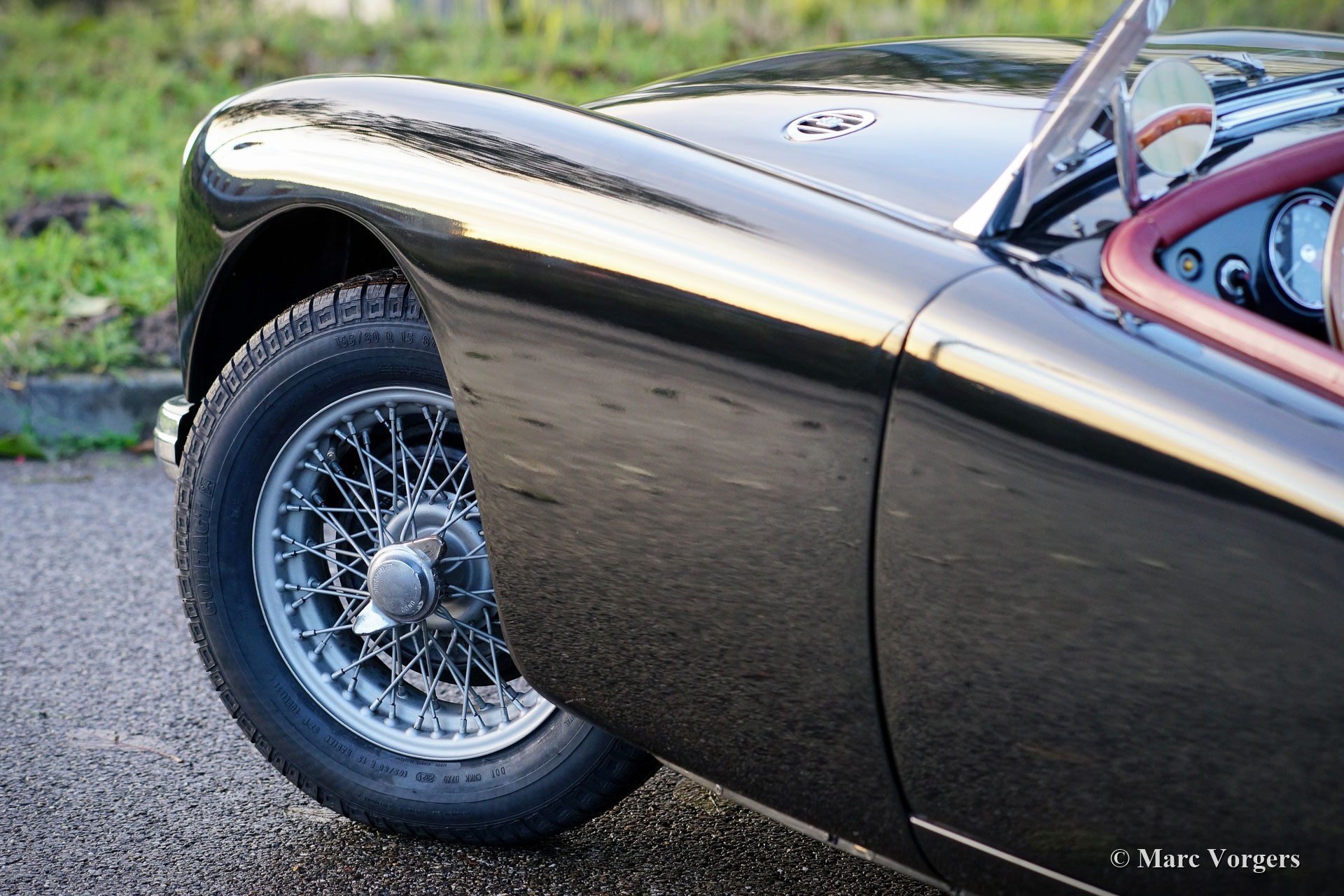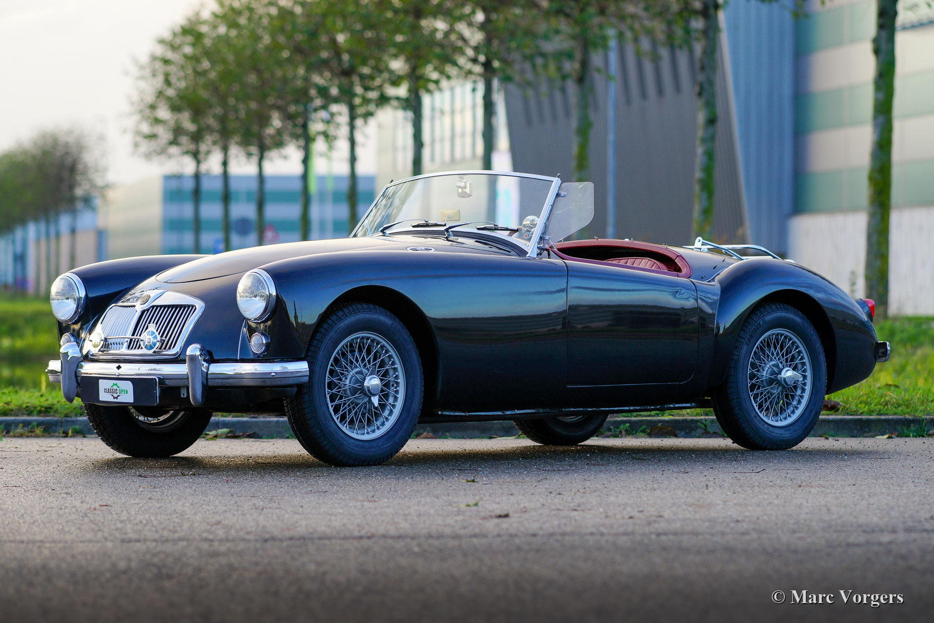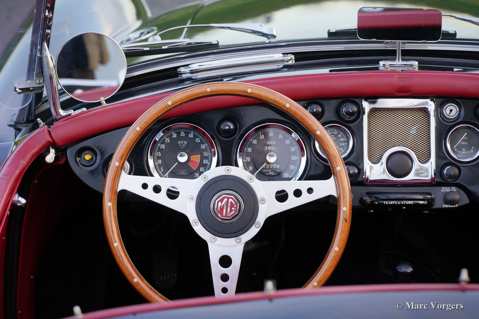 MG MGA 1500 Roadster, year 1959. Colour black combined with a red leather interior and black carpet. Red vinyl soft top, black vinyl tonneau cover and side screens with aluminium frames. This gorgeous MGA 1500 roadster was restored in the past, the car is in a very good condition and the car drives delightfully. This very handsome MGA roadster was very well serviced and maintained over the years, the car shows light to normal signs of previous use. The black / red colour combination is possibly the most beautiful colour scheme for the MGA roadster, sporty and stylish! This wonderful MGA 1500 roadster is fitted with silver painted wire wheels, a MotoLita sports steering wheel with wood rim, a badge bar with 1960s Dutch ANWB and WW (Wegenwacht – like the British AA) badges and a chrome baggage rack. This MGA 1500 roadster is a desirable driver car which will bring much fun and joy to the MG enthusiast!